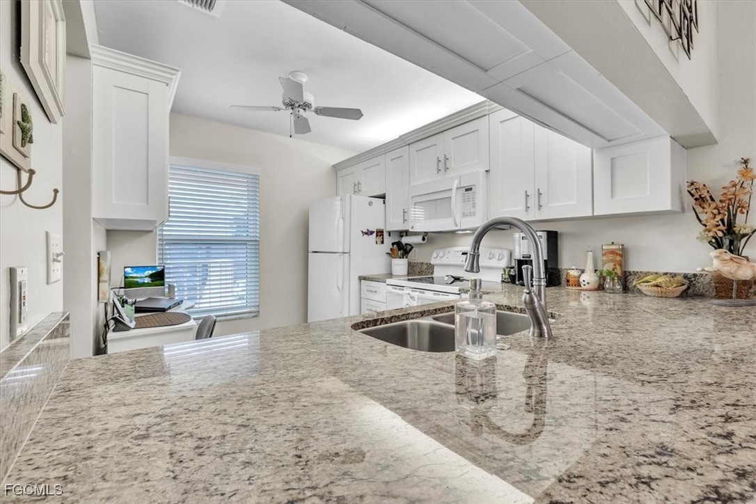 SPECTACULAR WATER VIEW in Arbor Lakes at Foxmoor! Welcome to your dream retreat at Arbor Lakes in Foxmoor! This gorgeous, turnkey, MOVE IN READY, 2 bedroom, 2 bath, remodeled condo offers one of the most enviable water views in the community, situated on the largest lake in the community! Enjoy serene lake and fountain views, lush landscaped surroundings, and preserve vistas on the spacious screened lanai with convenient drop-down shades — ideal for enjoying breezy Florida mornings, evening sunsets, perfect for relaxing, entertaining or quiet wildlife watching! The spacious master suite includes a generous walk-in closet offering plenty of storage and space to feel truly at home with sliders to take in the beautiful water views and breeze! Gorgeous master bath has been beautifully remodeled with modern finishes and a spa-like feel that delivers comfort and style. The unit shows like a model, tastefully furnished with vaulted ceilings, updated kitchen, new AC, hot water heater, several new impact windows & newer washer/dryer. Resort-style living with access to a community dock with gulf-access boating available to rent, tennis, pickleball & bocce courts, pool, clubhouse, and more — ideal for beach trips, boating, or casual recreation. Perfectly positioned near shopping, dining, entertainment, the vibrant Downtown River District, Twins Spring Training and Red Sox Stadium, world class beaches and RSW & Punta Gorda airports for effortless travel. Whether you’re seeking a peaceful full-time residence, a seasonal getaway, or a strong investment property, this condo combines lakefront water views, community amenities, and lifestyle flexibility in a way that’s hard to beat!
