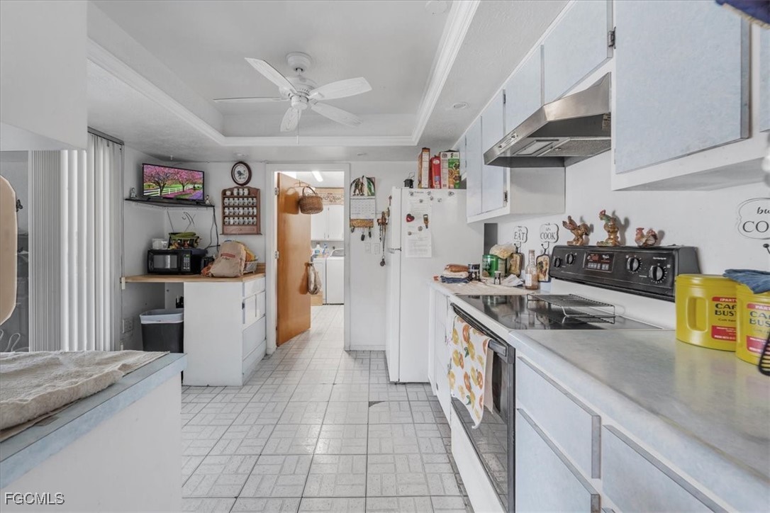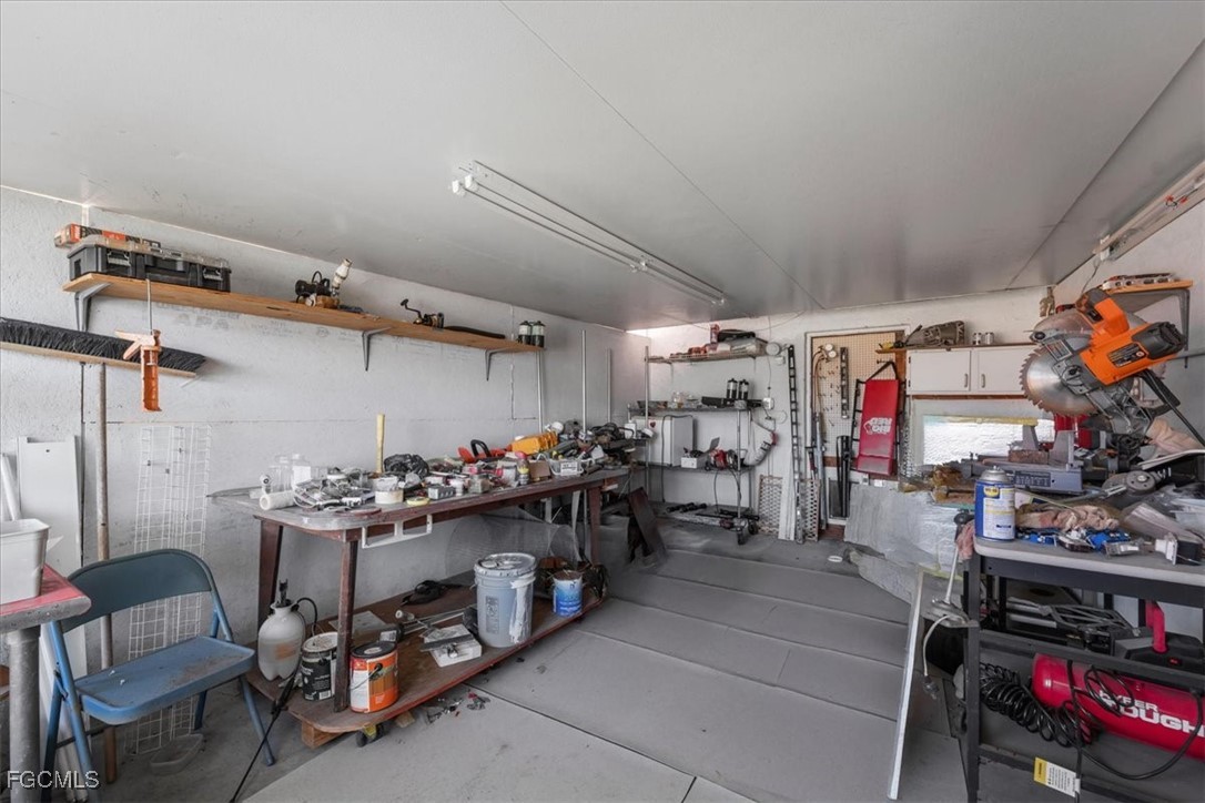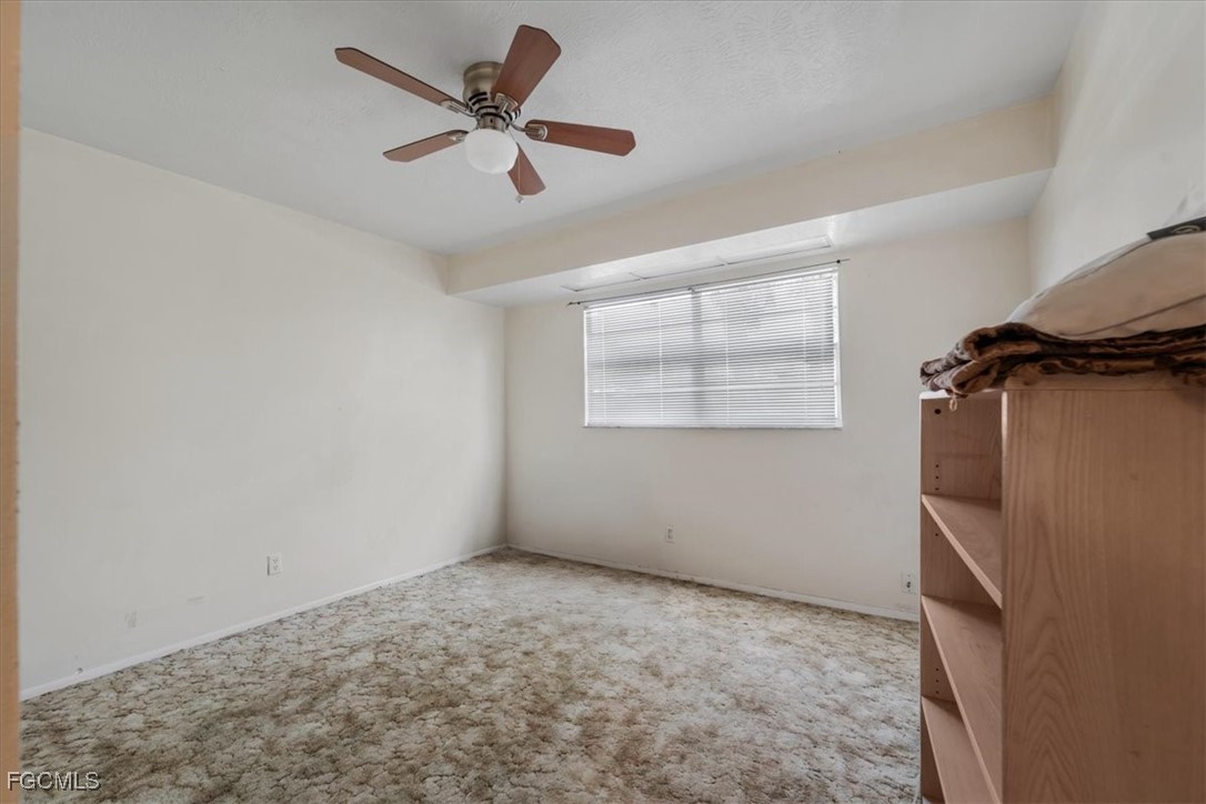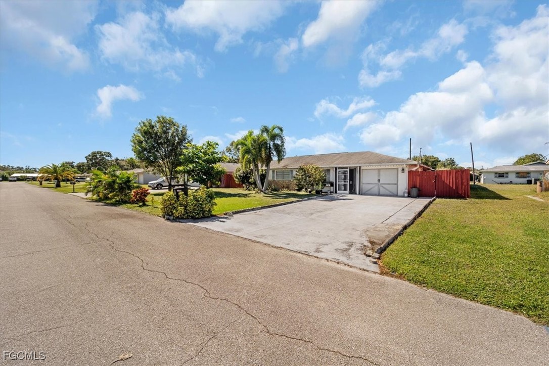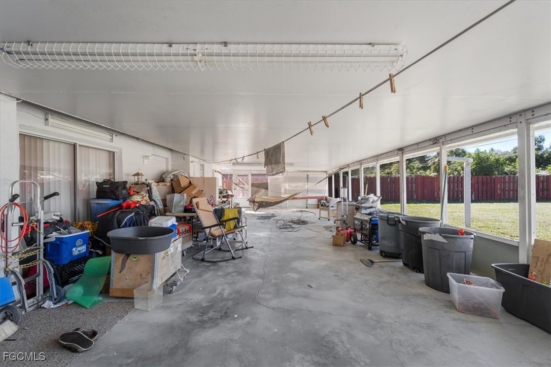 Located on a spacious lot in a quiet Fort Myers area, this 4-bedroom, 2-bathroom home provides practical space for everyday living, with convenient access to I-75 for commuting and nearby shopping and dining along Route 80. The interior includes additional flexible areas: an office space connected to the front living room and a workshop accessible from the rear. A large screened lanai extends from the back, covered by an aluminum roof and offering outdoor enclosure space comparable to the home's interior footprint. The oversized, fully fenced backyard has room for potential additions like a pool, despite the presence of two outbuildings for storage or utility. The attached garage has been converted by a prior owner but could be reverted with relative ease. Offered AS IS for buyers ready to invest in updates, this property presents a solid canvas in a desirable location.