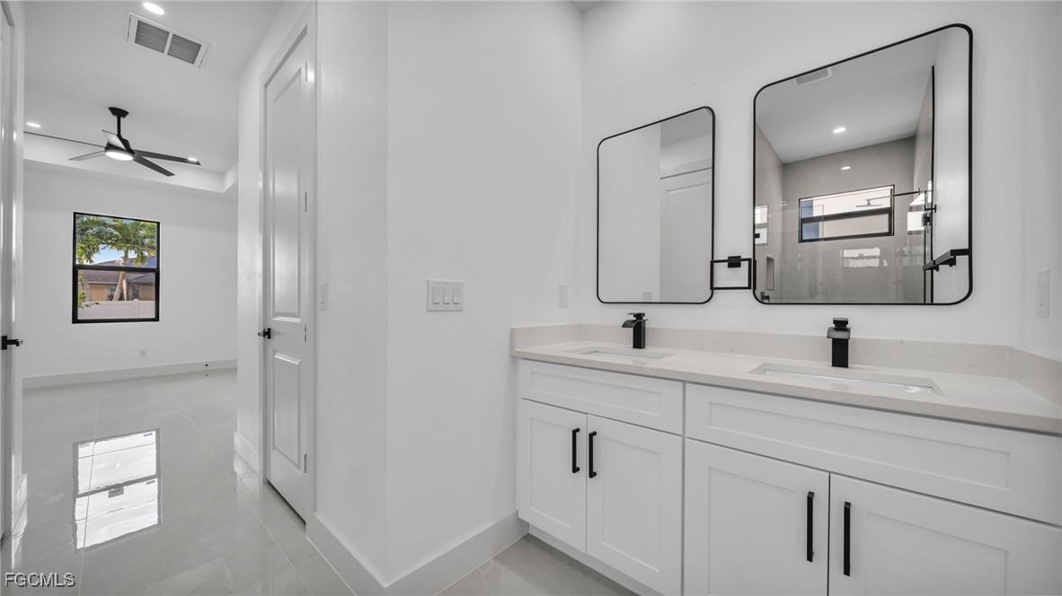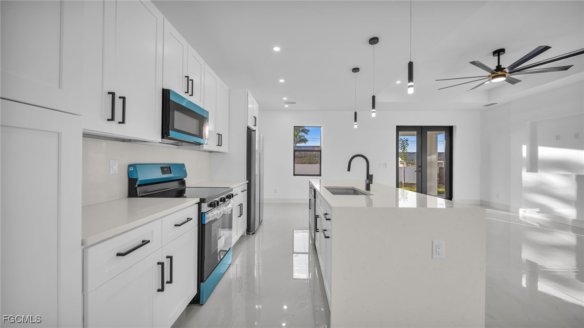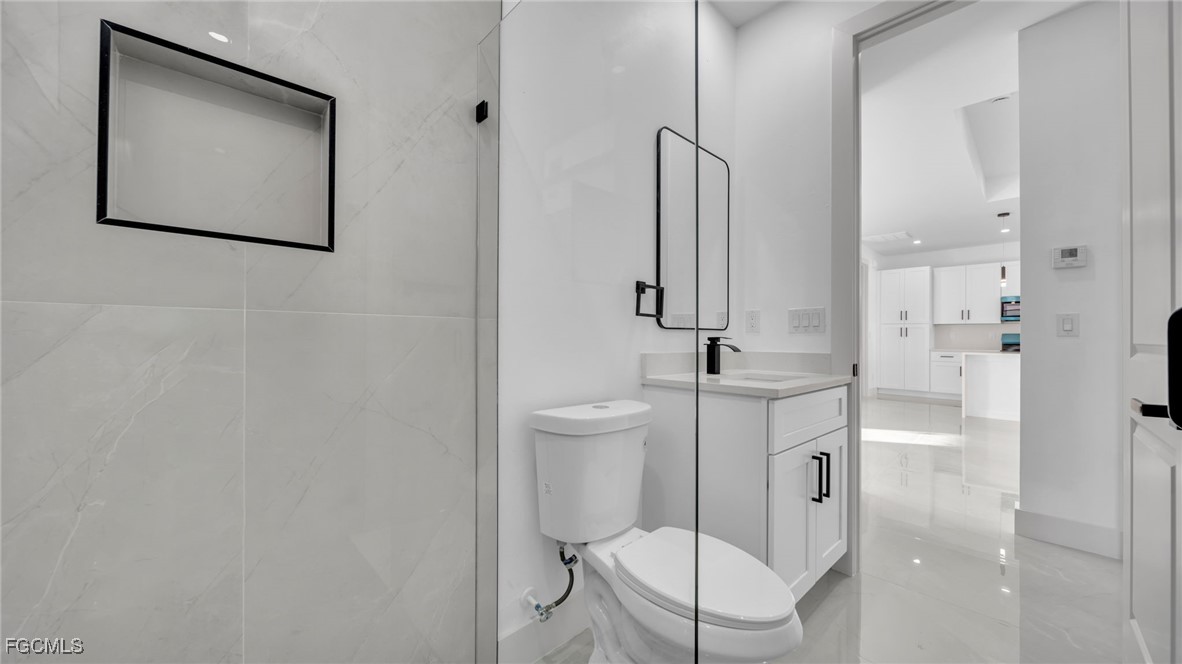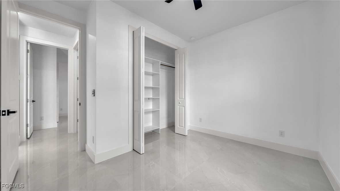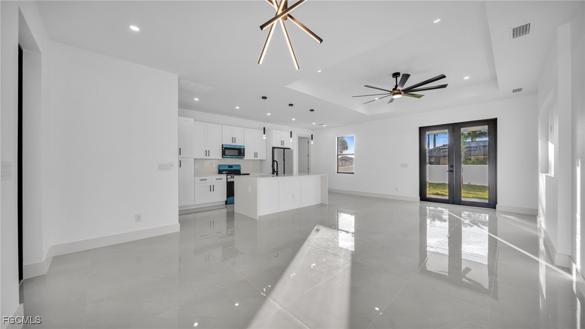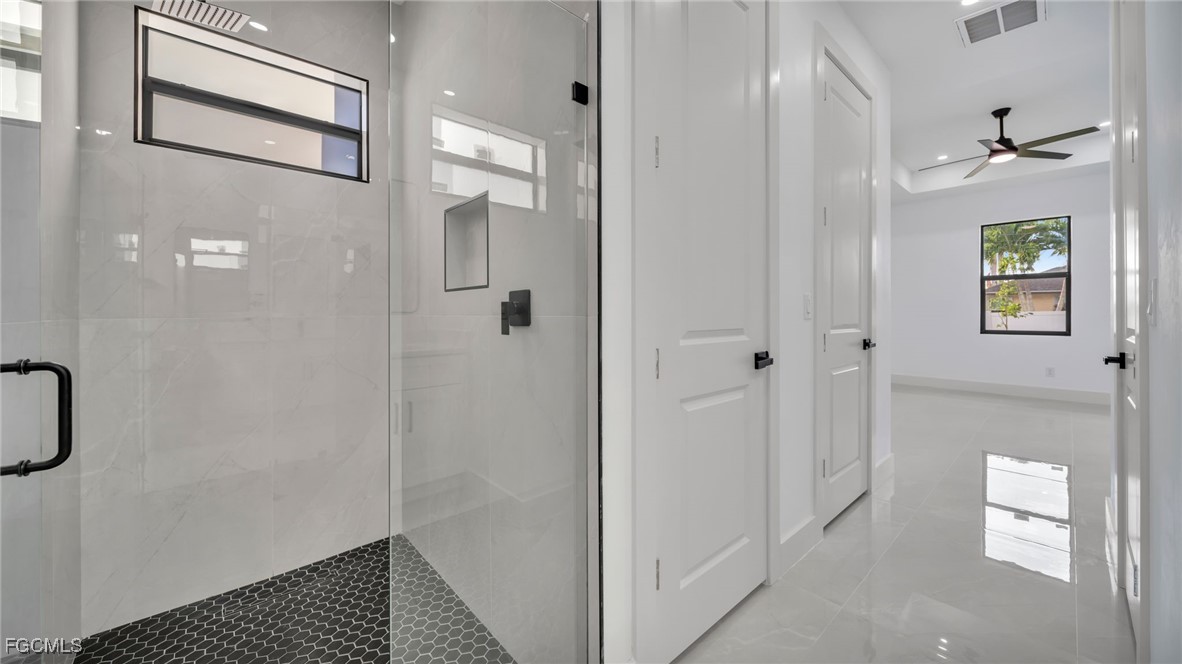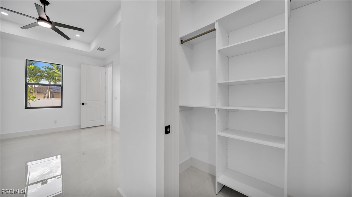 Welcome to this beautifully crafted New Construction Single-Family home located in the desirable Northeast area of Cape Coral. With 3 spacious bedrooms, 2 modern bathrooms, and a thoughtfully designed open floor plan, this home offers both style and functionality across 1,431 SqFt of living area. Step in through a front door into a bright and airy interior featuring tray ceilings, impact-resistant windows and doors, and premium finishes throughout. The kitchen features white wood modern cabinets, stainless steel appliances, and sleek quartz countertops-also featured in both bathrooms for a cohesive, upscale look. Enjoy the walk-in closets complete with custom wood dividers, and unwind in the master bathroom featuring a double sink vanity, a beautifully tiled glass-door shower, and plenty of natural light. Outdoor living is easy with an open lanai, perfect for relaxing or entertaining. The Property boasts a large backyard with plenty of space to add a pool, creating your very own outdoor oasis. Quiet and peaceful Neighborhood. Quick access to US-41 and nearby bridges. You're also just minutes away from shopping centers, restaurants and essential amenities. Whether you're looking to relax at home or explore the area, this property offers the ideal combination of privacy, spaces, and location. Don't miss your chance to own this elegant home in one of Cape Coral's growing neighborhoods!