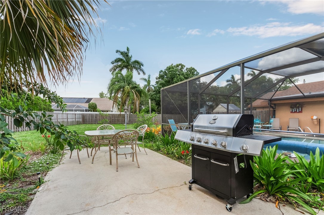 Discover your own slice of paradise in this beautifully customized 5-bedroom, 3-bath pool home on an oversized 0.72-acre corner lot. Designed with versatility in mind, this unique property offers the convenience of two homes in one, featuring a private entrance leading to a fully equipped in-law suite ideal for multi-generational living, guests, or investment opportunities such as VRBO or AirBNB. The in-law quarters include a spacious open layout with its own kitchen, living area, bedroom, bath, and laundry—providing complete privacy and comfort. Inside the main home, you’ll find numerous upgrades throughout, including hurricane impact doors and raised windows, crown molding, elegant tile flooring, and a gourmet kitchen with granite countertops and upgraded slider drawers. Thoughtfully designed storage with built-in shelving adds even more convenience. With two full kitchens, this home is exceptionally flexible for large households, entertaining, or rental potential. Step outside to your private outdoor oasis featuring a sparkling pool, expansive screened lanai, mounted TV, and outdoor cabinetry with granite counters. The fully fenced backyard offers exceptional space and privacy, while a double-gated secondary entrance off Ione Road provides easy access for RVs, boats, or additional parking. With no HOA or deed restrictions, you have full freedom to enjoy the property your way. The home is also offered partially furnished, including new couches, beds, dressers, dining set, lanai and pool furniture, and more—making it truly move-in ready. Don’t miss this rare opportunity to own a flexible, upgraded, and beautifully maintained Florida home. Schedule your private showing today!