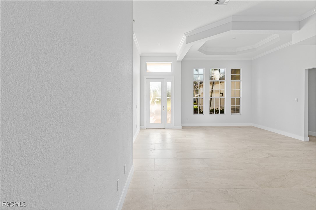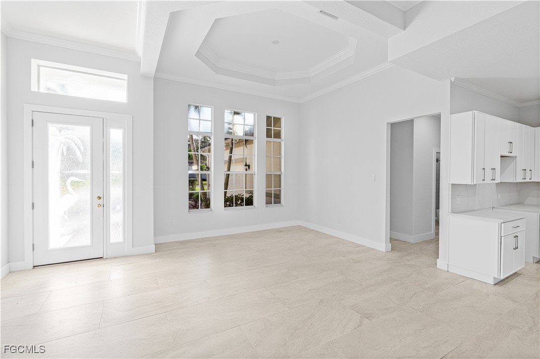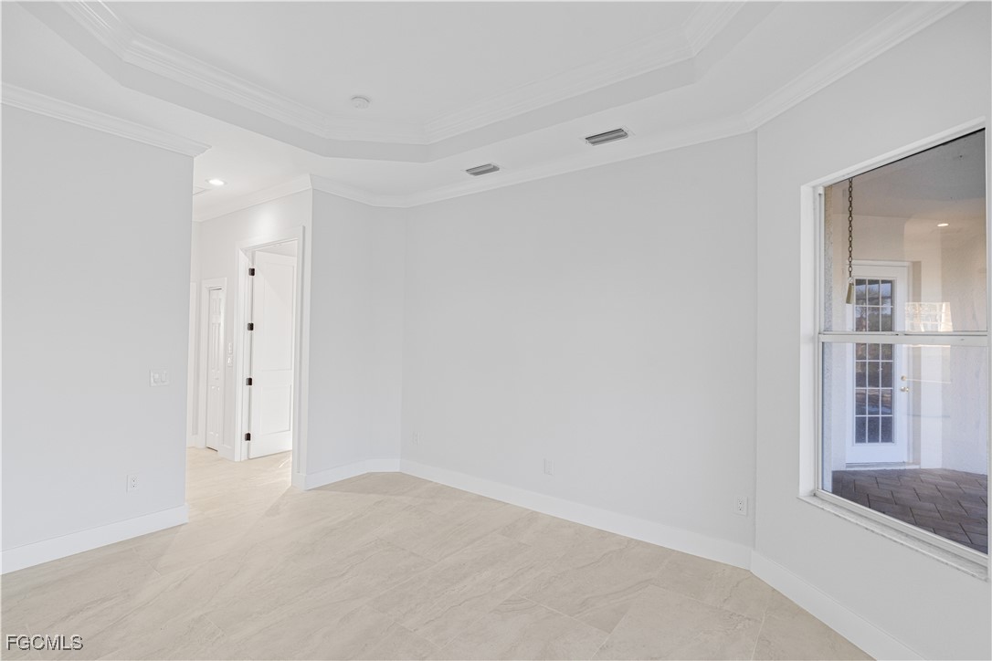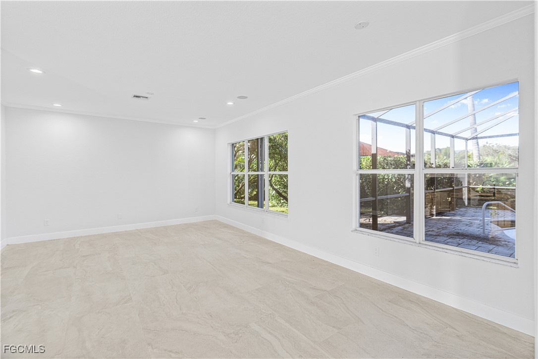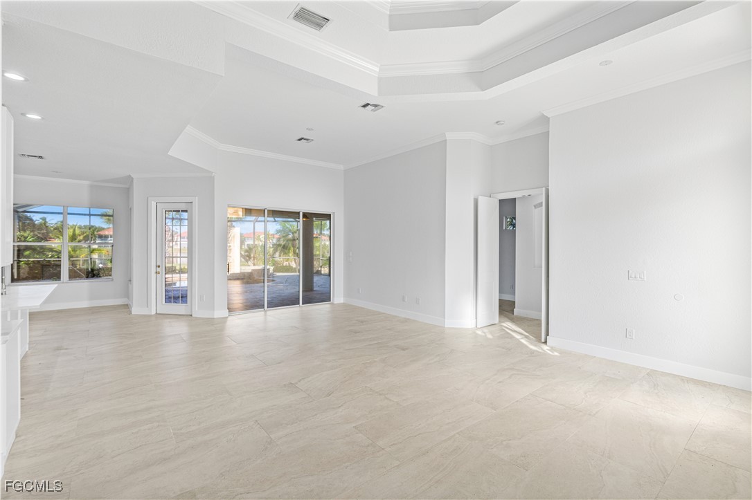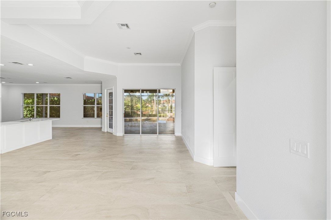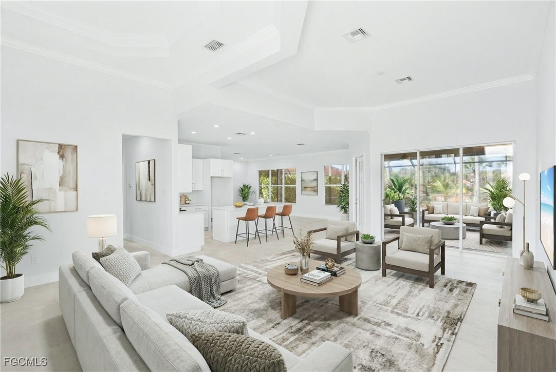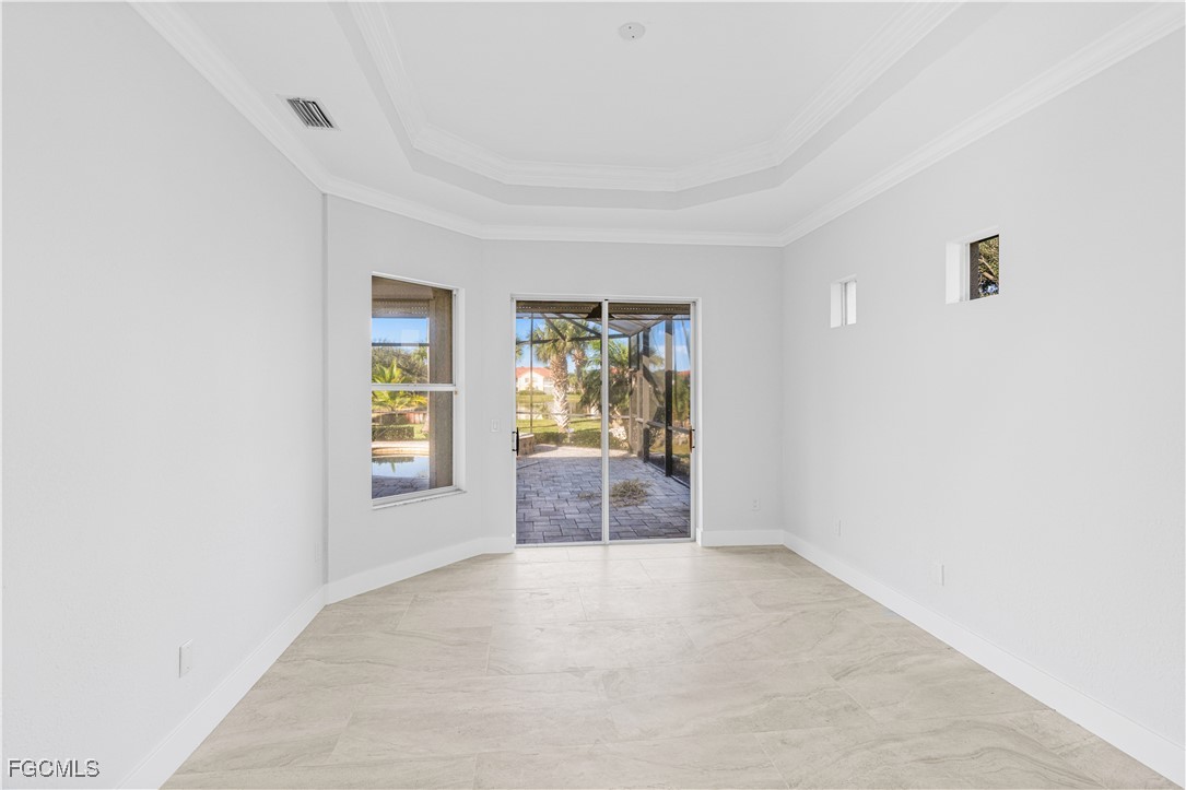Experience refined coastal living in this elegant lakefront residence nestled within the exclusive gated community of Coco Bay. This impeccably maintained 3 bedroom + den, 2 bath home offers 2,149 sq. ft. of sophisticated single level living, designed to blend comfort, style, and tranquility. Beyond the stately entryway, you’ll find a light filled interior with timeless tile flooring, soaring ceilings, and thoughtfully designed living and dining spaces perfect for both intimate gatherings and grand entertaining. The gourmet kitchen features a center island, abundant cabinetry, and serene views that elevate every culinary moment. The luxurious primary suite is a private retreat, complete with a spa inspired bathroom offering dual vanities, a soaking tub, walk in shower, and an oversized closet. Two additional guest rooms and a separate den provide the ideal balance of functionality and privacy. Step outside to your own tropical oasis an expansive screened lanai showcasing a shimmering pool overlooking a tranquil lake. Whether enjoying quiet mornings or sunset evenings, this outdoor sanctuary captures the essence of Florida luxury living. Residents of Coco Bay enjoy access to premier amenities including a resort style pool, spa, fitness center, and clubhouse all minutes from world-class beaches, shopping, dining, and the best of Fort Myers. A rare opportunity to own an elegant, move in ready home in one of the area’s most desirable communities.