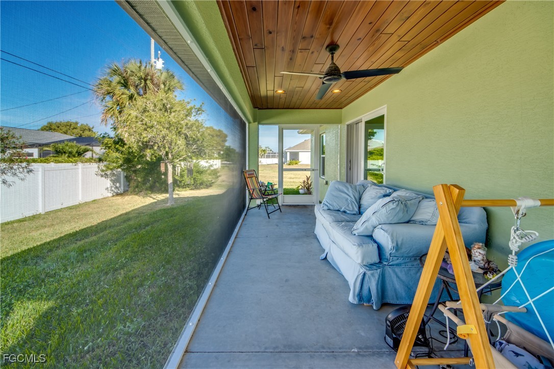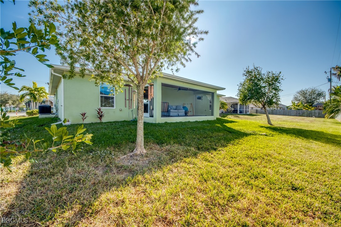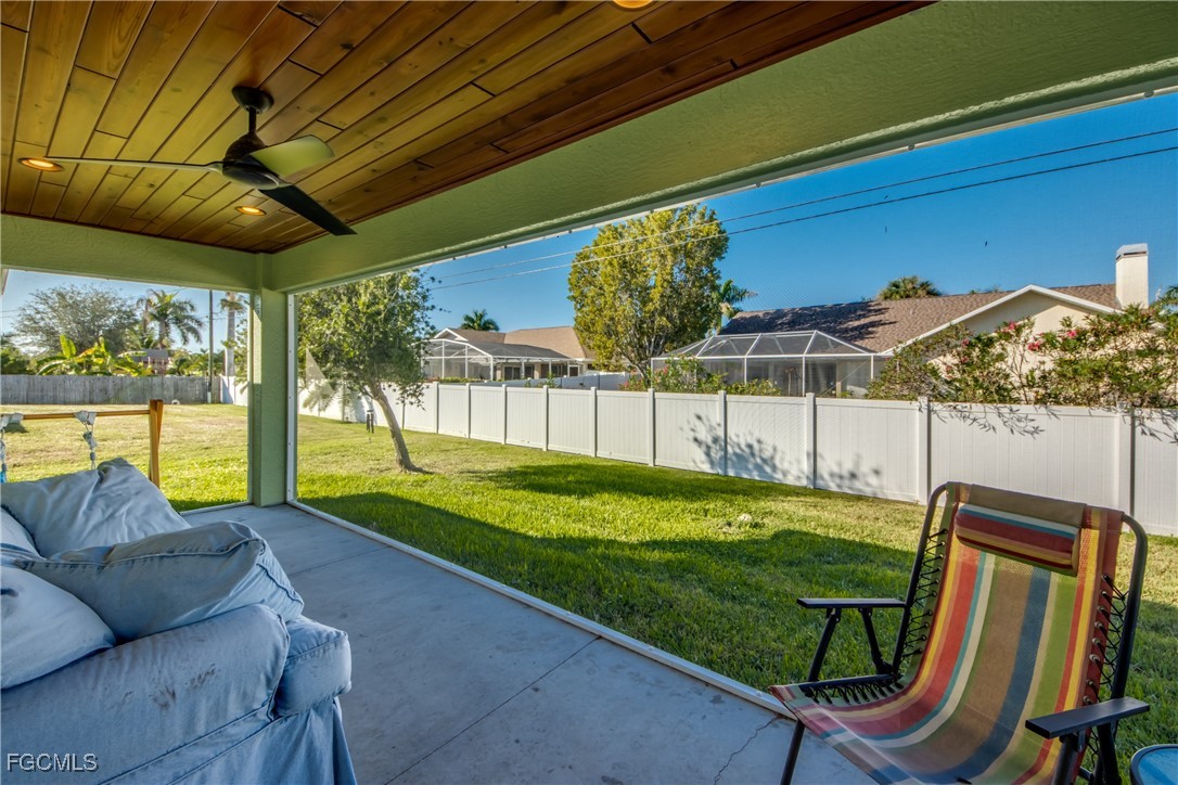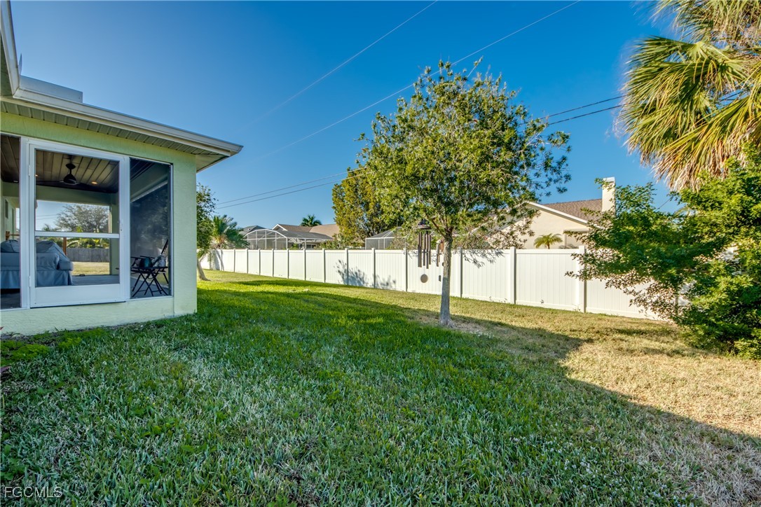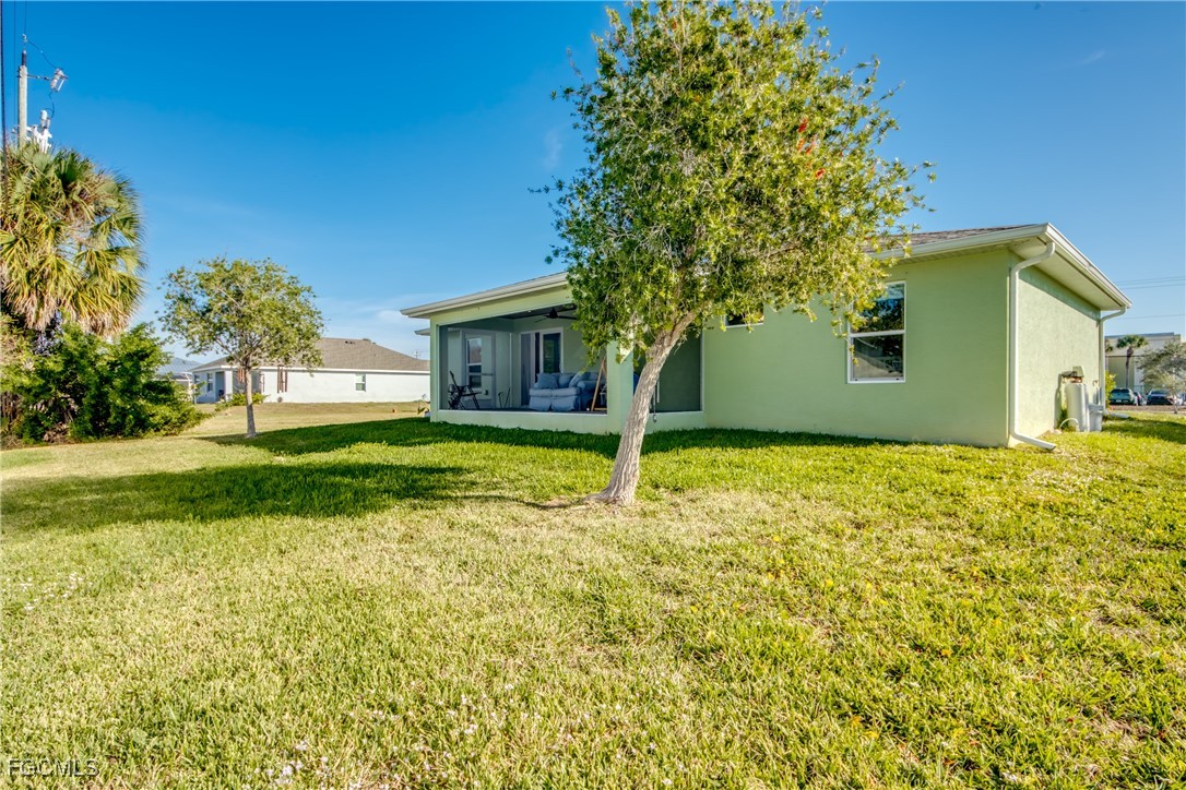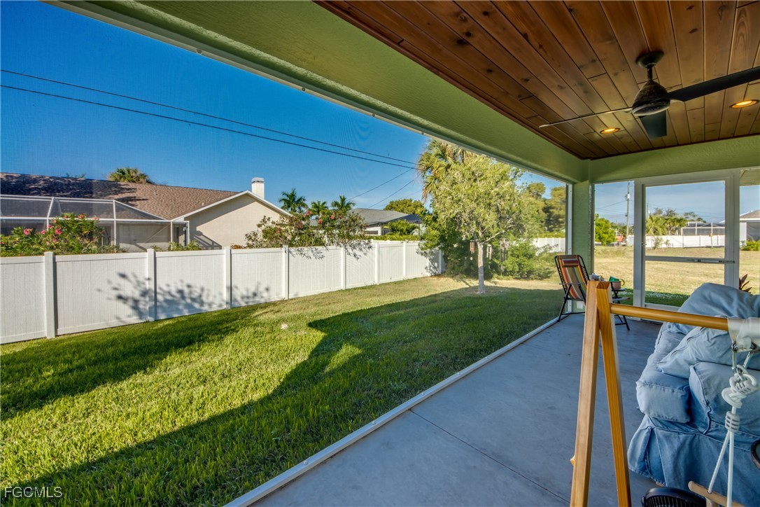#PorchLife #PorchCharm REMEMBER WHEN LIFE PAUSED LONG ENOUGH FOR FRONT PORCH MORNINGS — Coffee in hand, a rocker gently swaying, and morning conversations with dog walkers and neighbors? THIS HOME RESTORES THAT SENSE OF NOSTALGIA and CONNECTION and INVITES YOU TO LIVE IT DAILY. Built in 2018 and nestled in one of SW CAPE CORAL’S MOST REQUESTED NEIGHBORHOODS, this thoughtfully designed 3 bedroom, 2 bath home offers that peaceful charm with the ease of modern construction and a low-maintenance lifestyle. From the HUGE PAVERED CIRCLE DRIVEWAY and NOSTALGIC FRONT PORCH welcome, to the SOLID CONCRETE BLOCK BUILD with IMPACT GLASS DOORS AND SLIDERS, this home blends CHARACTER with CONFIDENCE. A beautiful modern kitchen sets the tone for simple living and effortless entertaining, featuring white cabinetry, QUARTZ COUNTERS, stainless appliances and an open flow into the greatroom anchored by a charming SHIPLAP ACCENT WALL. Both bathrooms share the same quality and finishes and plank tile flooring THROUGHOUT keeps the home fresh, breezy and easy to maintain. The SPLIT BEDROOM FLOORPLAN offers quiet spaces for rest, visiting family or overnight guests. NO PRIOR FLOODING provide added peace of mind — because life should feel light, not worrisome. The OVERSIZED TWO-CAR GARAGE (extra deep at 28 feet) adds room for storage, hobbies or beach gear — whichever suits your chapter. Some homes simply feel right, and this one is no exception — QUARTZ COUNTERS, PLANK TILE FLOORING, SHIPLAP DETAILING and a TONGUE-AND-GROOVE WOOD CEILING on the lanai all whisper comfort, connection and thoughtful design. The LARGE SCREENED LANAI overlooks a lush green yard trimmed with a PRIVACY FENCE, offering a peaceful outdoor retreat without the upkeep of a pool. Extras such as CROWN MOLDING, CUSTOM DOORS, an automatic sprinkler system and city water and sewer with all assessments paid reflect the practicality that makes life easy here. LOCATION MATTERS — and this one is special. You’re WALKING DISTANCE to the OASIS CHARTER SCHOOL CAMPUS, including elementary, middle and high school, plus nearby IDA BAKER HIGH SCHOOL. CAPE HARBOUR, TARPON POINT MARINA and the SHOPS AT SURFSIDE are MINUTES AWAY offering dining, boutique shopping, farmers markets, live music and waterfront comfort. Outdoor lovers will appreciate the CITY OF PARKS lifestyle Cape Coral has to offer — public pickleball courts, tennis courts, soccer and football fields, playgrounds, trails and nearby boat ramps for freshwater or gulf access adventures. Near world-famous beaches and an international airport — making sandy toes and easy getaways practically effortless. Sized smartly and located beautifully, this home delivers a simple, peaceful way of living with modern comfort and quiet Florida charm. SO IF YOU’RE LONGING FOR A SIMPLER WAY TO LIVE — WITH MODERN COMFORTS, LOW-MAINTENANCE EASE AND THE KIND OF DAILY CONNECTION THAT FEELS LIKE HOME — THIS IS WHERE THAT CHAPTER BEGINS. #FeelsLikeHome #LiveWithEase #SimpleLiving