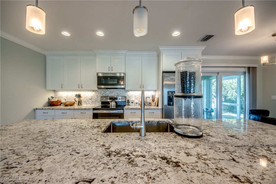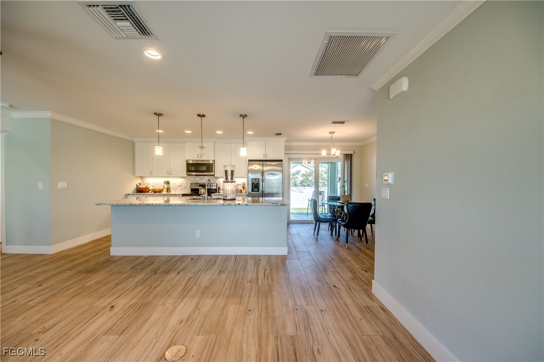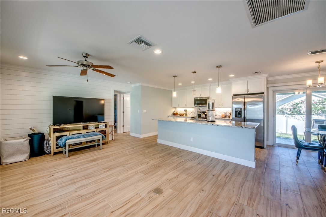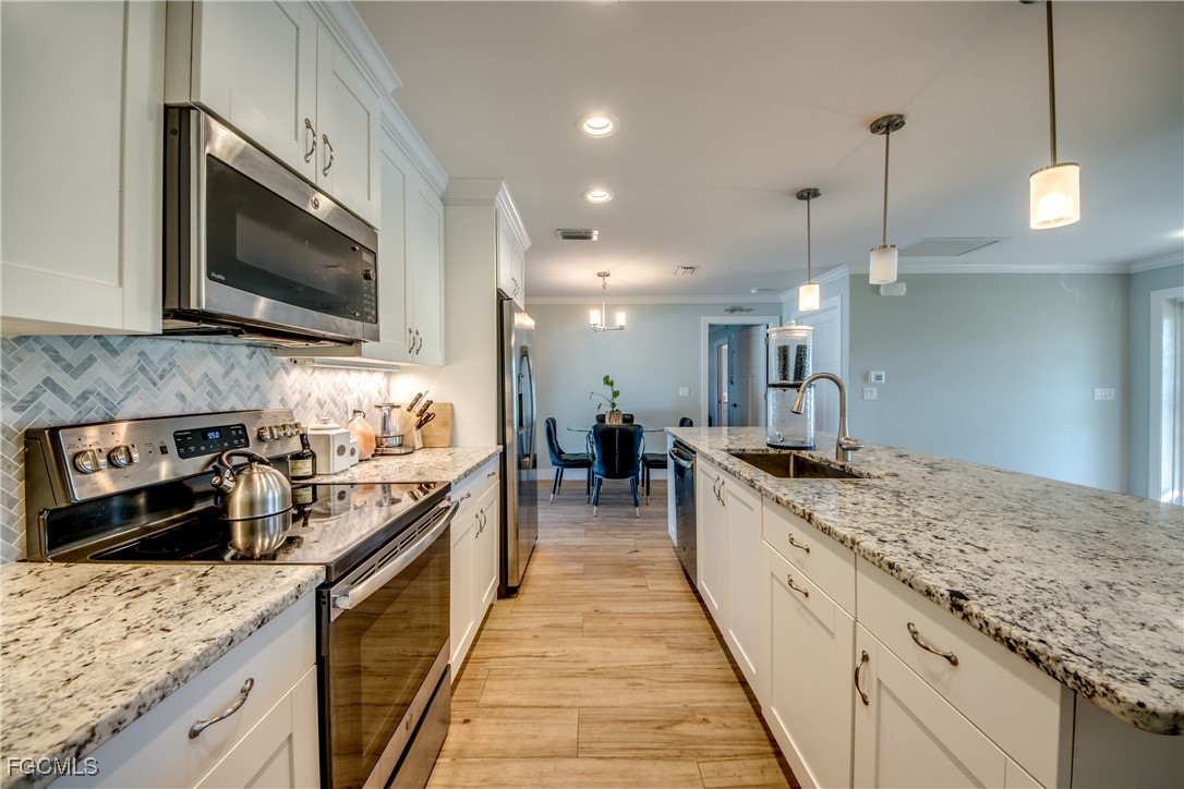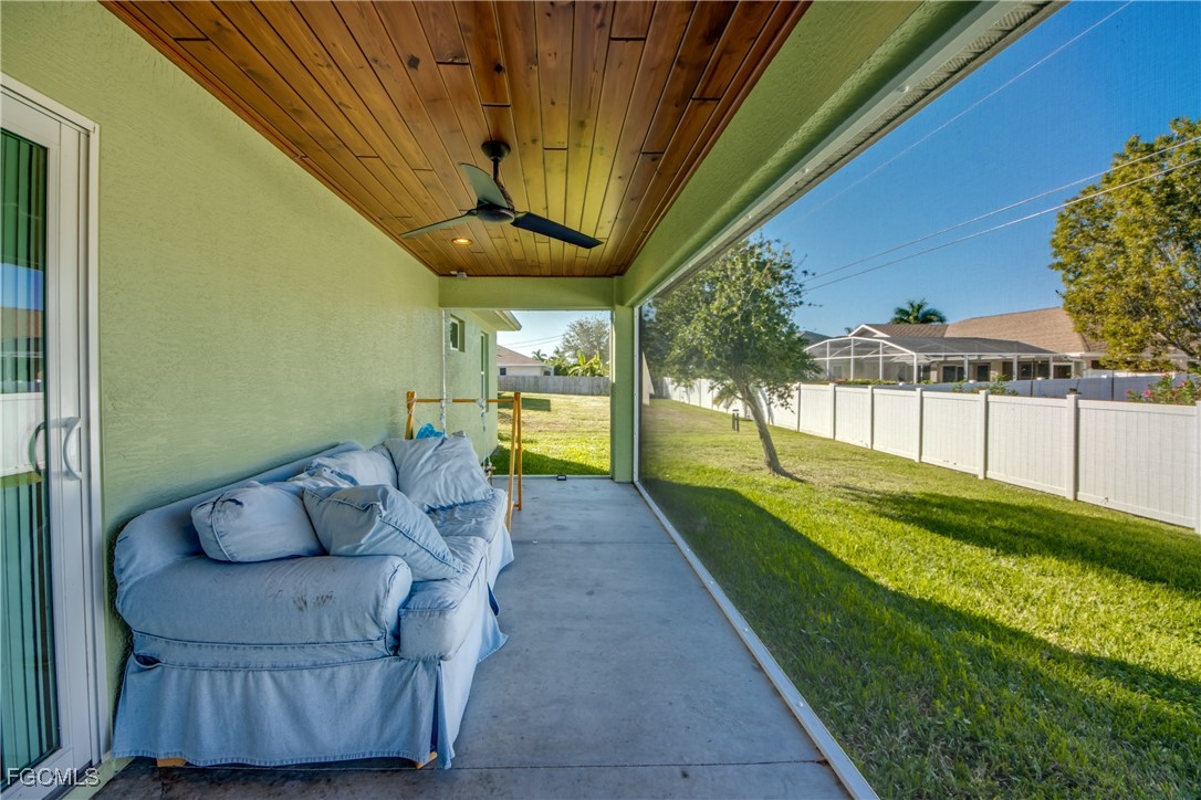 #PorchLife #PorchCharm REMEMBER WHEN LIFE PAUSED LONG ENOUGH FOR FRONT PORCH MORNINGS — Coffee in hand, a rocker gently swaying, and morning conversations with dog walkers and neighbors? THIS HOME RESTORES THAT SENSE OF NOSTALGIA and CONNECTION and INVITES YOU TO LIVE IT DAILY. Built in 2018 and nestled in one of SW CAPE CORAL’S MOST REQUESTED NEIGHBORHOODS, this thoughtfully designed 3 bedroom, 2 bath home offers that peaceful charm with the ease of modern construction and a low-maintenance lifestyle. From the HUGE PAVERED CIRCLE DRIVEWAY and NOSTALGIC FRONT PORCH welcome, to the SOLID CONCRETE BLOCK BUILD with IMPACT GLASS DOORS AND SLIDERS, this home blends CHARACTER with CONFIDENCE. A beautiful modern kitchen sets the tone for simple living and effortless entertaining, featuring white cabinetry, QUARTZ COUNTERS, stainless appliances and an open flow into the greatroom anchored by a charming SHIPLAP ACCENT WALL. Both bathrooms share the same quality and finishes and plank tile flooring THROUGHOUT keeps the home fresh, breezy and easy to maintain. The SPLIT BEDROOM FLOORPLAN offers quiet spaces for rest, visiting family or overnight guests. NO PRIOR FLOODING provide added peace of mind — because life should feel light, not worrisome. The OVERSIZED TWO-CAR GARAGE (extra deep at 28 feet) adds room for storage, hobbies or beach gear — whichever suits your chapter. Some homes simply feel right, and this one is no exception — QUARTZ COUNTERS, PLANK TILE FLOORING, SHIPLAP DETAILING and a TONGUE-AND-GROOVE WOOD CEILING on the lanai all whisper comfort, connection and thoughtful design. The LARGE SCREENED LANAI overlooks a lush green yard trimmed with a PRIVACY FENCE, offering a peaceful outdoor retreat without the upkeep of a pool. Extras such as CROWN MOLDING, CUSTOM DOORS, an automatic sprinkler system and city water and sewer with all assessments paid reflect the practicality that makes life easy here. LOCATION MATTERS — and this one is special. You’re WALKING DISTANCE to the OASIS CHARTER SCHOOL CAMPUS, including elementary, middle and high school, plus nearby IDA BAKER HIGH SCHOOL. CAPE HARBOUR, TARPON POINT MARINA and the SHOPS AT SURFSIDE are MINUTES AWAY offering dining, boutique shopping, farmers markets, live music and waterfront comfort. Outdoor lovers will appreciate the CITY OF PARKS lifestyle Cape Coral has to offer — public pickleball courts, tennis courts, soccer and football fields, playgrounds, trails and nearby boat ramps for freshwater or gulf access adventures. Near world-famous beaches and an international airport — making sandy toes and easy getaways practically effortless. Sized smartly and located beautifully, this home delivers a simple, peaceful way of living with modern comfort and quiet Florida charm. SO IF YOU’RE LONGING FOR A SIMPLER WAY TO LIVE — WITH MODERN COMFORTS, LOW-MAINTENANCE EASE AND THE KIND OF DAILY CONNECTION THAT FEELS LIKE HOME — THIS IS WHERE THAT CHAPTER BEGINS. #FeelsLikeHome #LiveWithEase #SimpleLiving