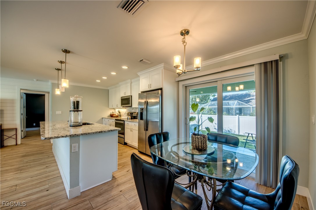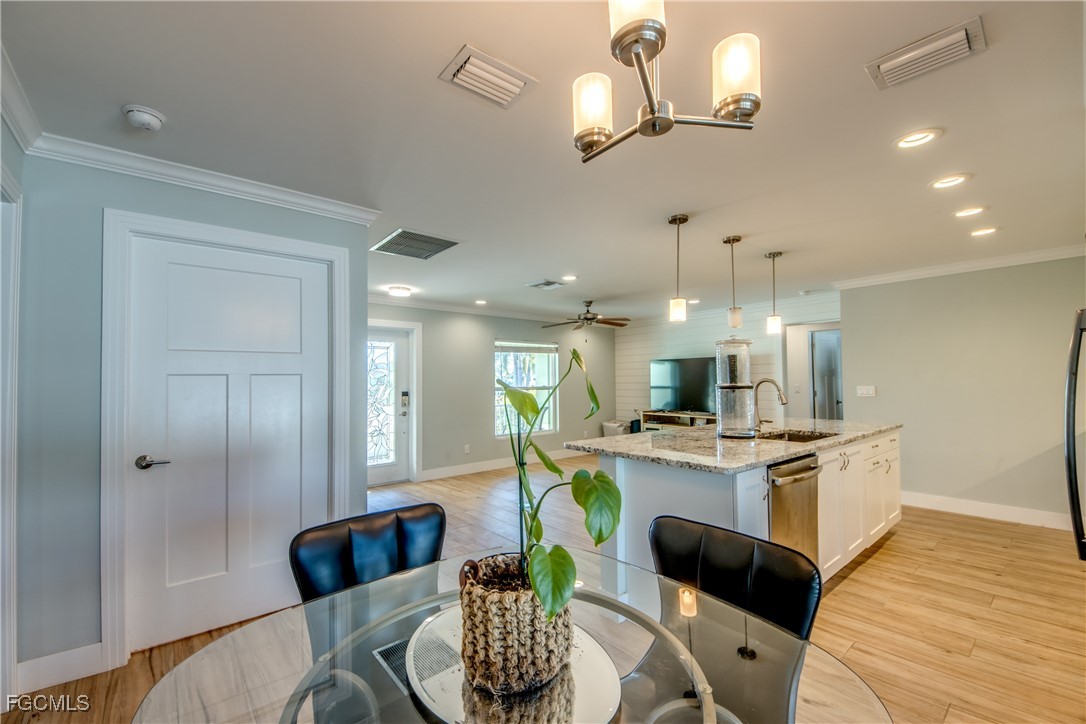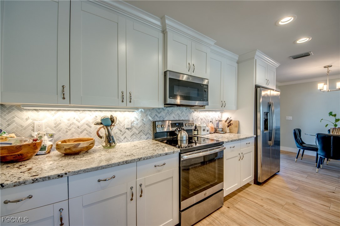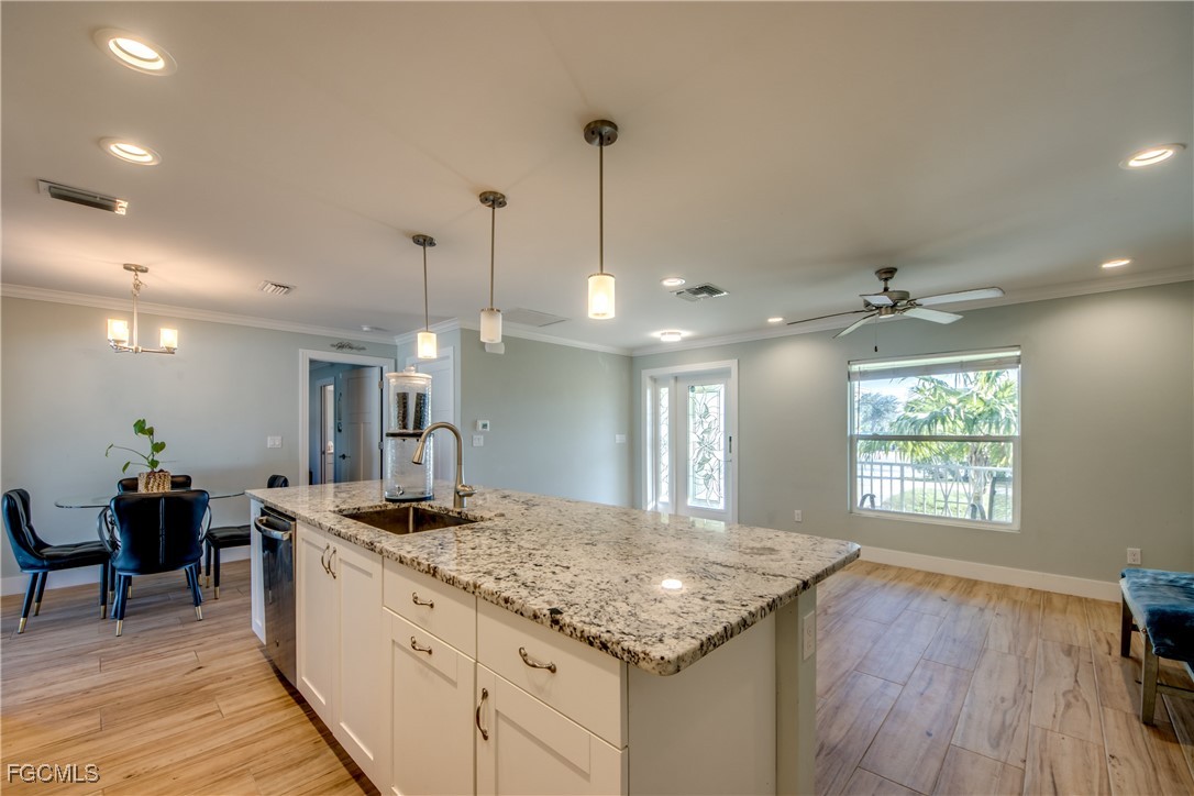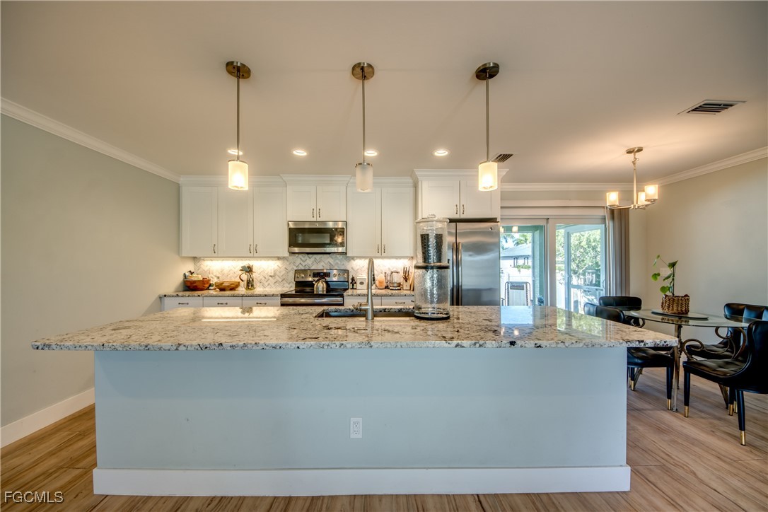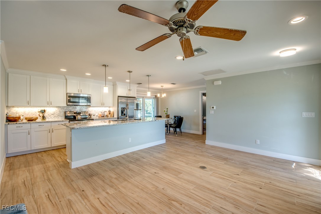 #PorchLife #PorchCharm REMEMBER WHEN LIFE PAUSED LONG ENOUGH FOR FRONT PORCH MORNINGS — Coffee in hand, a rocker gently swaying, and morning conversations with dog walkers and neighbors? THIS HOME RESTORES THAT SENSE OF NOSTALGIA and CONNECTION and INVITES YOU TO LIVE IT DAILY. Built in 2018 and nestled in one of SW CAPE CORAL’S MOST REQUESTED NEIGHBORHOODS, this thoughtfully designed 3 bedroom, 2 bath home offers that peaceful charm with the ease of modern construction and a low-maintenance lifestyle. From the HUGE PAVERED CIRCLE DRIVEWAY and NOSTALGIC FRONT PORCH welcome, to the SOLID CONCRETE BLOCK BUILD with IMPACT GLASS DOORS AND SLIDERS, this home blends CHARACTER with CONFIDENCE. A beautiful modern kitchen sets the tone for simple living and effortless entertaining, featuring white cabinetry, QUARTZ COUNTERS, stainless appliances and an open flow into the greatroom anchored by a charming SHIPLAP ACCENT WALL. Both bathrooms share the same quality and finishes and plank tile flooring THROUGHOUT keeps the home fresh, breezy and easy to maintain. The SPLIT BEDROOM FLOORPLAN offers quiet spaces for rest, visiting family or overnight guests. NO PRIOR FLOODING provide added peace of mind — because life should feel light, not worrisome. The OVERSIZED TWO-CAR GARAGE (extra deep at 28 feet) adds room for storage, hobbies or beach gear — whichever suits your chapter. Some homes simply feel right, and this one is no exception — QUARTZ COUNTERS, PLANK TILE FLOORING, SHIPLAP DETAILING and a TONGUE-AND-GROOVE WOOD CEILING on the lanai all whisper comfort, connection and thoughtful design. The LARGE SCREENED LANAI overlooks a lush green yard trimmed with a PRIVACY FENCE, offering a peaceful outdoor retreat without the upkeep of a pool. Extras such as CROWN MOLDING, CUSTOM DOORS, an automatic sprinkler system and city water and sewer with all assessments paid reflect the practicality that makes life easy here. LOCATION MATTERS — and this one is special. You’re WALKING DISTANCE to the OASIS CHARTER SCHOOL CAMPUS, including elementary, middle and high school, plus nearby IDA BAKER HIGH SCHOOL. CAPE HARBOUR, TARPON POINT MARINA and the SHOPS AT SURFSIDE are MINUTES AWAY offering dining, boutique shopping, farmers markets, live music and waterfront comfort. Outdoor lovers will appreciate the CITY OF PARKS lifestyle Cape Coral has to offer — public pickleball courts, tennis courts, soccer and football fields, playgrounds, trails and nearby boat ramps for freshwater or gulf access adventures. Near world-famous beaches and an international airport — making sandy toes and easy getaways practically effortless. Sized smartly and located beautifully, this home delivers a simple, peaceful way of living with modern comfort and quiet Florida charm. SO IF YOU’RE LONGING FOR A SIMPLER WAY TO LIVE — WITH MODERN COMFORTS, LOW-MAINTENANCE EASE AND THE KIND OF DAILY CONNECTION THAT FEELS LIKE HOME — THIS IS WHERE THAT CHAPTER BEGINS. #FeelsLikeHome #LiveWithEase #SimpleLiving