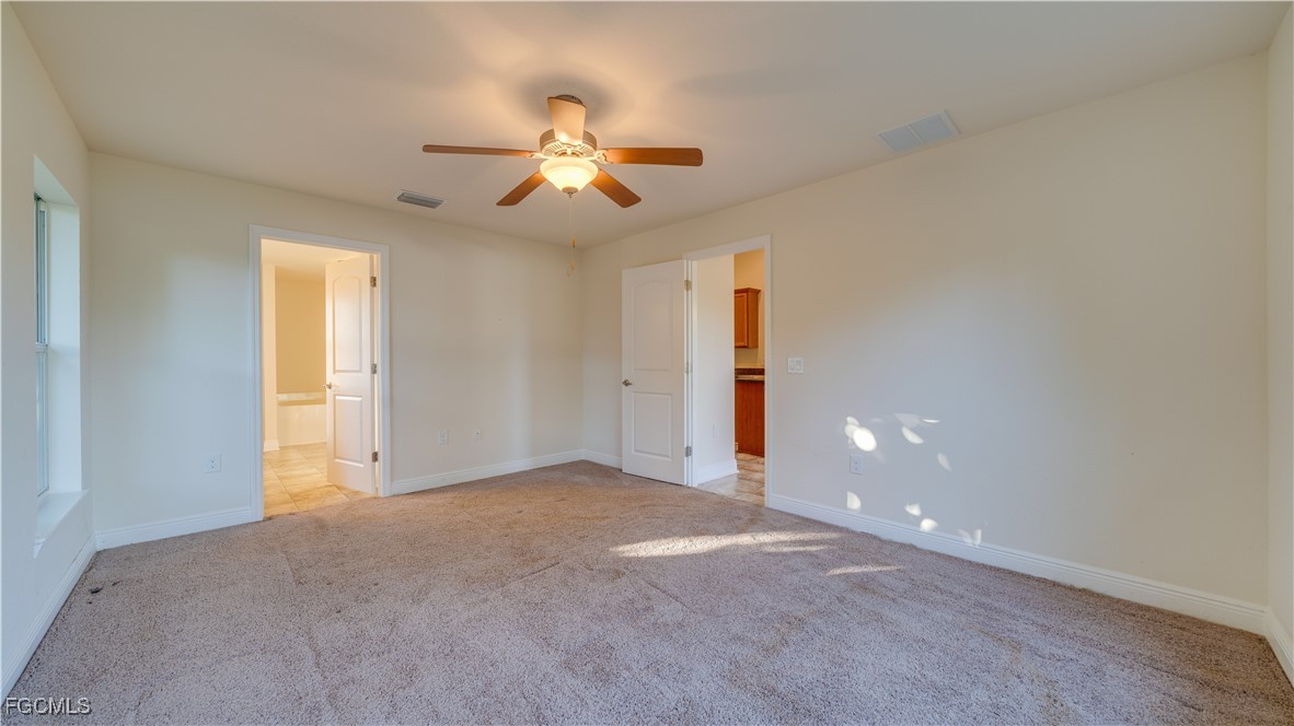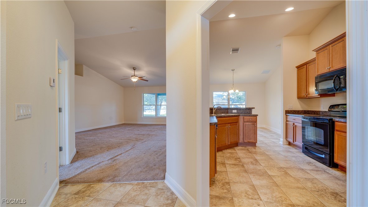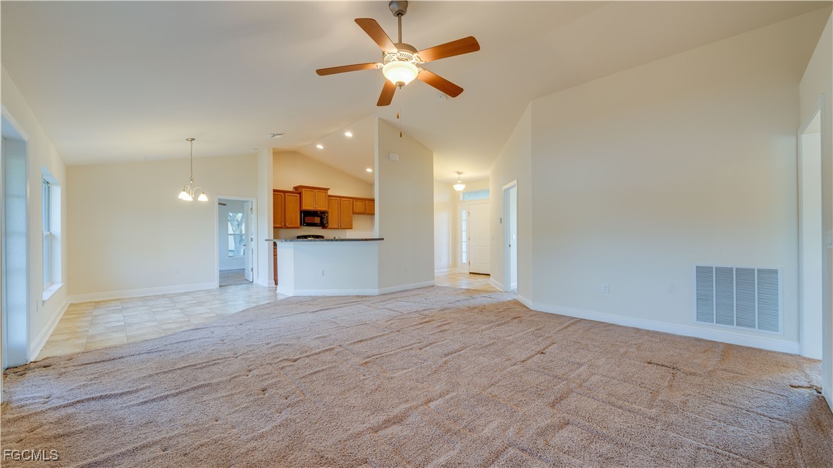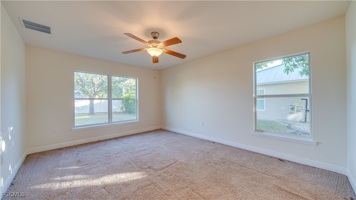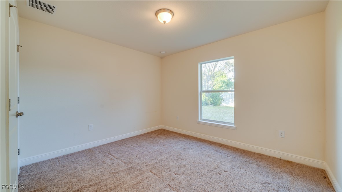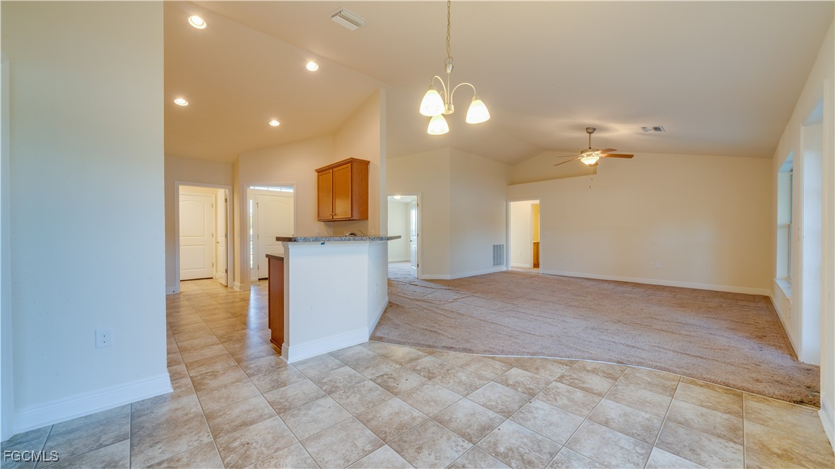 Spacious 4 Bedroom, 2 Bathroom home offering approx. 1,757 sq ft of living area with a spacious great-room floor plan and soaring vaulted ceilings. The large primary suite includes double sinks, a garden soaking tub, separate shower, and walk-in closet. The backyard offers screened rear porch with plenty of room to add a pool. Recent updates include a 2021 metal roof, and a recently serviced A/C. Home is priced accordingly due to known carpet damage. Flooring replacement may be required, and condition has been factored into list price. NOT IN A FLOOD ZONE! ALL ASSESSMENTS PAID. Prime SE Cape Coral location near Santa Barbara Blvd. and Veterans Parkway with convenient access to restaurants, shopping, and schools.