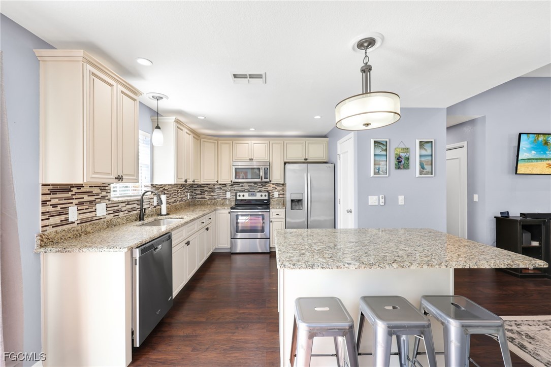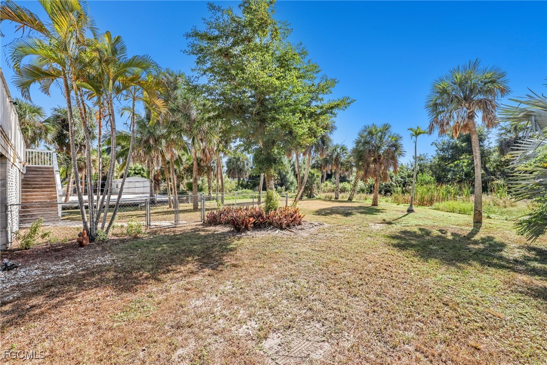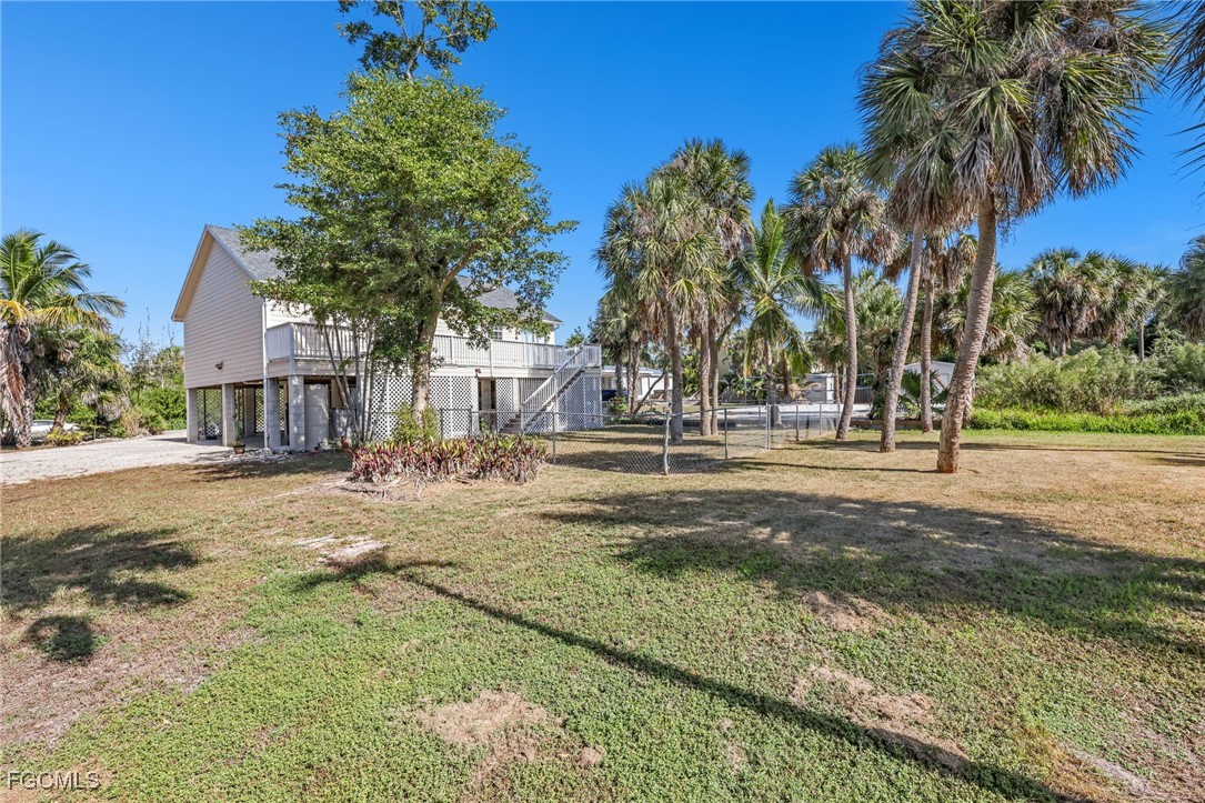 Discover the natural charm of Old Florida in this stunning home that sits on almost 1/2 acre of land, perfectly nestled off McGregor Blvd., just a short drive from the beautiful Sanibel and Captiva Islands. Surrounded by tropical landscaping that blooms year-round, this property is a true gem for nature lovers. Built in 2003, with reinforced concrete block piling elevated frame construction, this spacious 3 bedrooms, 2 bath home has never flooded the main living area and features a modern kitchen equipped with granite countertops, real wood cabinetry, stainless steel appliances, a spacious island perfect for entertaining and sliders leading out to the patio deck. The open living room boasts an abundance of natural light, while modern wood flooring flows throughout the home. The large primary suite provides a 2nd access point to the patio deck, a large walk-in closet, and an updated bathroom featuring dual sinks and a large glass shower. The second and third bedrooms also come with large closets, ensuring ample storage space for everyone. With indoor laundry for your convenience, you can enjoy a hassle-free lifestyle. Step outside to an expansive open deck, perfect for enjoying the serene, lush backyard on almost a half-acre lot, all without any HOA fees. There’s ample parking space beneath the home for cars, boats, and recreational vehicles, along with a secure storage or workshop space. In addition, you have a 30amp and 50amp service connection for your rv/boat under the carport. The property is equipped with a new hot water heater 12/25, new A/C system 04/2025, plus newer newer whole home RO water system installed with maintenance plan, ensuring perfectly clean drinking water, and a cool and comfortable home for years to come. Additionally, the home offers a fenced yard for the kiddos or pets. This friendly neighborhood is quite rare, with parcels of land being much larger and the area being zoned agricultural, allowing for less restrictions on additional storage, workshops, or garages with county approval. The ample space can also provides the perfect opportunity for the pool of your dreams. The owner has transferable flood insurance at a cost under $1,000 per year, providing peace of mind for the new homeowner. With close proximity to shopping, dining, and entertainment, this unique community boasts a variety of impressive homes, making it an ideal place to call your tropical retreat. This home is truly a must see. Call for your private showing today!!!!