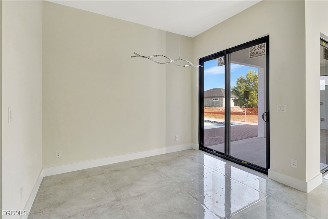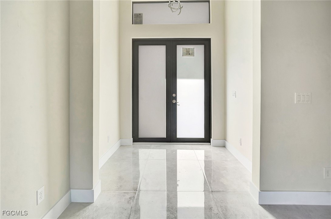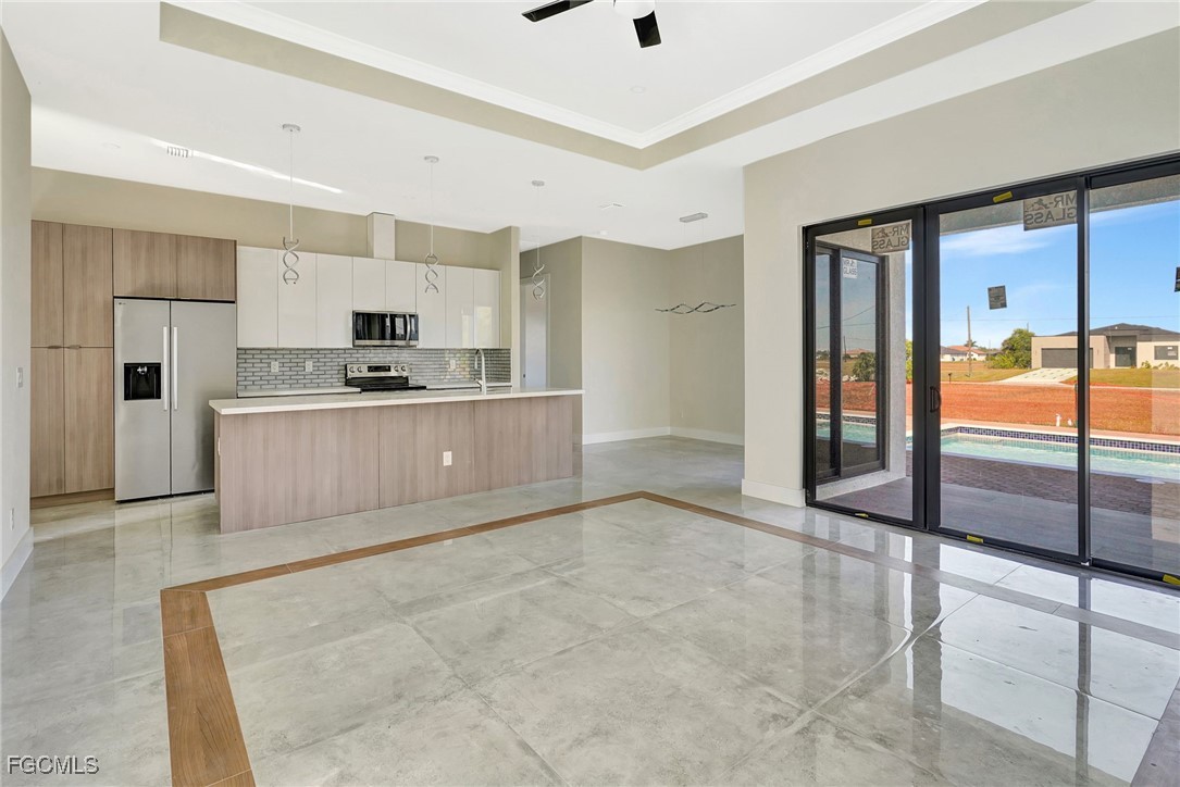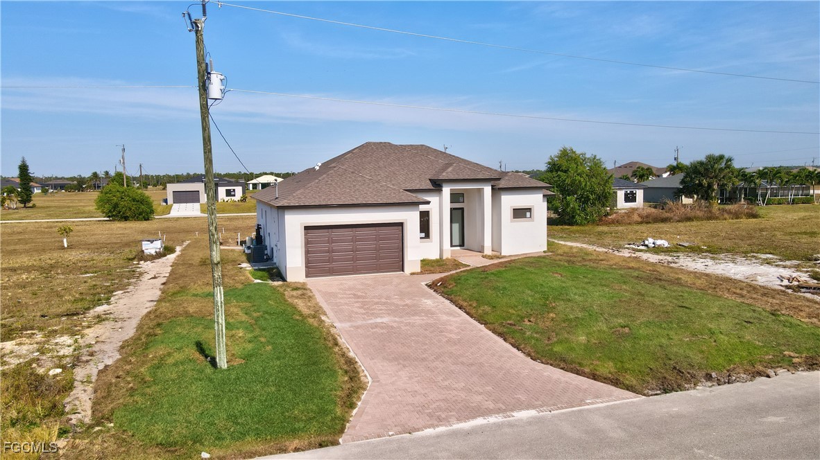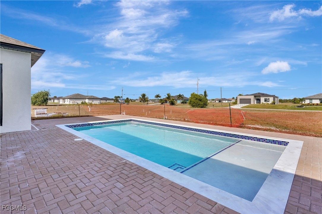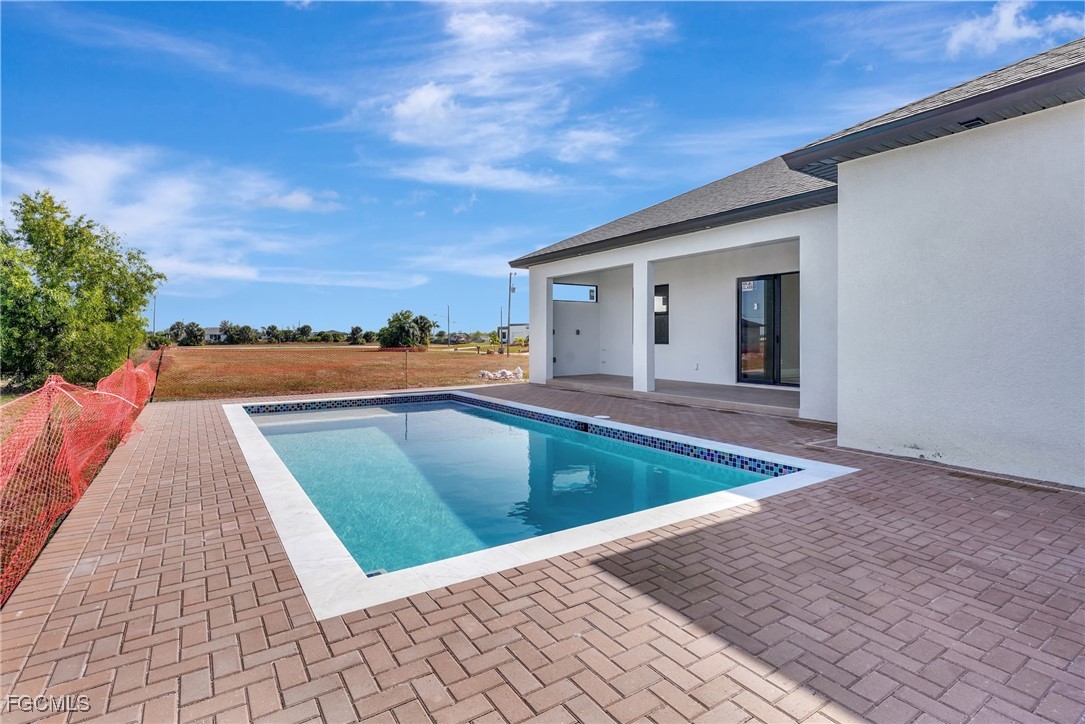 Welcome to this stunning new construction pool home offering exceptional craftsmanship and modern luxury in one of Cape Coral’s most desirable areas. Featuring 4 spacious bedrooms and 3 full baths, this home is designed for both comfort and style with high-end finishes throughout. Step inside and be greeted by spectacular designer tile flooring with custom inlay details, soaring ceilings, and an open-concept layout that brings natural light into every corner. The chef-inspired kitchen boasts stainless steel appliances, sleek cabinetry, and a large island perfect for entertaining. This home is built to last with impact-resistant windows and doors, providing peace of mind during Florida’s storm season and enhancing energy efficiency year-round. Enjoy the best of outdoor living with a sparkling saltwater pool and an expansive under-truss lanai, already plumbed and wired for an outdoor kitchen—ideal for hosting gatherings or relaxing in your private oasis. The exterior is completed with elegant paver decking and a paver driveway, ensuring beautiful curb appeal. Move-in ready and waiting for its first owner—this home offers the perfect combination of luxury, durability, and Florida living. Don’t miss out on this exceptional opportunity in sunny Cape Coral!
