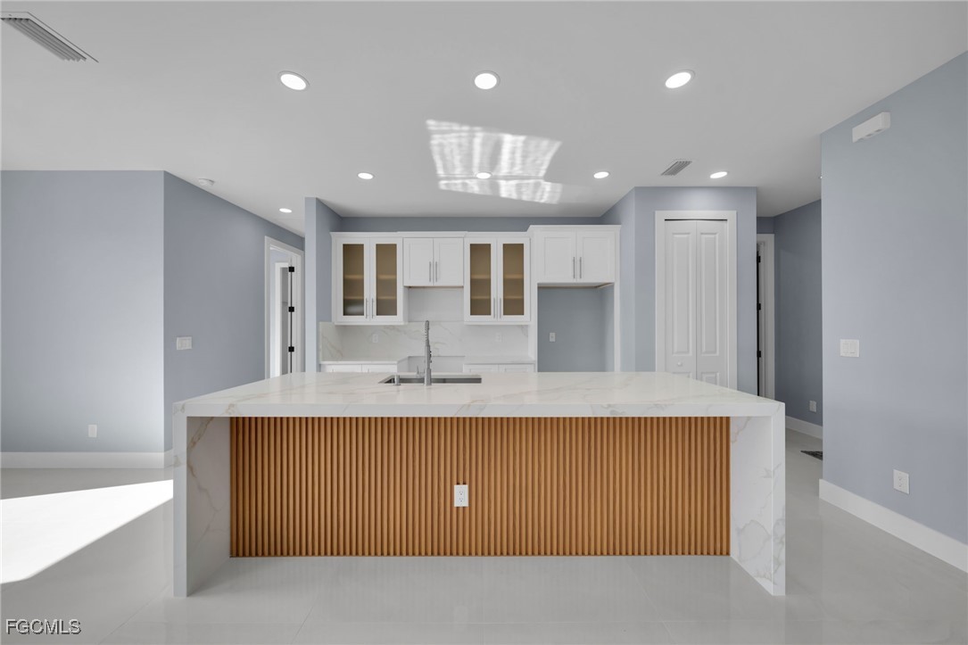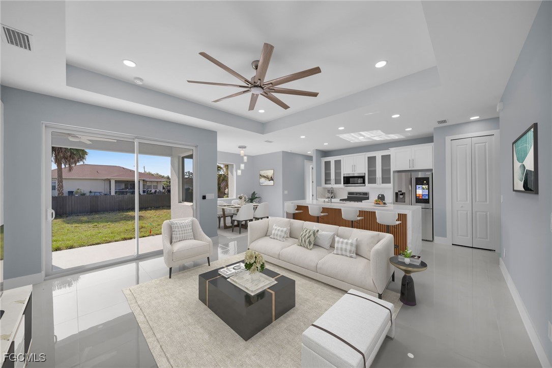 This upgraded 3-bedroom + den, 2-bathroom home sits on a premium corner lot in a rapidly growing neighborhood surrounded by new construction homes. Conveniently located near Gunnery Rd, Lee Blvd, and SR-82, you’re just minutes from shopping, schools, and major roadways for easy commuting. Inside, enjoy a modern open floor plan with tray ceilings, tile flooring, and walk-in closets in every bedroom. The den features a new office-style built-in closet, giving you the flexibility to use it as a home office or 4th bedroom. The kitchen includes granite countertops, stainless steel appliances, pantry, breakfast bar, under-cabinet LED lighting, and a stylish tile backsplash.Relax or entertain on the spacious lanai with a custom outdoor kitchen featuring a marble countertop and backsplash. The master suite offers dual walk-in closets, double vanities, and a designer walk-in shower. Additional upgrades include a smart garage door motor, outdoor soffit lighting, automated sprinkler system, upgraded ceiling fans, and a laundry room with cabinets and a deep utility sink. Plenty of room for a future pool. This home blends style, comfort, and a prime location. Schedule your private tour today!