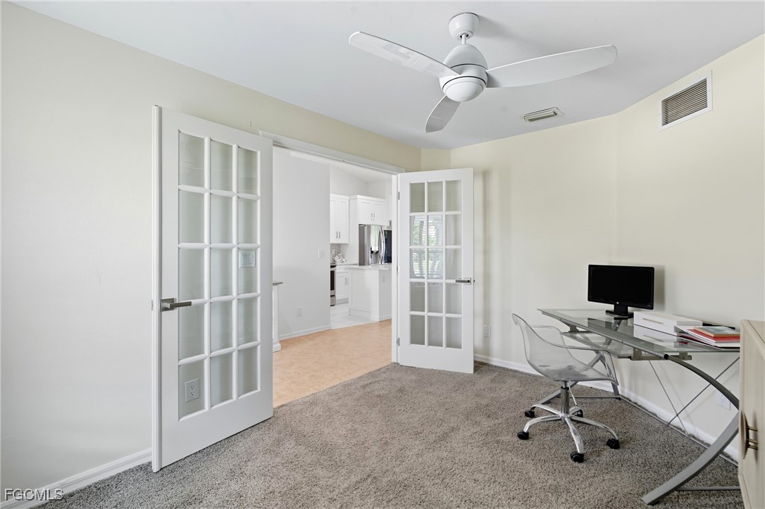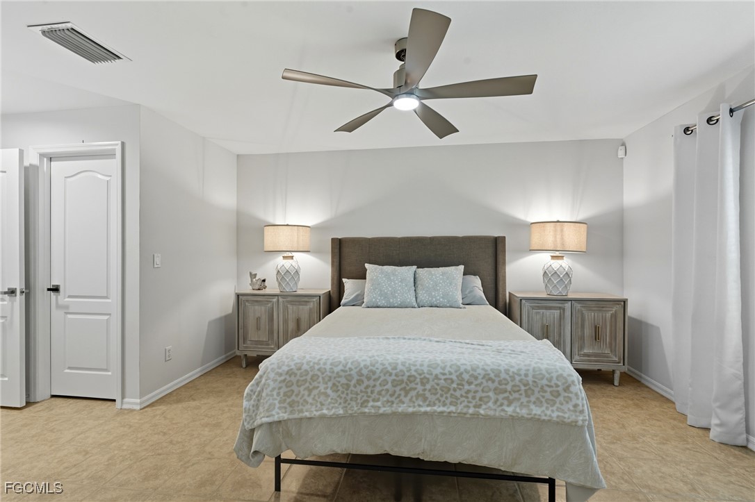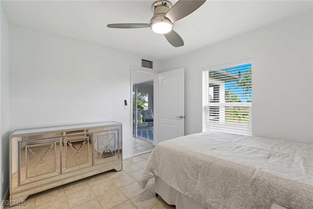 Recently updated, this NW Cape Coral home is move-in ready and shows beautifully! Conveniently located just minutes from parks, golf courses, schools, and the library, it offers both comfort and accessibility. Featuring 3 bedrooms plus a den and 2 full baths, the split floor plan includes a spacious great room with vaulted ceilings and triple sliding glass doors that open to a screened lanai. The oversized, fully fenced backyard provides exceptional privacy, ample space for outdoor living, and plenty of room for a pool. The remodeled open-concept kitchen is a showstopper, complete with white shaker cabinetry, a custom tile backsplash, quartz countertops, stainless steel appliances, and a breakfast bar. The luxurious primary suite boasts two walk-in closets along with a redesigned bath featuring dual sinks, a new vanity, and a marble countertop. Two generously sized guest bedrooms share an updated Jack-and-Jill bath for added convenience. Den is off the front entry way and a perfect space for your home office. Additional highlights include IMPACT windows, tile flooring throughout, stylish new lighting fixtures, fresh interior paint, an extended driveway, a NEW roof (2022), and HVAC (2021) with UV light and whole house reverse osmosis system with UV light. Best of all—this home has never flooded and does not require flood insurance. All that’s left to do is move in and enjoy your Florida lifestyle!