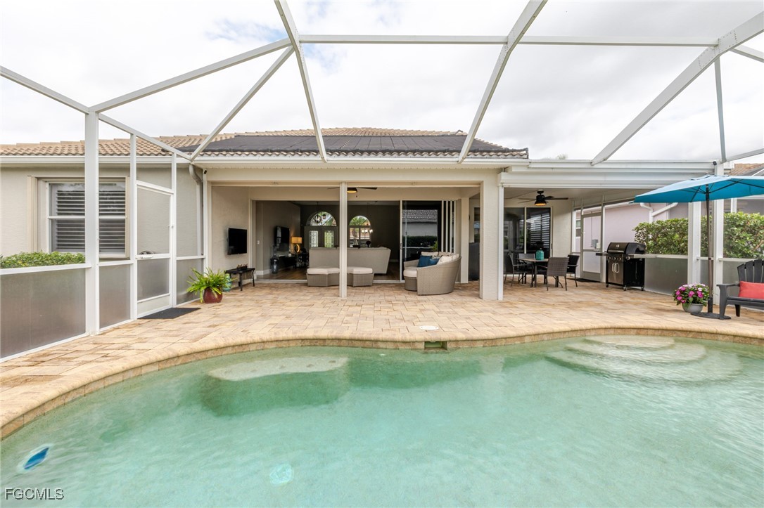 Step into modern luxury with this completely renovated Osprey model pool home featuring high-end finishes and upgrades throughout. Designed for everyday living and effortless entertaining, this home offers a bright open layout, premium flooring and a beautifully redesigned kitchen with stunning stone countertops w/waterfall effect. All the major work has been done (majority completed 2023-2024) - newer roof, newer HVAC system w/blue light system, newer water heater, newer pool heater/pump. Fresh exterior paint completed in 2023 enhances curb appeal & gives the property a crisp, modern look. This home is equipped with an EcoBee Smart Home System for energy-efficient comfort which operates pool, alarm system & HVAC. It will automatically turn off the AC if it detects open windows. Storage galore w/custom closet. Resort style pool & spa has solar heat w/electric backup. Hurricane Shutters for peace of mind. Oversized 2 car garage has epoxy flooring & overhead storage, extra braced garage door & separate vented AC unit. Full home Generac generator with buried propane tank. Move-in ready and meticulously upgraded, this home seamlessly blends luxury, convenience and Florida living at its best.