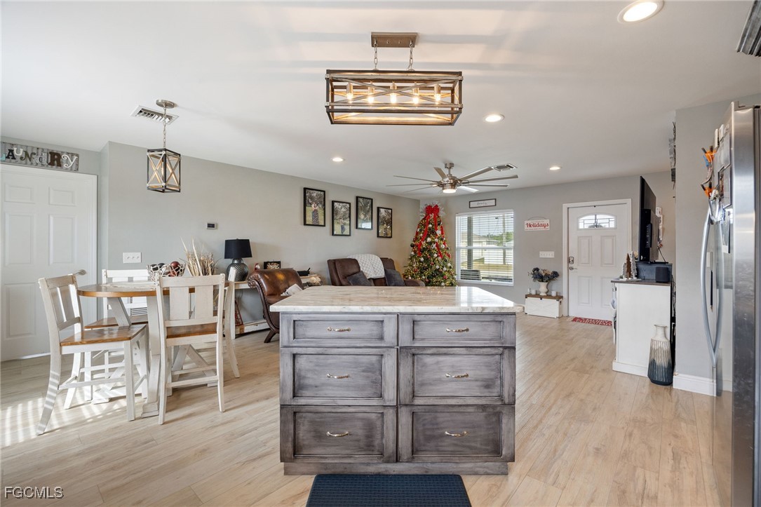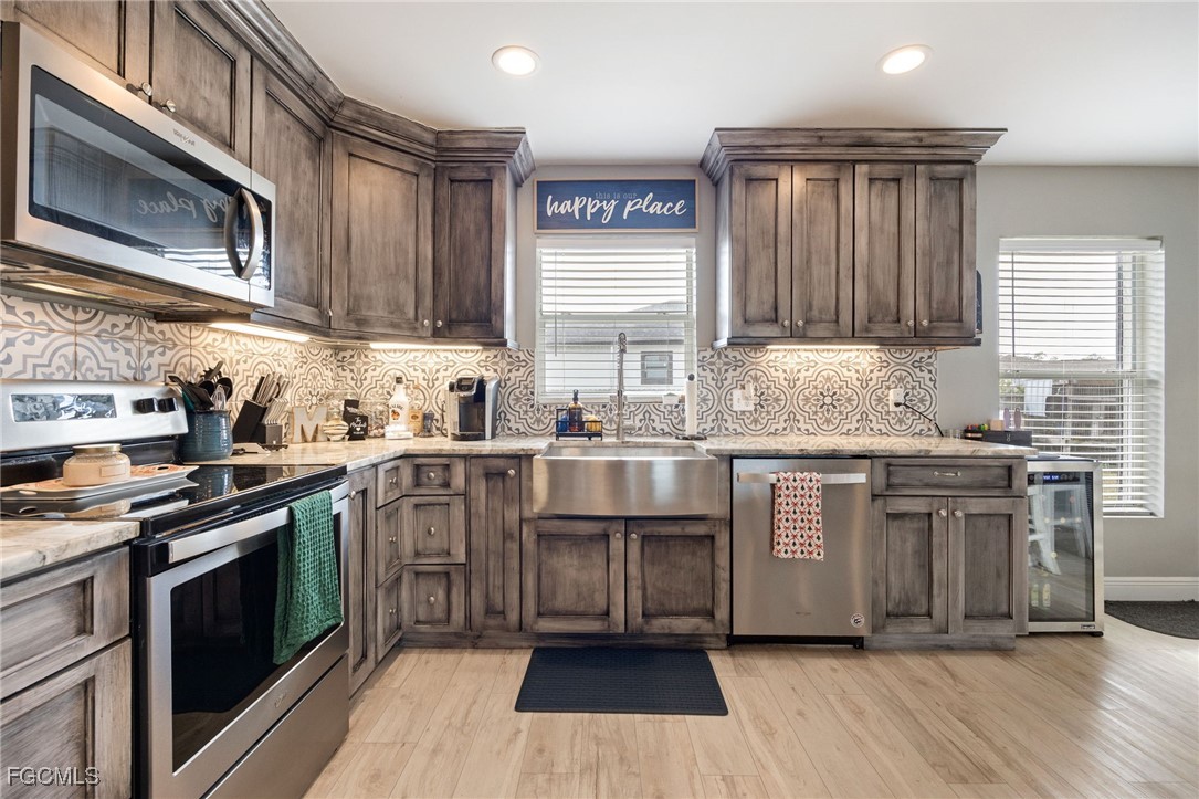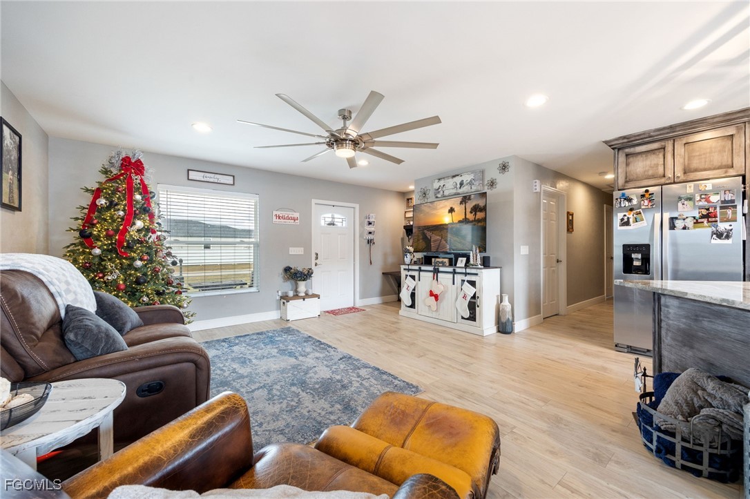 Stunning and fully remodeled home located in the highly desirable Port LaBelle community. This beautiful property underwent an extensive renovation in 2019, during which the home was essentially taken down to the studs and rebuilt with quality craftsmanship and modern upgrades throughout. Improvements include a new metal roof, new central A/C system, a tankless water heater, new plumbing and electrical updates, new stainless steel appliances, new drywall, new flooring, and fresh paint inside and out. No expense was spared in creating a home that feels modern, comfortable, and move-in ready. The interior features an inviting open-concept floorplan designed to maximize space and natural light. The kitchen is a true focal point, offering custom solid wood cabinetry, stainless steel appliances, a farmhouse sink, a dedicated coffee bar, and ample countertop and storage space. The thoughtful design continues into the bathrooms and laundry area, each upgraded with solid wood cabinetry for durability and style. The master suite includes a custom barn door slider leading to the bathroom, a beautifully finished shower enclosure, and abundant storage. For added comfort, the owner installed a separate mini-split air conditioning unit in the master bedroom, allowing for personalized climate control independent of the main home. Situated on an oversized corner lot, this property provides extra outdoor space and privacy. The backyard is fully enclosed with a wood privacy fence, making it ideal for pets, gatherings, or simply enjoying quiet Florida living. An added bonus: No flood insurance required! This home is located in LaBelle, Florida, one of Southwest Florida’s most charming and fast-growing communities. LaBelle is known for its peaceful small-town atmosphere, historic riverfront district, and strong sense of community. Residents enjoy access to the Caloosahatchee River for boating and fishing, multiple parks and nature preserves, local restaurants and shops, and popular annual events such as the Swamp Cabbage Festival. LaBelle also offers convenient access to larger metropolitan areas, with easy routes to Fort Myers, Naples, and the East Coast via SR-80. The area continues to experience growth and development while still maintaining the quiet, welcoming lifestyle that makes it so attractive. This meticulously renovated home offers the perfect blend of quality construction, modern finishes, and the relaxed charm of LaBelle living. It is truly a must-see for buyers seeking a move-in-ready property in a thriving and enjoyable Florida community.