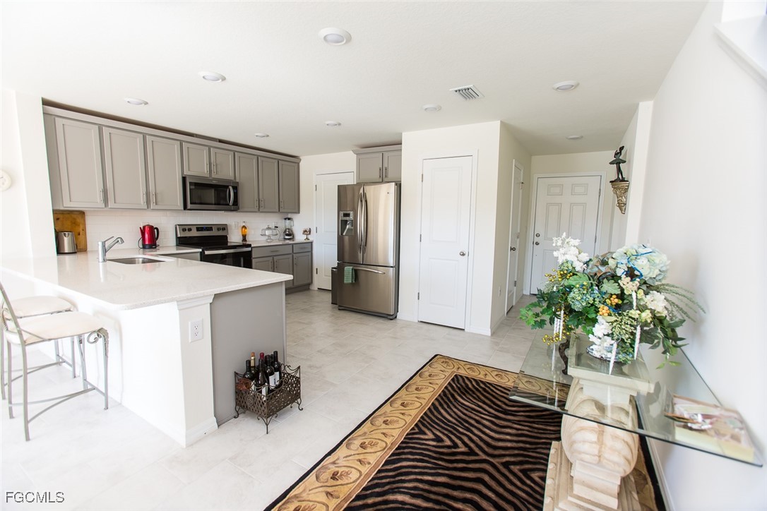 and only 10 minute drive from 75 and Downtown Ft Myers make this a sought after location! This stunning property boasts 2 bedrooms, 2.5 bathrooms, and an oversized 1car garage. Enjoy the community pool and the serene lake view from your living and dining area on ground floor and master bed and bath upstairs. The Quartz counters, Grey solid wood Shaker Cabinets and stainless steel appliances in the kitchen add a touch of elegance, while the tile flooring throughout the house with carpet in bedrooms create a cozy atmosphere. The light and bright interior, upstairs laundry, extended concrete patio, custom landscaping, room to park 2 cars on your driveway,heated community pool, clubhouse and low HOA with motivated sellers, make this townhouse truly exceptional. Don't miss out on the opportunity to call this place your own!