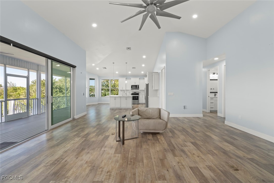 Step inside to a tasteful, light-filled interior where a spacious great room with vaulted ceilings opens seamlessly to the outdoors. The designer kitchen impresses with a large island, quartz countertops, and stainless-steel appliances, making it an ideal space for gathering, entertaining, or relaxing after a day on the water. Expansive sliders frame beautiful, long water views down the canal, offering a constant reminder that paradise begins right outside your door. Located just minutes from one of the best shelling beaches in the world and a short ride to Captiva’s charming shops and restaurants, this home embodies the very best of island life. To complete the ultimate coastal lifestyle, the property also includes a 2022 Yamaha 210 FSH boat and a 2021 Moto 6-seater street-legal golf cart—your ticket to exploring the waterways, beaches, and vibrant island community with ease. Living Room and Primary Bed furnishings are virtually staged.