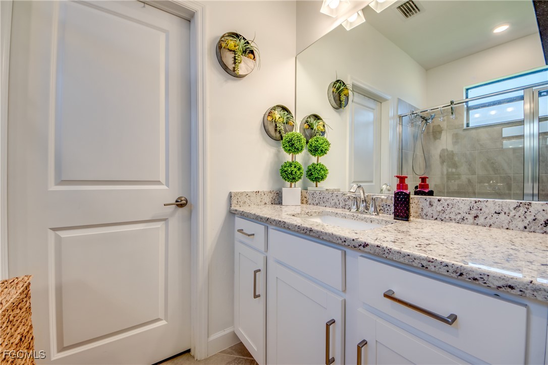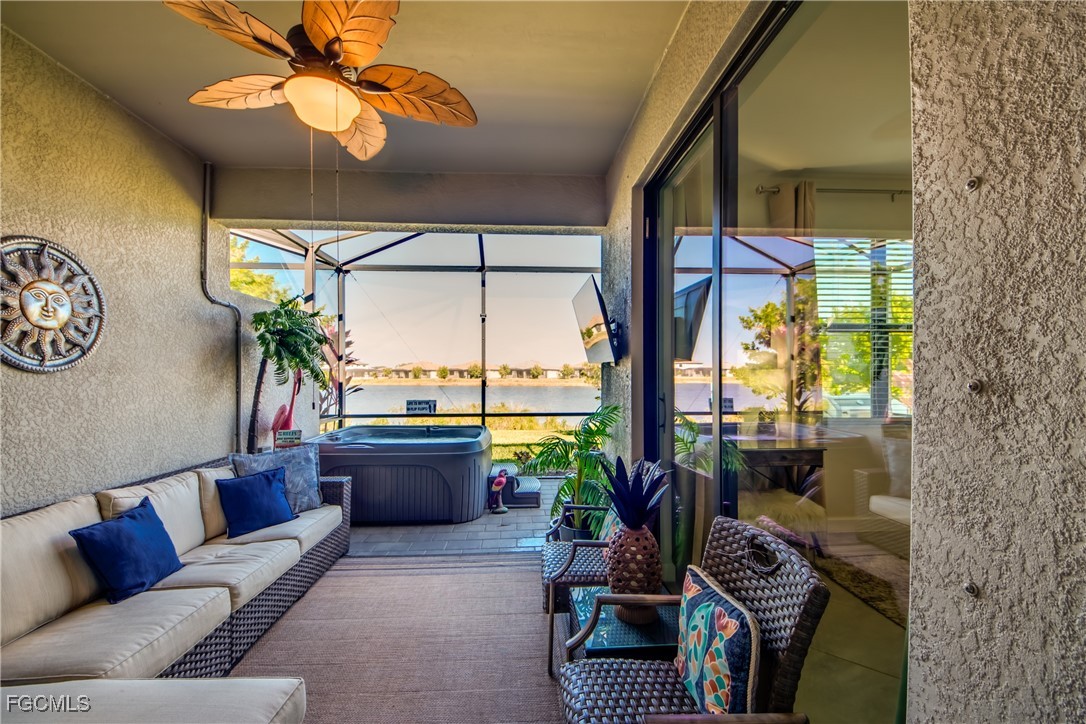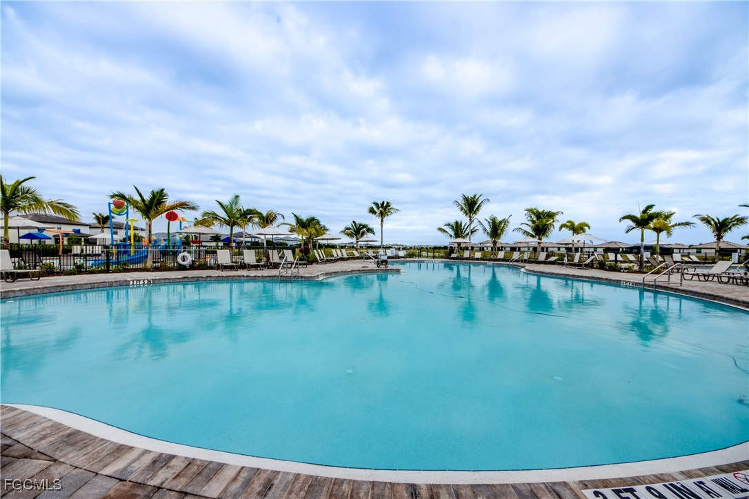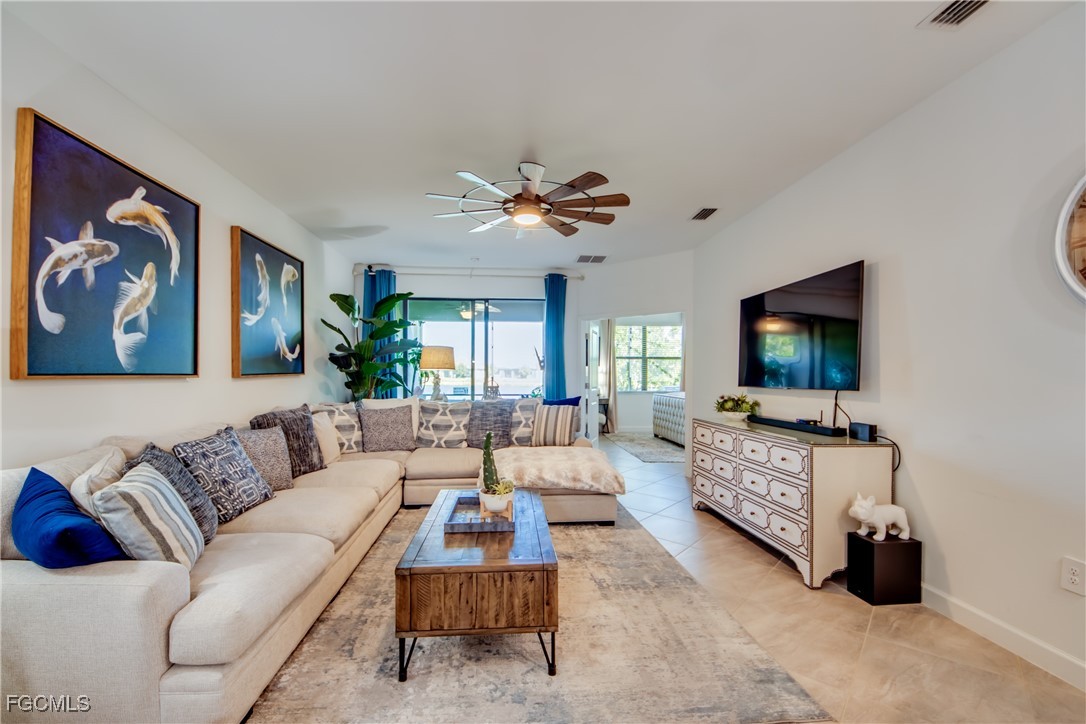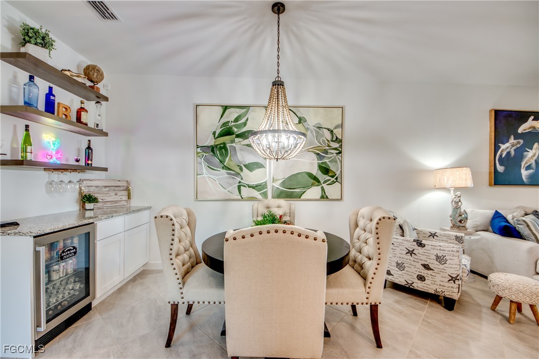 Discover this rare, beautifully maintained villa in the highly sought-after resort community of Timber Creek. Used only seasonally, this waterfront 2-bedroom, 2-bath plus den residence offers 1,524 sq. ft. of thoughtfully designed living space and a true split floor plan. A screened front entry welcomes you into an open layout featuring tile flooring laid diagonally throughout. The den features privacy-tinted windows and is comfortably arranged to function as a third bedroom. The kitchen and dining area are enhanced by a custom bar with the same granite countertops that are in the kitchen and bathrooms. The added in bar features a mini-fridge perfect storing extra hydration or all your favorite adult beverages. Kitchen has white shaker cabinetry with under cabinet lighting and pendent lighting over the breakfast bar area that glows on the granite countertops. The owners suite sits privately at the rear of the home overlooking the water, complete with a large walk-in closet and private access to the expansive lanai. Outdoor lighting upgrades and a generous covered lanai with added power for the hot tub ( The spa is negotiable ) create the ideal Florida retreat. While the garage features epoxied flooring for a clean and polished finish. Gutters were also added all the way around!! Owners already went through with designing and planning to add a pool and was approved through the HOA and City!! Residents of Timber Creek enjoy premier amenities including a resort-style pool, clubhouse, fitness center, restaurant, indoor/outdoor sports courts, pickleball, sauna, coffee lounge, playground, and miles of walking trails. This villa offers the perfect combination of comfort, updates, and community living in one of Fort Myers’ most desirable neighborhoods.