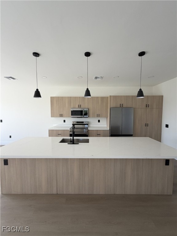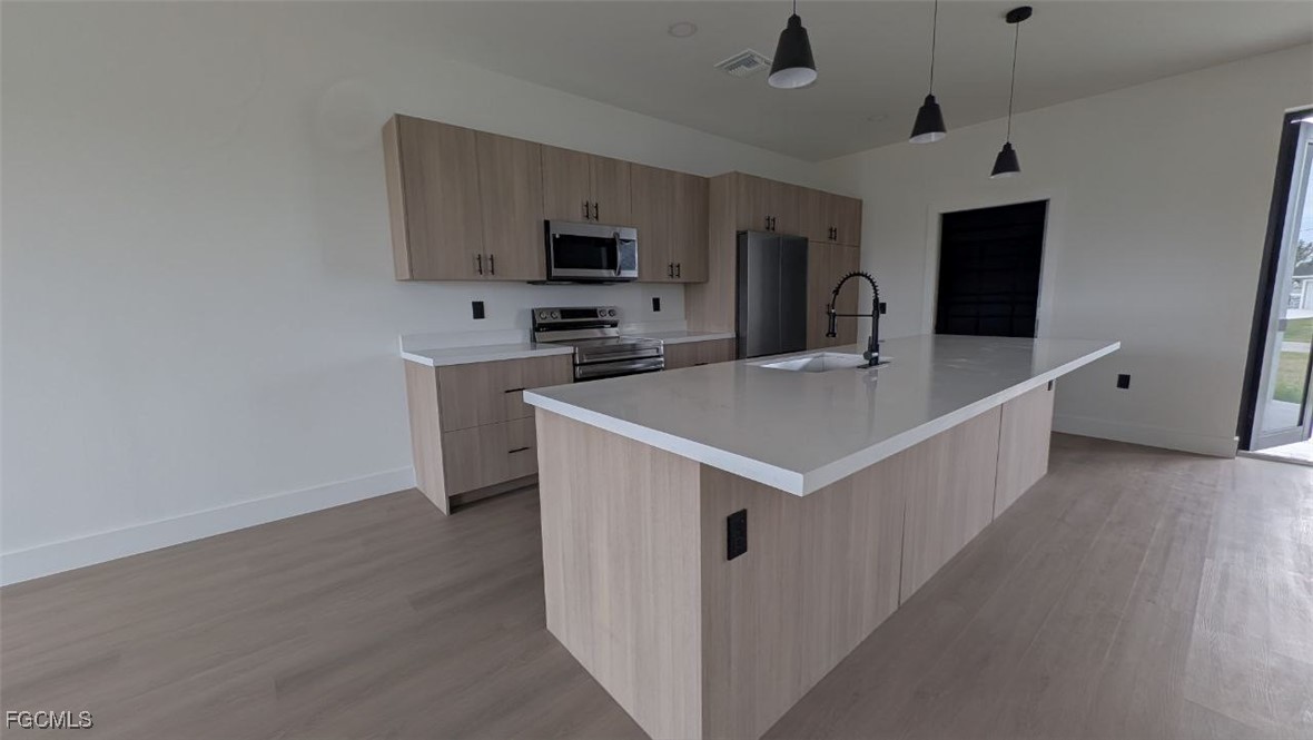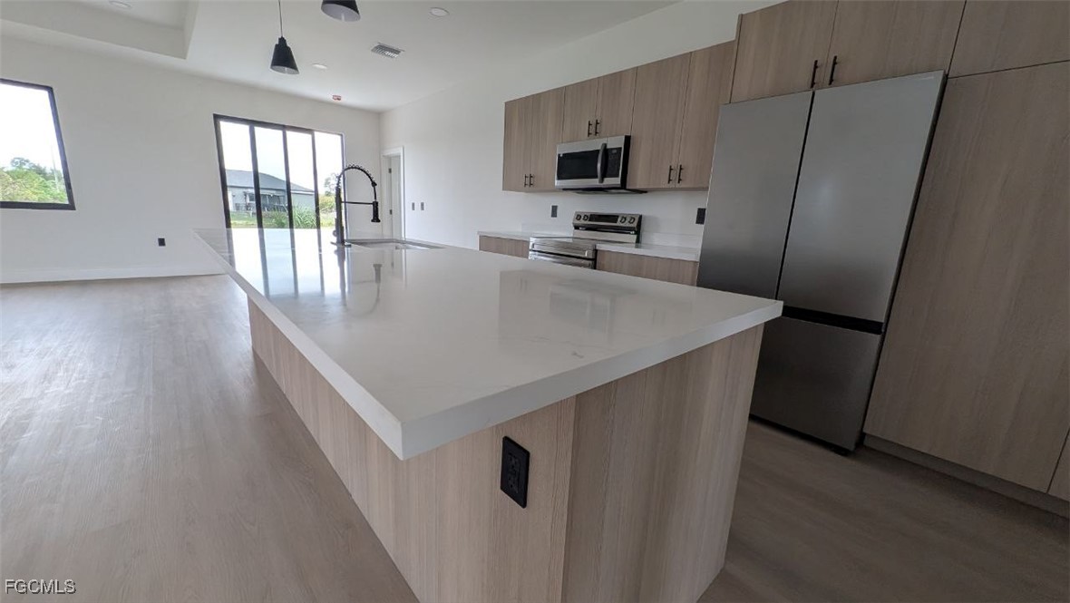 Welcome to your new home in LaBelle, FL! This modern and stunning residence has been thoughtfully designed with both comfort and style in mind. Featuring 3 bed/ 2 baths, this beauty offers 1,491 sqft of living space and a total area of 2,092 sqft. Step inside and be greeted by soaring ceilings and recessed lighting that create a bright, airy atmosphere, making every room feel spacious and inviting. The chef-inspired kitchen is the heart of the home, showcasing elegant quartz countertops and energy-efficient stainless-steel appliances—a perfect blend of sophistication and sustainability.