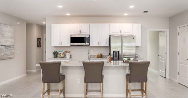Discover The Willow in Lehigh Acres, where style, smart design, and modern convenience come together. Boasting over 2,000 square feet, this thoughtfully designed split-bedroom home strikes the perfect balance of comfort, elegance, and efficiency. Step through the covered front entry and find a Den with double French doors to the right—an adaptable space ideal for a study, or creative retreat. The home opens into a bright, open-concept layout with ceramic tile throughout the main living areas, creating a seamless flow from room to room. At the heart of the home, the spacious kitchen features a large walk-in pantry, and an island with bar-top seating—perfect for everyday meals and entertaining. Adjacent, the great room, enhanced with extra LED lighting, provides a central gathering space that flows effortlessly to the screened-in lanai, inviting effortless indoor-outdoor living. The primary suite, privately situated at the rear of the home, offers a serene retreat with a large walk-in closet, dual sinks, and a tiled shower. On the opposite side of the home, three additional bedrooms provide flexible space for family, guests, or a home office. Modern living is made easy with smart home upgrades, including a Ring Video Doorbell, Smart Thermostat, Keyless Entry Smart Door Lock, and Deako Smart Switches. Additional highlights include professionally installed landscaping, impact-resistant ENERGY STAR® windows for improved efficiency, and a full builder warranty for lasting peace of mind. The Willow is a perfect blend of form, function, and flexibility—designed to accommodate the way you live today.