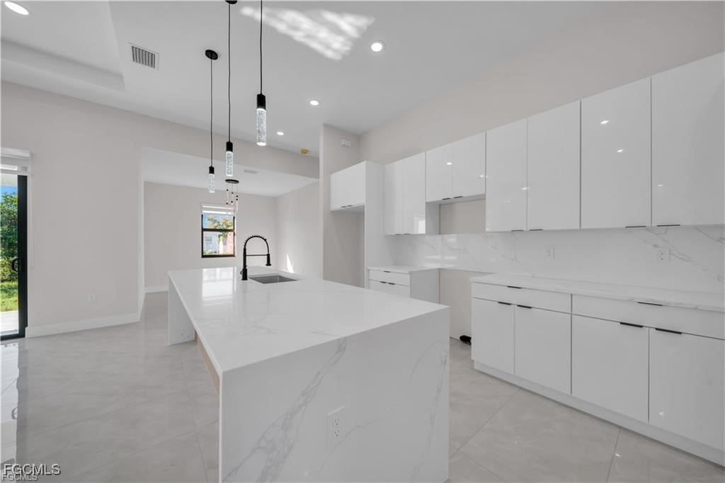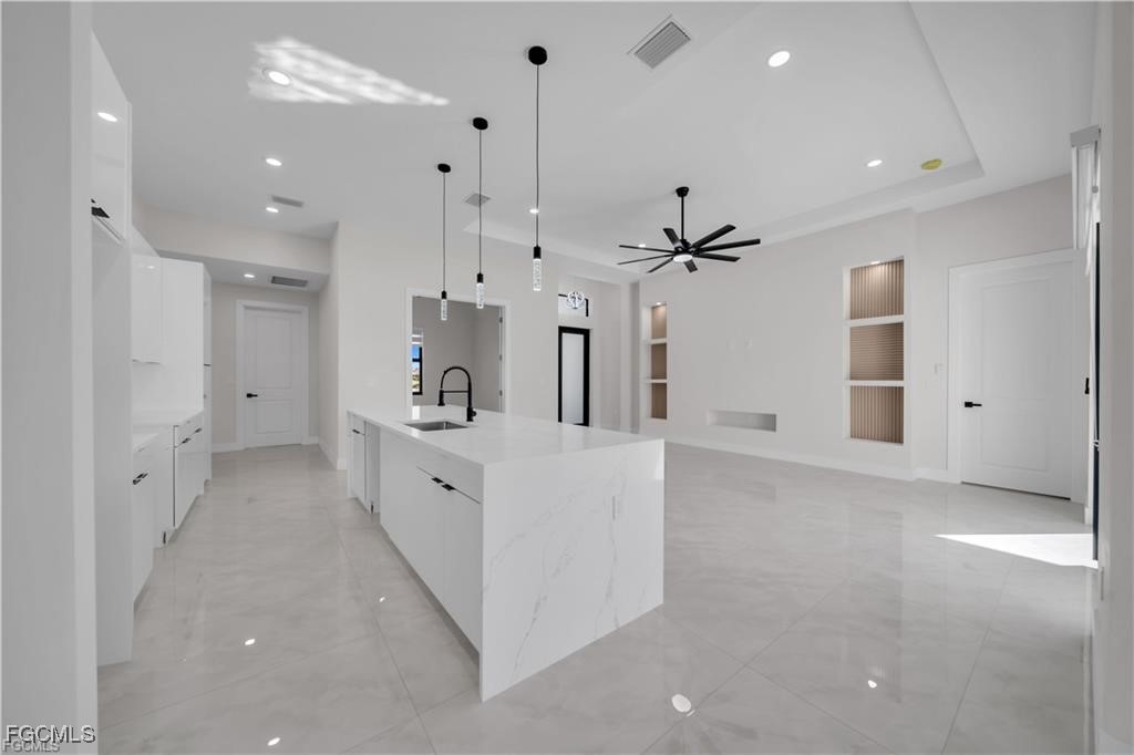 Welcome Home, this luxurious home is just finished. this stunning model is ideally located in a peaceful neighborhood, you will love this bright and beautiful single family home that features an open-concept floor plan 3 spacious bedrooms, plus den/office, and 2 full baths. Master features huge walk-in shower, closets and dual sink, stunning gourmet kitchen, appliances, very expanded lanai to gather family over the weekend, and beautiful zebra blinds.