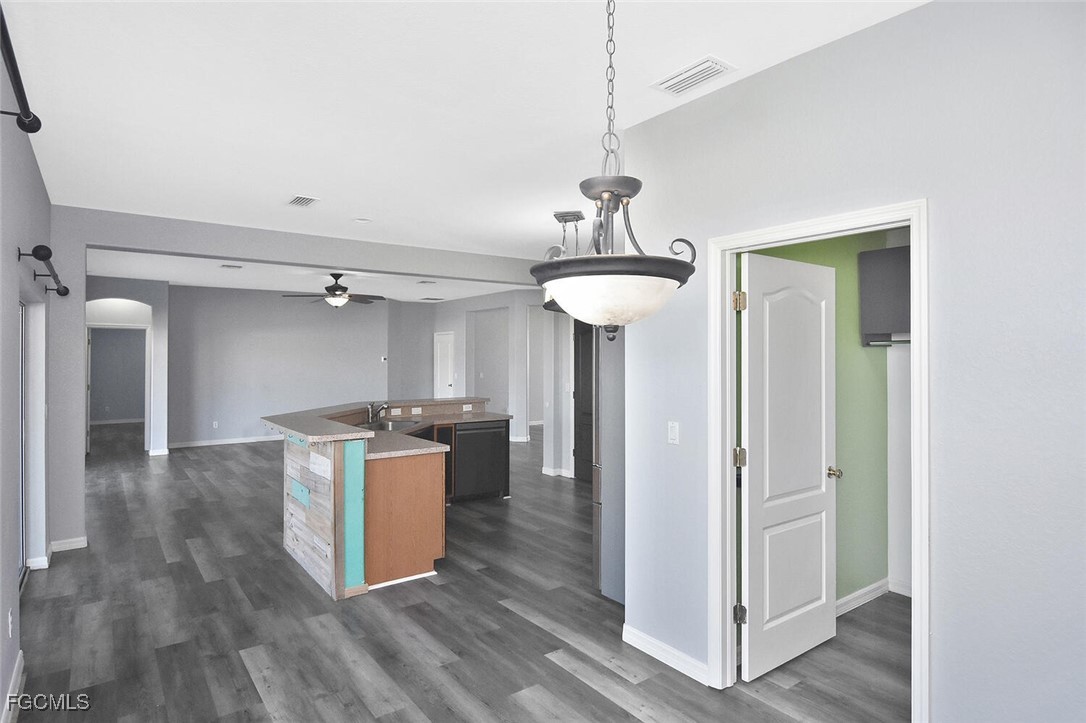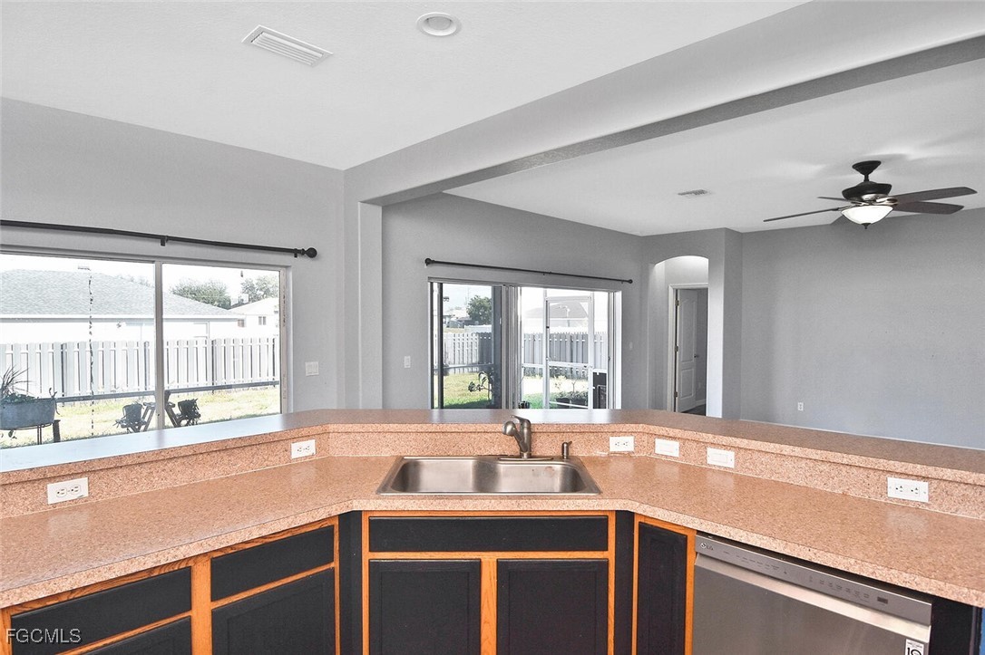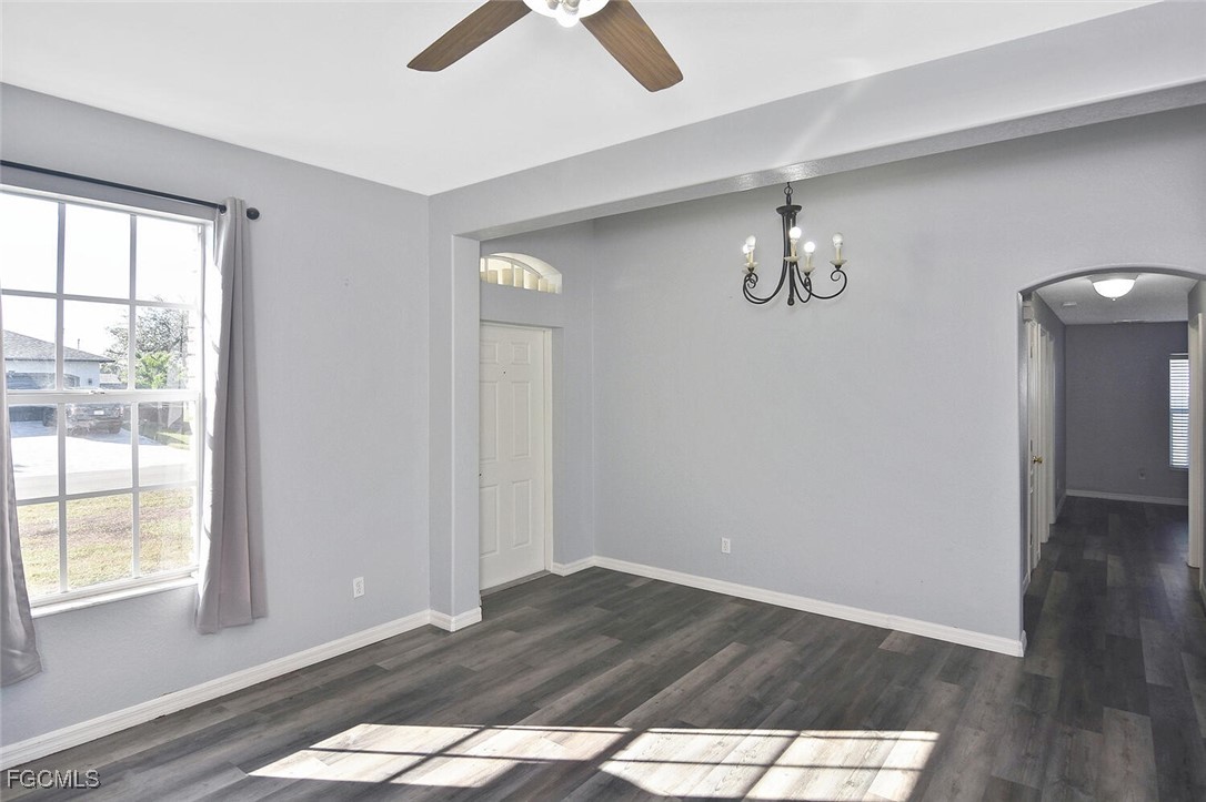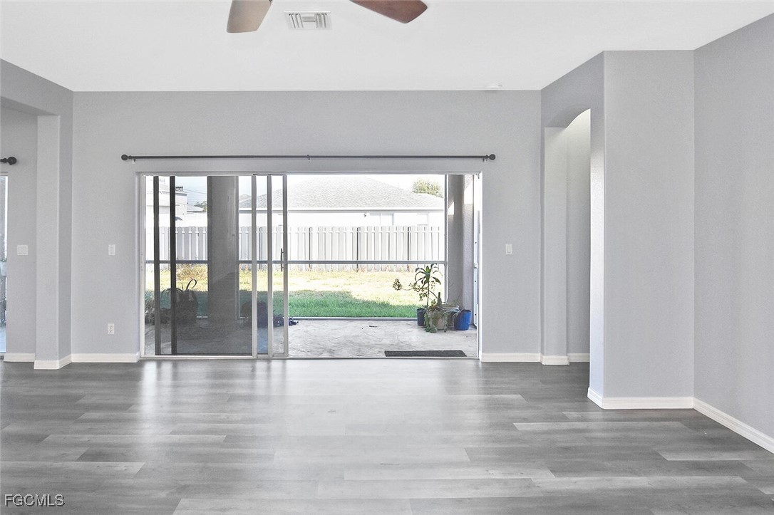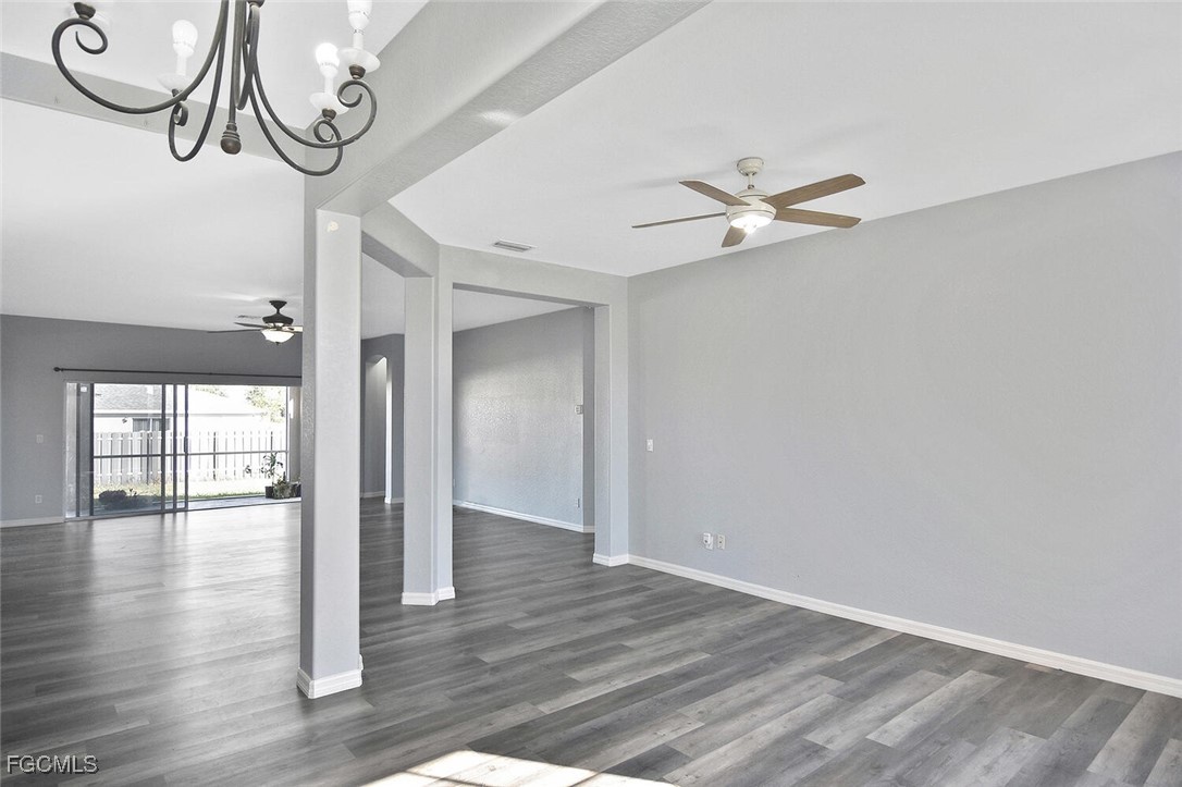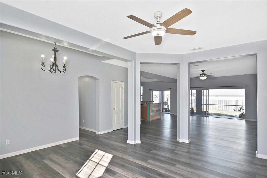 Amazing opportunity in NW Cape Coral! This beautifully updated 3-bedroom, 2-bath home is located in a non-flood zone (Zone X), where flood insurance is not required, and is connected to city water and sewer. The home features a desirable great-room floor plan with a spacious family room, formal dining area, and high ceilings. Luxury Vinyl Plank (LVP) flooring runs throughout, providing both style and durability. Enjoy generously sized bedrooms, abundant closet space, and excellent storage options.