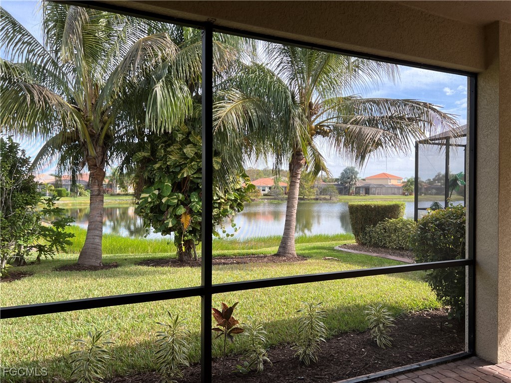 Pow! Your first impression is a spectacular view of calming water! Welcome! You immediately focus on peaceful rear water views, framed by a formal foyer. See arched openings, transom glass, arched niche, 14’ high coffered ceiling, sparking overhead chandelier & double doors to the side den. This very desirable, popular floor plan was designed for family & flexibility. It features 2 dining areas, split bedrooms, functional walk-thru kitchen with bar, inside laundry, & wrap-around screened lanai facing the water view. The view is framed by two mature miniature coconut palms, ripe with coconuts, a fruiting papaya tree, and herb garden. Strategic site planning results in privacy from adjacent neighbors. The 12’6” x 18’4” master bedroom looks out to a water view through angled walls & a 10’6”’ tray ceiling. The 3rd bedroom, den & 3rd bathroom can function as a secondary owner’s suite. Add optional laundry sink, shelves & hanging rod. Newer improvements in 2024 are a 3.5-ton 14 SEER air conditioning system with an “APCO fresh-aire UV” whole-house air purifier, a Culligan water softener, a Samsung microwave, a garage electric water heater & the HOA required irrigation “backflow preventer”. Be aware some homes have not yet made this required utility improvement. A Samsung dishwasher was installed in 2023. Screened entry allows cross ventilation from front to back & secure deliveries. White, accordion, manual hurricane shutters were added in 2013. Dual white-wire loft storage units were added in the garage ceiling, along with a kayak storage system with pulleys & ropes. Newer washer & dryer. Just one owner! The sellers purchased this GL Homes “Lilac” model in 2011 & upgrades were added during construction: higher 6” floor base molding, turned 45-degree, neutral square tile floor in the foyer, hall, kitchen, both dining areas & great room. A granite backsplash was added in kitchen under 42” high upper cabinets & 7 ceiling fans with lights. Std features of this model are high ceilings, arched openings, 8’ high white paneled doors, arched niches, tub, shower & sit-down vanity in master bath, window coverings, nickel hardware & pulls, wood cabinets, granite countertops, recessed medicine cabinets, security system & sliding glass doors to the screened lanai. NOT IN A FLOOD ZONE. Community assets are the very impressive Gatehouse Entry with mature landscaping, underground electric, street lighting, internet, landscape maintenance & connecting underground lakes allowing fishing. Buyer will transition from Comcast security system to ADT prior July 2026. Botanica Lakes is a thoughtfully planned community with manned gate 24 Hr/Day. See botanicalakeshoa.com for extensive community amenities, photos and info. Download all current HOA documents by clicking on the Sales & Leasing tab.