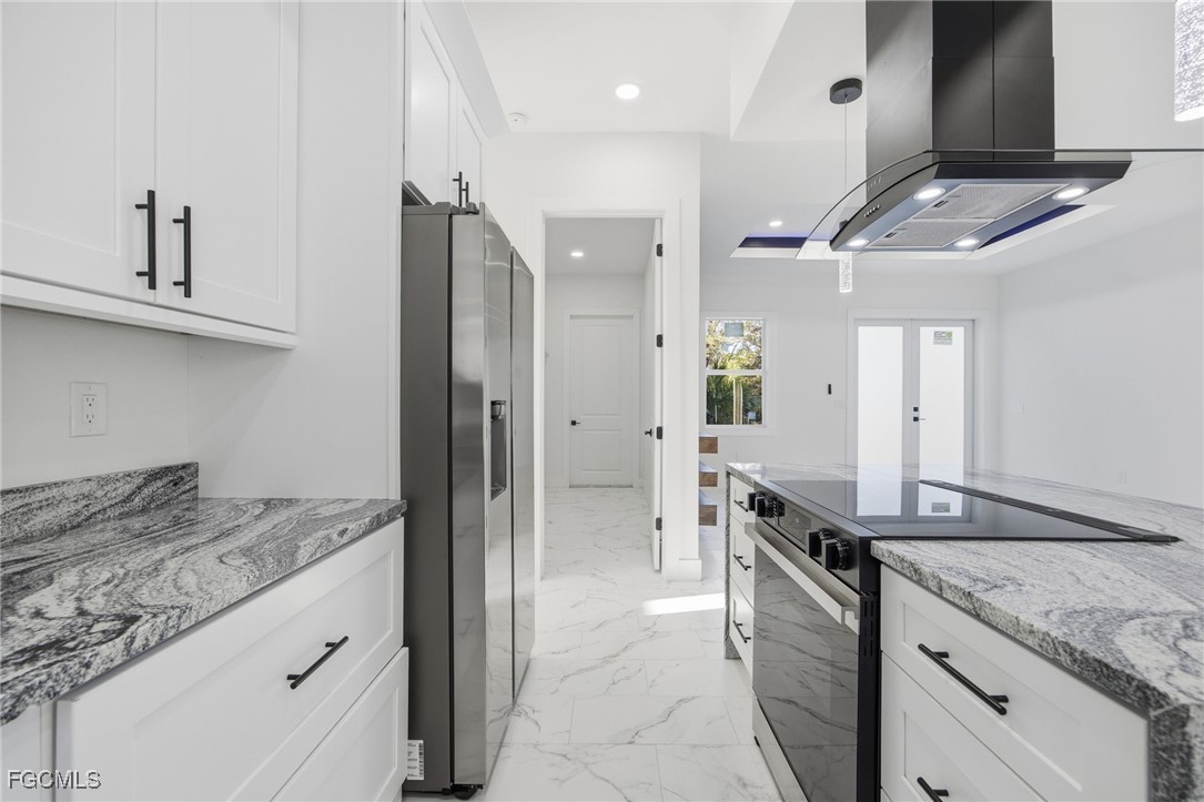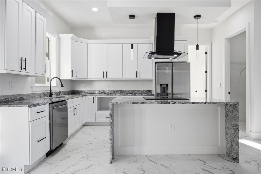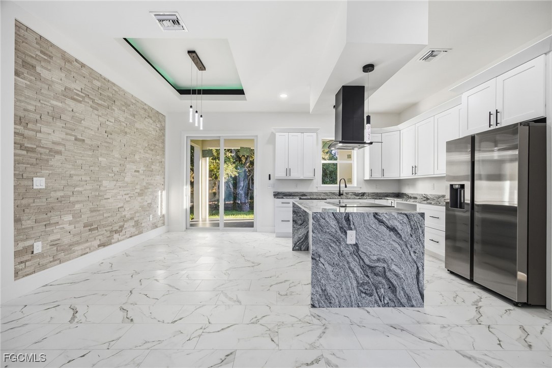 Welcome to your dream home in LaBelle! This stunning New single-family home boasts 3 bedrooms, 2 bathrooms, and a 2-car garage, providing ample space for you and your family. The interior features granite counters, stainless steel appliances, and tile flooring throughout, creating a modern and luxurious feel. The open floor concept allows for seamless flow between the kitchen, living, and dining areas, perfect for entertaining guests or spending quality time with loved ones. The French Doors entrance and tray ceiling add an elegant touch to the space, while the modern bathroom and dining accent wall add a pop of style. Step outside to your own outdoor kitchen with a built-in grill, perfect for hosting summer barbecues or enjoying a quiet evening under the stars. The built-in entertainment system is ideal for movie nights or watching the big game with friends. And with a durable metal roof, you can rest easy knowing your home is built to last. Don't miss out on this incredible opportunity to own a beautiful and functional home in LaBelle. Schedule a showing today and make this your forever home!