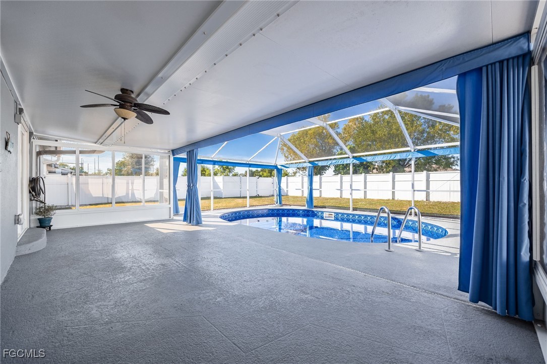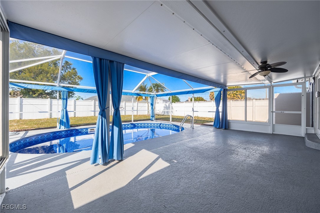 This beautifully updated three-bedroom, two-bath pool home is located in a wonderful neighborhood close to schools and shopping. The meticulously maintained home features tile flooring throughout, new granite countertops, and newer kitchen appliances. Major updates include a shingle roof (2018), impact windows and sliders (2014), insulated garage door with opener (2020), hot water heater (2021), HVAC system (2023), and a new pool liner (2025). The fully fenced backyard offers privacy fencing and a spacious pool area with double sliders and custom curtains for added privacy. The primary bathroom has been renovated with a new shower, vanity, vanity top, mirror, and lighting, while the guest bathroom includes an updated pedestal sink and soaking tub. An inside laundry room with new washer and dryer completes this move-in-ready home. Grocery and shopping is only minutes away!