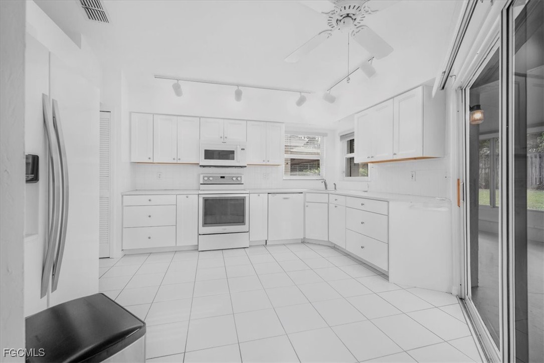 Full Kitchen remodel with quartz tops, pantry & new dishwasher 2025, New interior paint 2025, Main Bath completely remodeled with double high-top sink vanity & walk in shower 2022, Lanai A/C 2025, this property offers a wide-open floor plan, vaulted ceilings, tile floors, large porch lanai Florida sun room area, 2 car garage, private rear yard, auto sprinklers, close to I-75, airport & the Miromar Shopping outlets, Country Creek offers great amenities including an 18 hole golf course, tennis courts, bocce courts, bike paths, community center & a beautiful community pool, this is a must see home for condition & location!!!