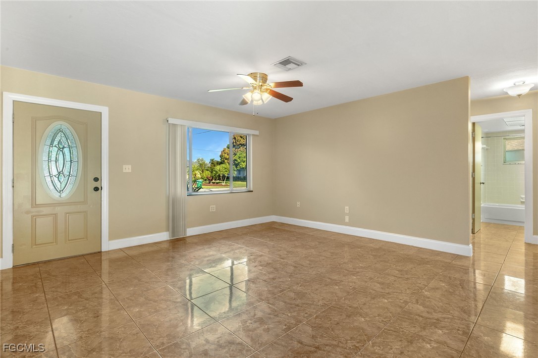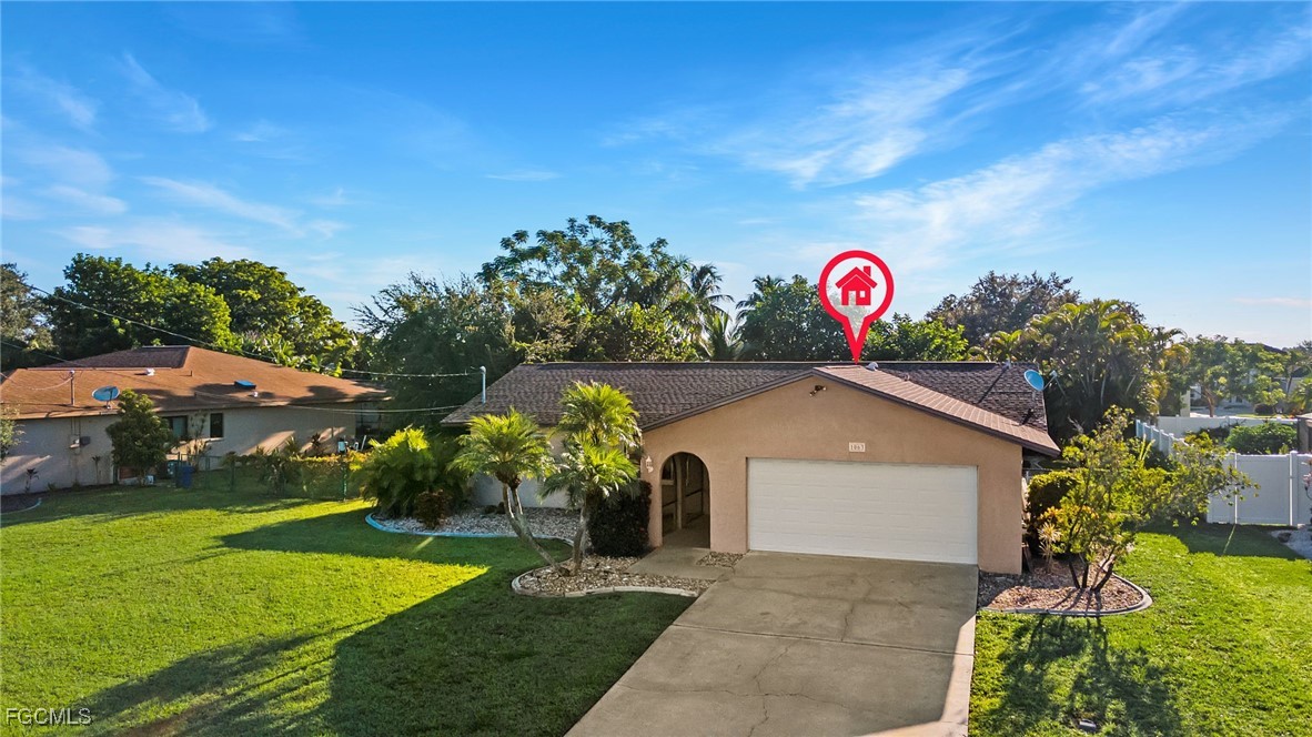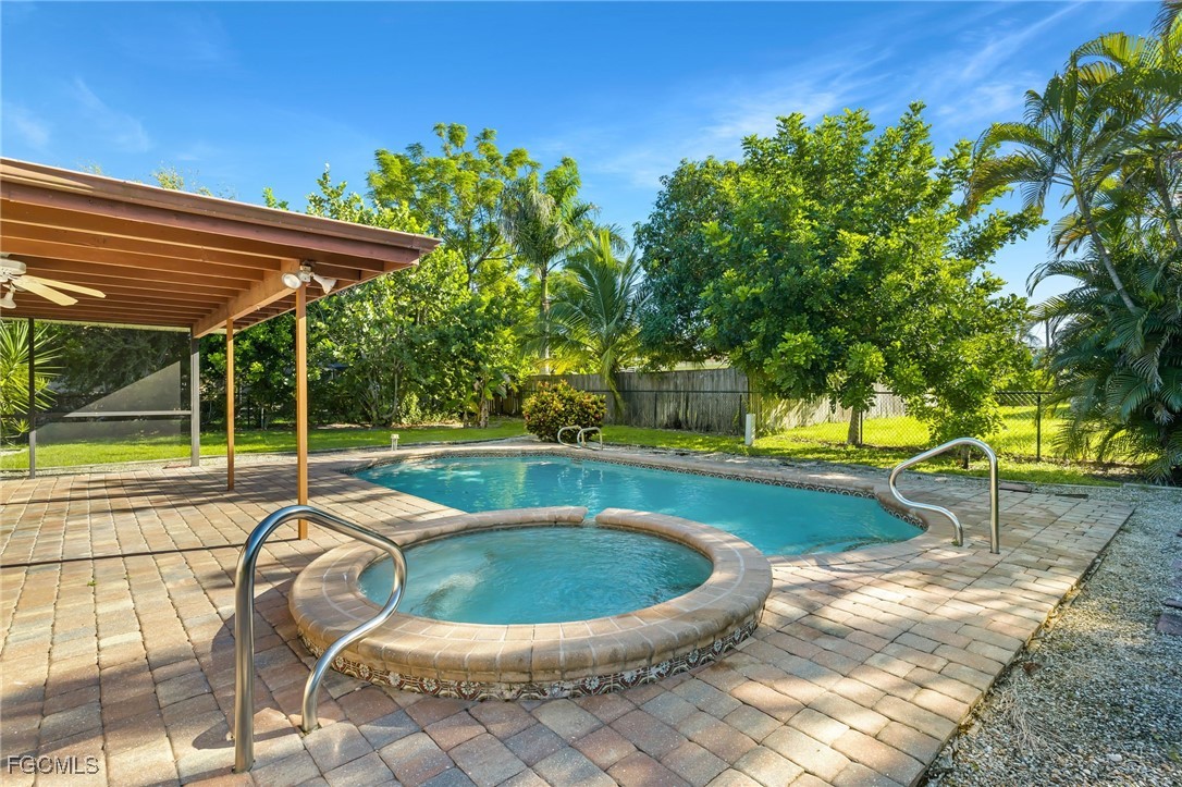 Pool home in SE Cape - Nice outdoor living space - GREAT neighborhood! Pet friendly with large fenced yard. Beautiful Terracotta TILE Floors - no carpet. Kitchen has Pantry and Corian Countertops and Breakfast Bar and Pass Thru to Lanai. Patio doors open to Covered Lanai and Pool (pool has a water feature - this is NOT a Hot Tub). Great sized bedrooms with large closets - Master has a large WalkIn Closet. Hall Linen for extra Storage. Great central location!!! PROPERTY HAS never flooded! NEW ROOF & GUTTERS 2023, AC 2018, Water Heater 2022, New Electric Panel, New Exterior Paint 2025. ASSESSMENTS PAID IN FULL