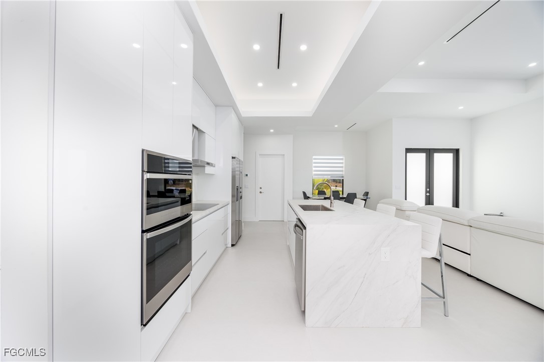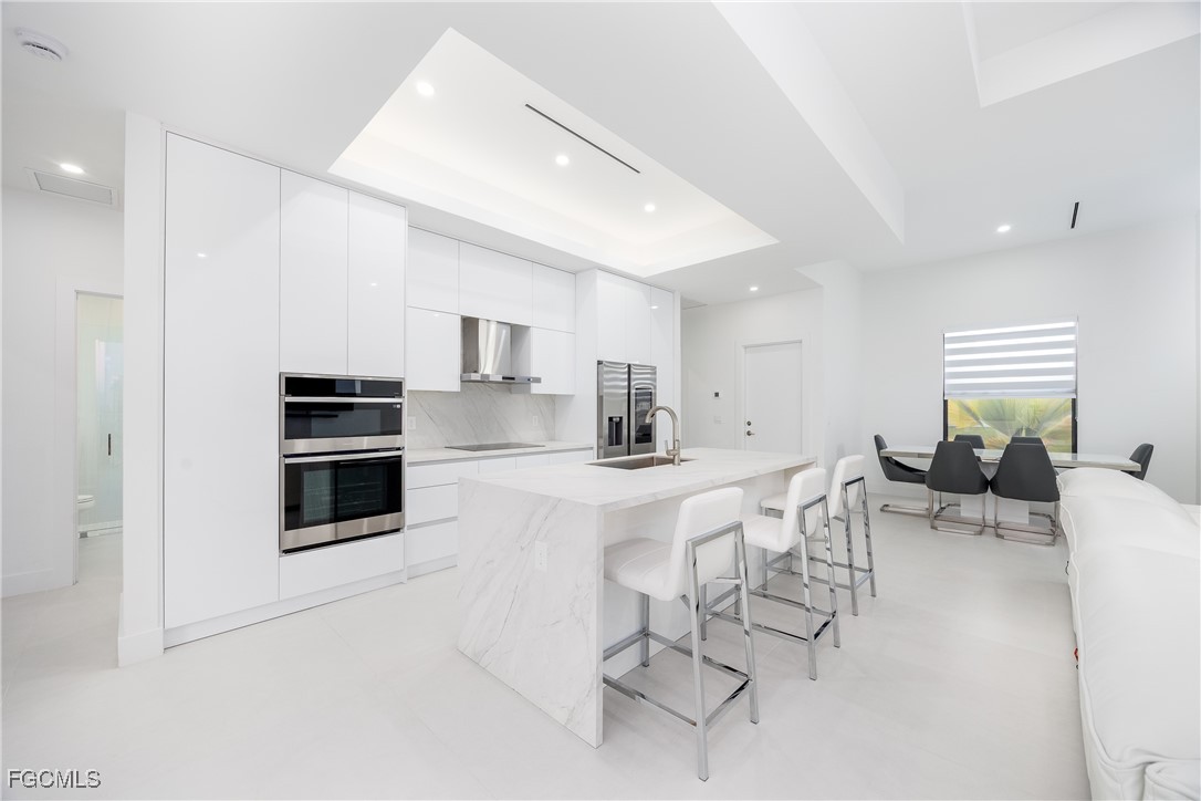 Step into luxury with this beautifully crafted 3 bedroom, 2 bath home, designed with an open concept layout and premium European finishes throughout. At the heart of the home is a show-stopping gourmet kitchen, featuring custom 100% wood Italian cabinetry, smart stainless steel appliances, and a massive, oversized island topped with 100% porcelain stone a true chef’s dream. The expansive great room flows seamlessly into the dining area and features a versatile nook, perfect for a home office or cozy entertainment corner. Retreat to the master suite, where the bathroom serves as a private spa complete with a soaking tub, walk-in shower, and marble dual vanities. No detail has been overlooked, from the soaring high ceilings and custom Italian-style doors to the European built-in closets. The property offers exceptional utility, including a double car garage, an outdoor reverse osmosis water system, and a dedicated storage room already permitted for a half-bath offering instant equity potential. Enjoy your evenings on the patio equipped with ceiling fans for year-round comfort. This home truly has it all.