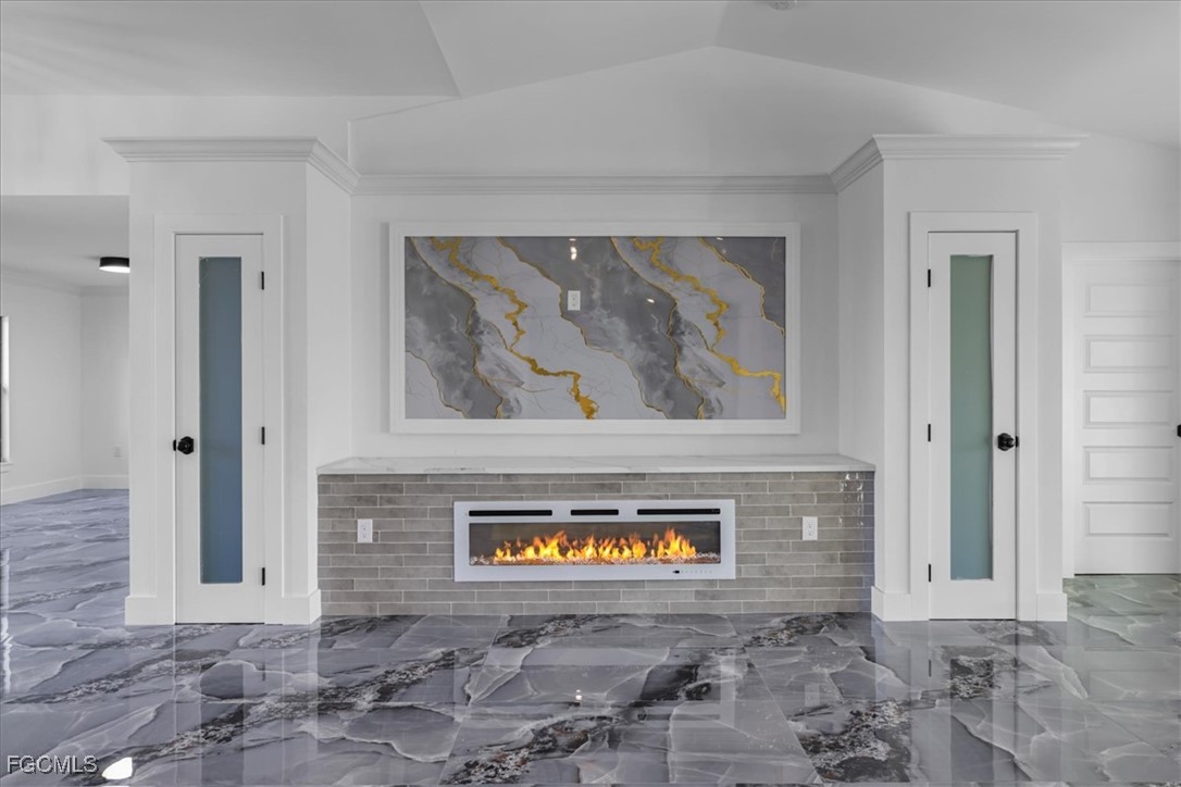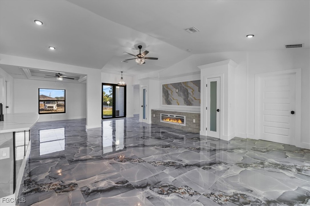 STUNNING NEW HOME on a prime corner lot. Featuring 4 spacious bedrooms plus a den, this home offers plenty of space for family, work, or guests. Porcelain floors run throughout the entire home, complemented by modern ceiling fans and lighting. The living room includes a cozy fireplace, perfect for relaxing. The kitchen is a chef’s dream, with a large island, stainless steel appliances, and a fill pot sink, ideal for cooking and entertaining. Impact doors and windows add style, security, and energy efficiency throughout the home. The master suite is a private retreat, with a spa-style bathroom featuring a hydromassage shower, wall-mounted European toilet, and a vanity for makeup.
