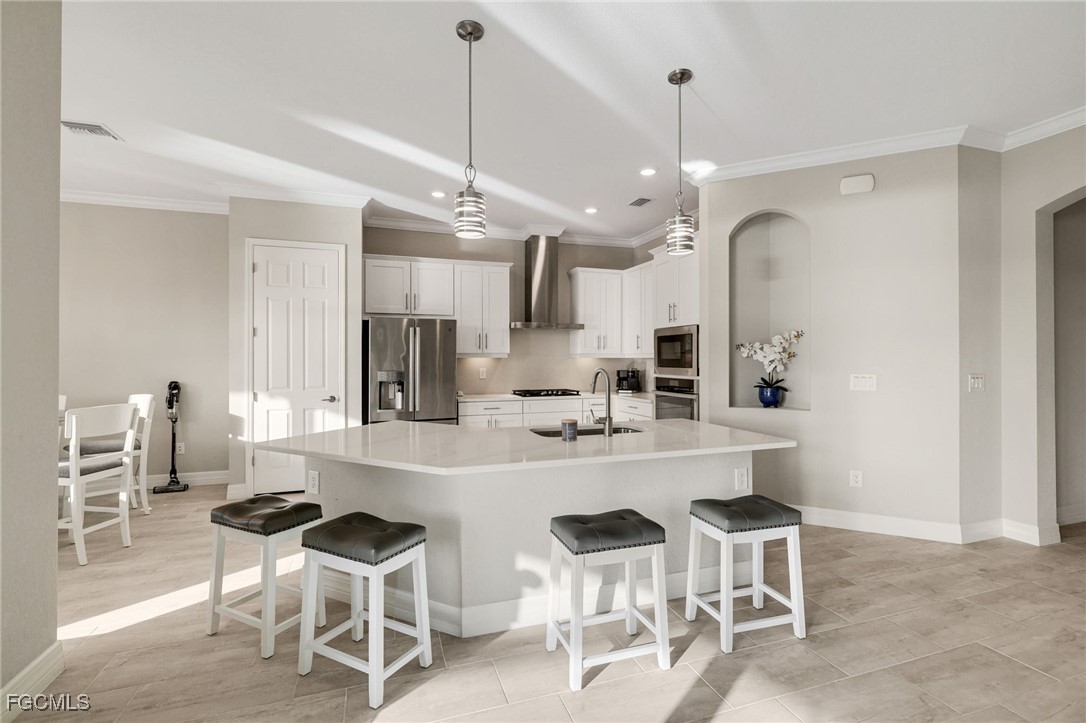 Experience the best of Southwest Florida sunsets from 13504 Blue Bay Cir, an immaculate pool and spa home facing directly west over the widest part of the 225-acre boatable Lake Vista! This four bedroom, 2 bathroom home features 2,251sqft of luxurious, open-concept, coastal-themed living space. Offered turnkey furnished with decorations and amenities included, you can move in the day you close without skipping a beat! The glass front door opens directly into the great room consisting of a semi-formal dining area, living room, massive island kitchen, and breakfast nook. Sliding glass doors, windows, and French doors provide abundant natural light throughout the main living areas. Separated from the other bedrooms, the master suite features a tray ceiling, large windows, French door, oversized walk-in closet, and a spacious bathroom with dual vanities, a soaking tub, and a walk-in frameless glass shower. The large covered lanai offers plenty of shaded space for true Florida-style indoor and outdoor living overlooking the pool, spa, and lake. The pool and spa are heated with individual controls and surrounded by a 50ft-wide screened pool deck with space for both lounging and dining furniture. This lot allows for construction of a private boat dock and/or lift, jet ski floating docks, kayak racks, and more, and is already prewired for electric at the shore. The three-car garage provides room for vehicles, a golf cart, storage, or even a home gym. Key home features include porcelain plank tile in the main living areas, soft-close solid wood shaker-style cabinetry throughout, quartz countertops, built-in gourmet kitchen with stainless steel appliances and a gas cooktop, tray ceilings, crown molding, window treatments, and more. WildBlue's amenity peninsula provides panoramic views of WildBlue Lake and features a resort-style pool, separate lap pool, sandy lakeside beach, fitness center with studios, locker rooms with saunas, spa, a full-service restaurant and bar, poolside bar and grill, tennis and pickleball courts, a pro shop, basketball, boat ramps to over 800 acres of freshwater lakes, boat slip rentals, kayak storage, and more. If you crave amazing sunsets, incredible lake views, and luxury resort-style living at an unheard-of value, schedule your private showing today!
