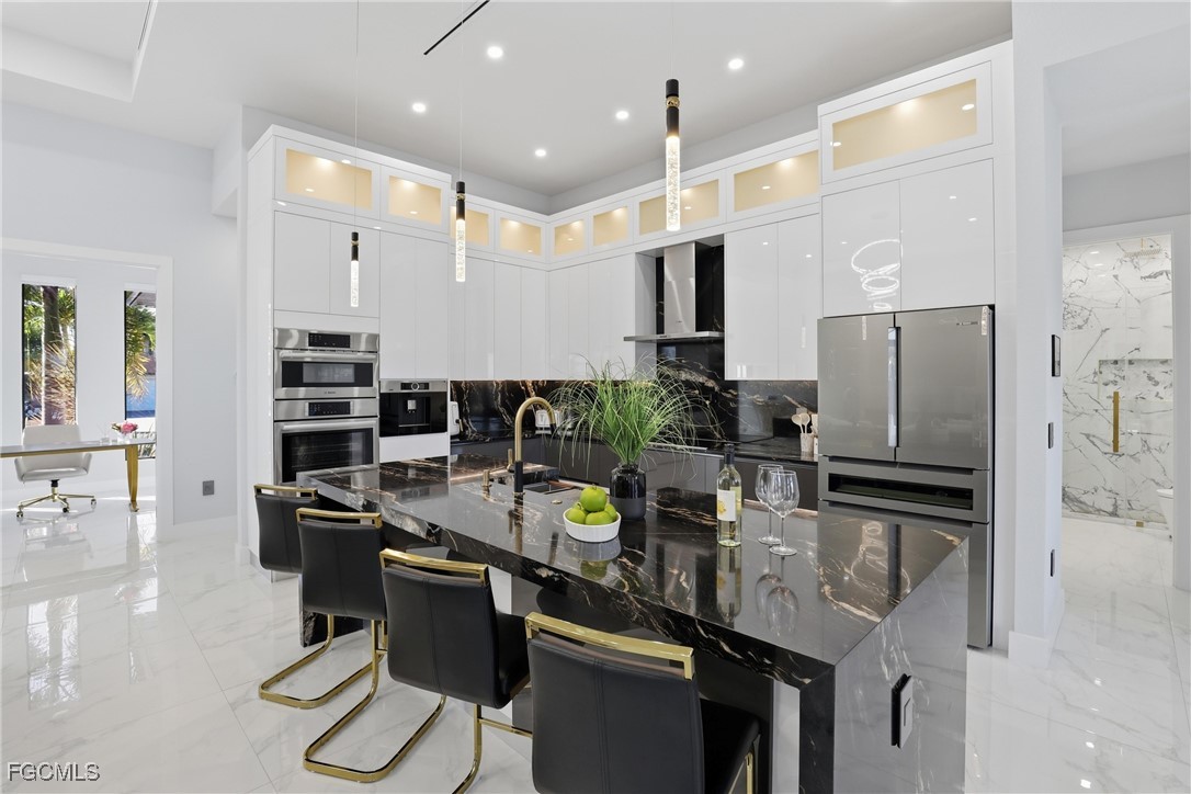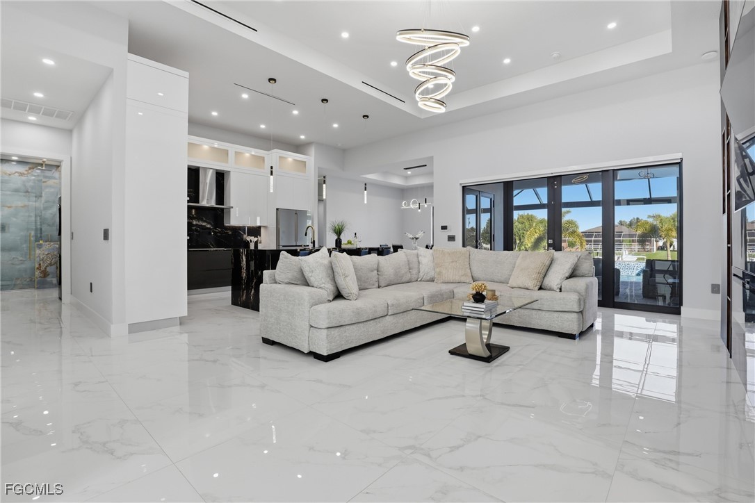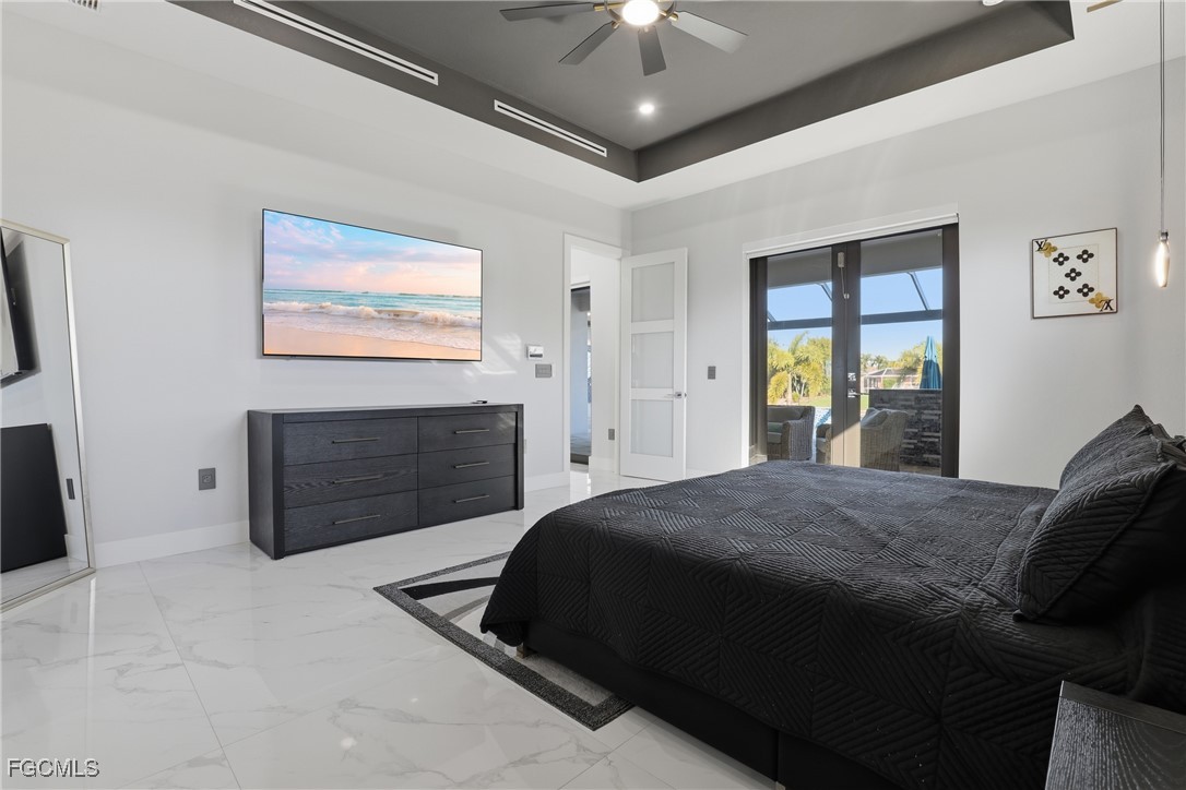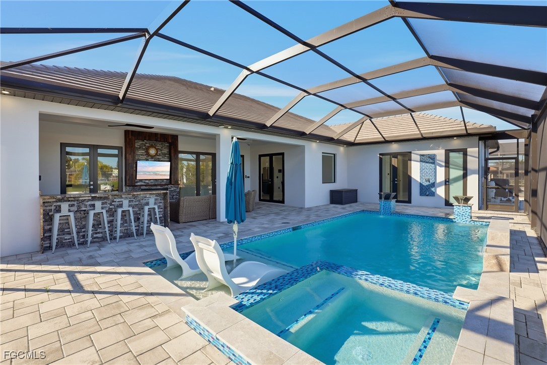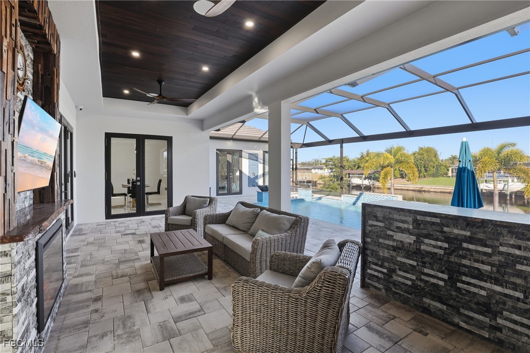 THIS is not your typical new construction home. Built as a CUSTOM GULF-ACCESS RESIDENCE, this property was designed with intention, upgrades, and functionality you rarely find all in one place. This home also comes TURNKEY FURNISHED, move-in ready, with potential for short-term rental income or use as a vacation home, perfect for investors or anyone looking for a ready-to-enjoy Gulf-access retreat. One of its most standout features is the RARE TWO-SUITE LAYOUT, with both the PRIMARY SUITE and SECONDARY SUITE offering pool access, ideal for guests, multigenerational living, or a private work-from-home setup. The open-concept design is filled with natural light, porcelain tile throughout, and 10–14’ CEILINGS that elevate the entire space. At the center of the home is a CHEF-INSPIRED KITCHEN featuring custom cabinetry, exotic granite countertops, a large island, and HIGH-END BOSCH STAINLESS-STEEL APPLIANCES. The living area is anchored by a striking MEDIA WALL with an 80” ELECTRIC FIREPLACE and TVs IN EVERY ROOM, blending modern style with everyday comfort. This home is packed with SMART, TECH-FORWARD FEATURES, including a full SECURITY SYSTEM with cameras and intercom, designed for on-site monitoring, motorized blinds, smart toilets, Hansgrohe fixtures, and is WIRED FOR AN EV CHARGING STATION FOR YOUR CONVENIENCE. Step outside to a true WATERFRONT OASIS, complete with pool, spa, fireplace, and a fully equipped outdoor kitchen. The pool features THREE WATERFALL FEATURES, a luxurious pool bath, and a sound system that connects to the lanai, perfect for entertaining. There’s even a GRASS AREA for your kids, grandkids, or pets to roam, a rare feature for canal-front homes. With GULF ACCESS, enjoy easy boating to the waterways, islands, and coastal destinations that make Southwest Florida so special. Conveniently located near shopping and dining, about 15–20 minutes across the bridge to Fort Myers, and approximately 40 minutes to Fort Myers Beach, this home offers a level of DESIGN, TECHNOLOGY, LIFESTYLE, AND CONVENIENCE that’s rarely available. YOU WON’T FIND THIS COMBINATION ANYWHERE ELSE.