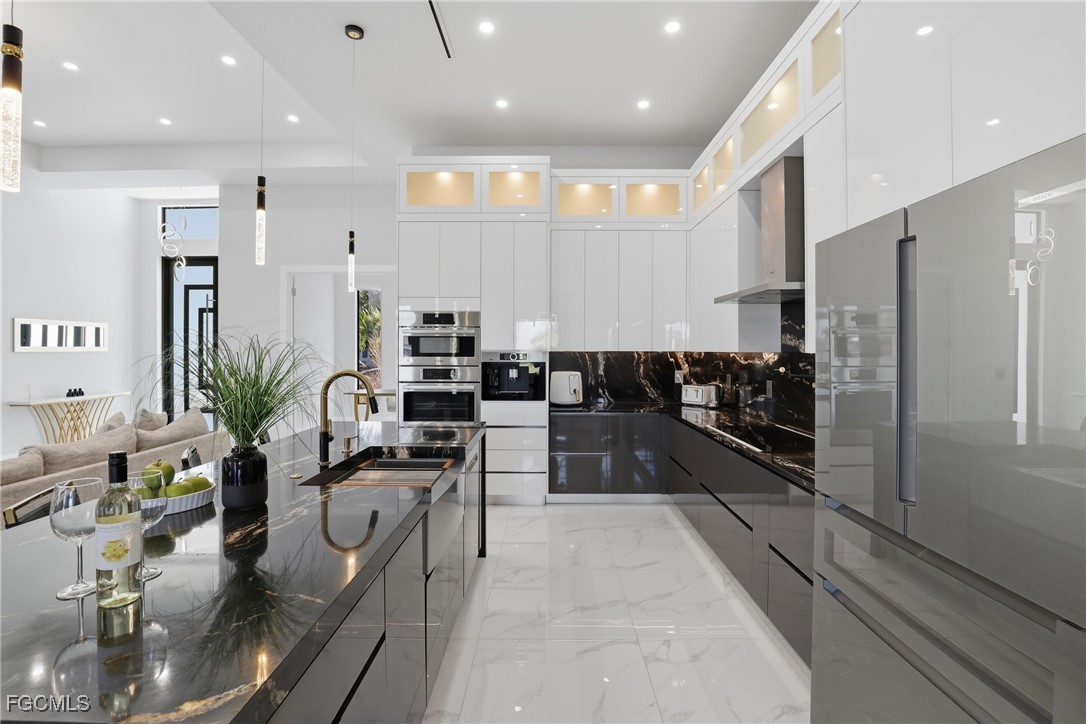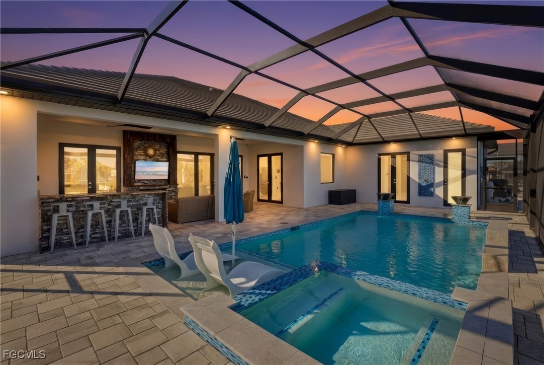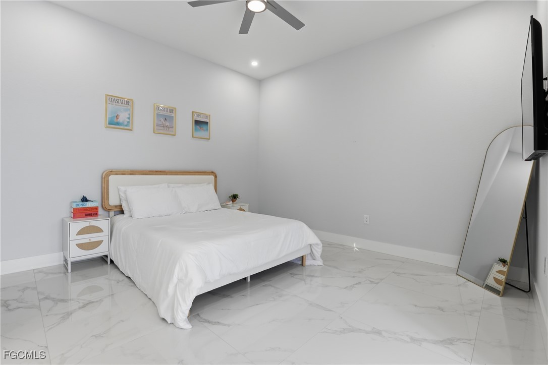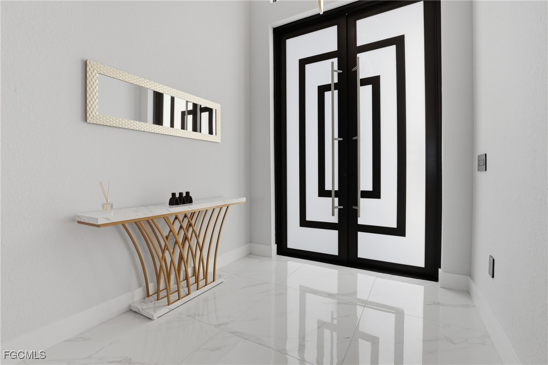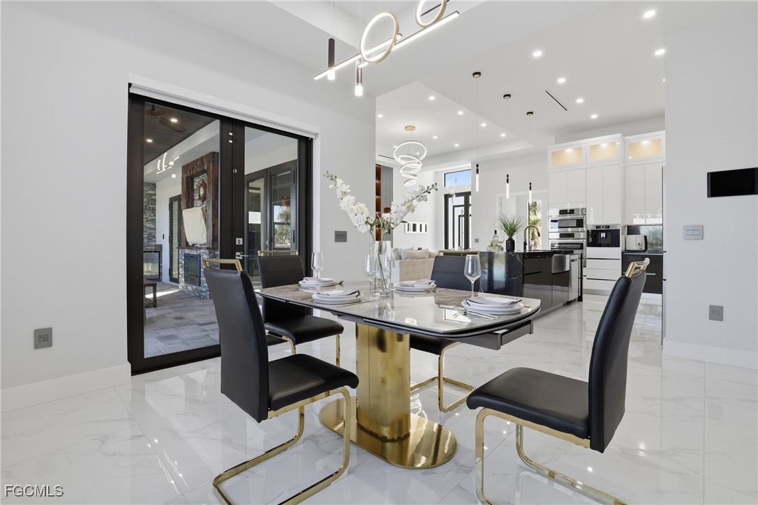 THIS is not your typical new construction home. Built as a CUSTOM GULF-ACCESS RESIDENCE, this property was designed with intention, upgrades, and functionality you rarely find all in one place. This home also comes TURNKEY FURNISHED, move-in ready, with potential for short-term rental income or use as a vacation home, perfect for investors or anyone looking for a ready-to-enjoy Gulf-access retreat. One of its most standout features is the RARE TWO-SUITE LAYOUT, with both the PRIMARY SUITE and SECONDARY SUITE offering pool access, ideal for guests, multigenerational living, or a private work-from-home setup. The open-concept design is filled with natural light, porcelain tile throughout, and 10–14’ CEILINGS that elevate the entire space. At the center of the home is a CHEF-INSPIRED KITCHEN featuring custom cabinetry, exotic granite countertops, a large island, and HIGH-END BOSCH STAINLESS-STEEL APPLIANCES. The living area is anchored by a striking MEDIA WALL with an 80” ELECTRIC FIREPLACE and TVs IN EVERY ROOM, blending modern style with everyday comfort. This home is packed with SMART, TECH-FORWARD FEATURES, including a full SECURITY SYSTEM with cameras and intercom, designed for on-site monitoring, motorized blinds, smart toilets, Hansgrohe fixtures, and is WIRED FOR AN EV CHARGING STATION FOR YOUR CONVENIENCE. Step outside to a true WATERFRONT OASIS, complete with pool, spa, fireplace, and a fully equipped outdoor kitchen. The pool features THREE WATERFALL FEATURES, a luxurious pool bath, and a sound system that connects to the lanai, perfect for entertaining. There’s even a GRASS AREA for your kids, grandkids, or pets to roam, a rare feature for canal-front homes. With GULF ACCESS, enjoy easy boating to the waterways, islands, and coastal destinations that make Southwest Florida so special. Conveniently located near shopping and dining, about 15–20 minutes across the bridge to Fort Myers, and approximately 40 minutes to Fort Myers Beach, this home offers a level of DESIGN, TECHNOLOGY, LIFESTYLE, AND CONVENIENCE that’s rarely available. YOU WON’T FIND THIS COMBINATION ANYWHERE ELSE.