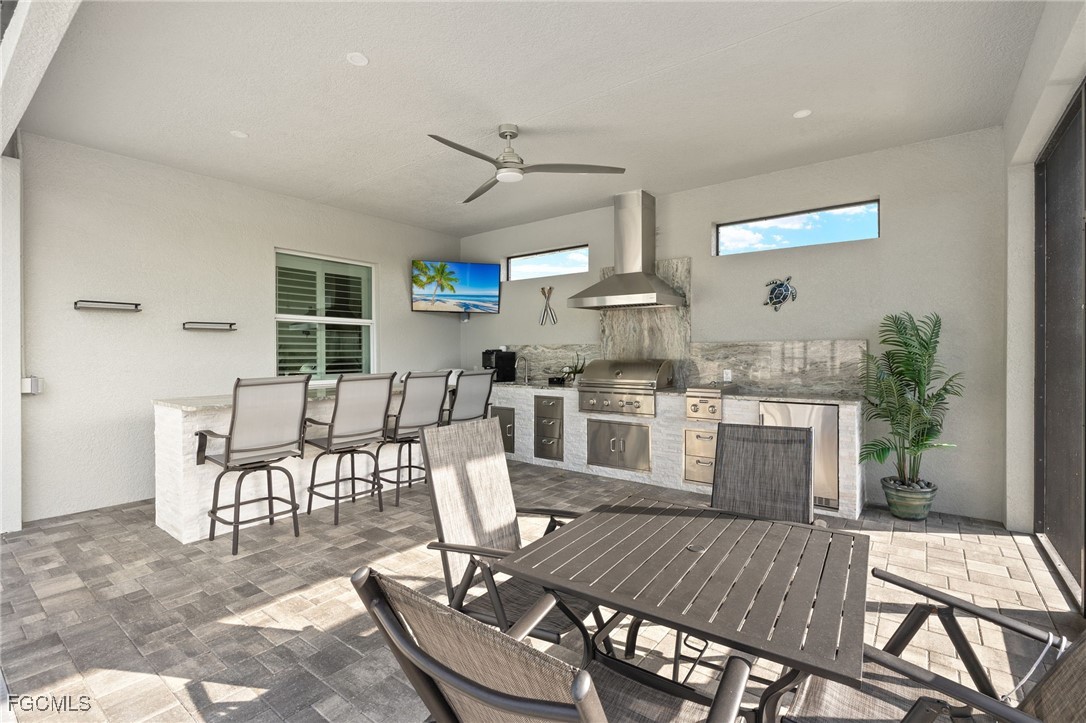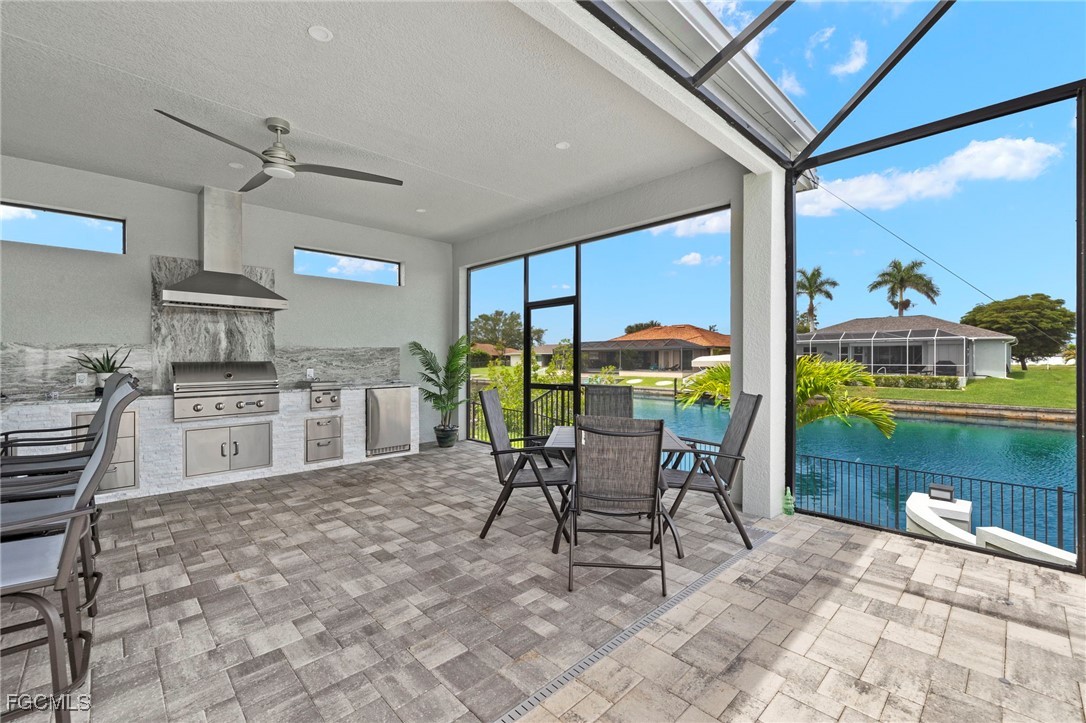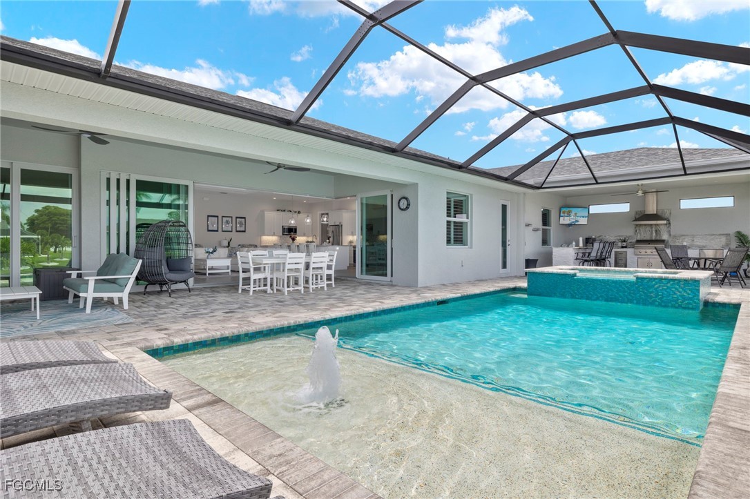 Gulf Access Luxury Pool Home | 3 Bedrooms + Den | 3-Car Garage | Fully Furnished This 2022 custom-built Gulf access pool home captures the essence of Florida waterfront living with a perfect balance of luxury and comfort. Situated on the 95-ft-wide Courtney Canal in the desirable Pelican neighborhood, it offers quick boating access, peaceful kayaking at sunset, and a private backyard oasis for year-round relaxation. From the moment you arrive, you’ll be impressed by the wide paver driveway, tropical landscaping, and coastal-modern façade. Inside, soaring tray ceilings, plank tile flooring, and zero-corner sliders create seamless indoor-outdoor living. Natural light fills the open floor plan, showcasing designer finishes and exceptional craftsmanship throughout. The chef’s kitchen is a true showpiece, featuring a massive center island, granite countertops, stainless steel appliances, walk-in pantry, and casual bar seating perfect for entertaining. The private primary suite offers lanai access, dual walk-in closets, and a spa-inspired ensuite with dual vanities, a makeup counter, private water closet, and an oversized walk-in shower with beautiful tile details. Two additional bedrooms and a versatile den provide flexible space for guests or a home office. The outdoor area is the heart of this home, offering a screened lanai that feels like your own private resort. Enjoy a heated saltwater pool and spa with Bluetooth smart controls, an outdoor kitchen with built-in grill and bar island, dual outdoor TVs, and an electric fireplace for cozy evenings under the stars. Just beyond, a custom wood-burning firepit overlooks the canal—perfect for gatherings or quiet nights by the water. Additional highlights include an air-conditioned 3-car garage, impact-rated windows and doors, city utilities paid in full, and no flood insurance required. Located minutes from Cape Coral’s best dining, shopping, and entertainment, and a short drive to Fort Myers Beach, Sanibel Island, and the Cape Coral Yacht Club, this home is ideal as a full-time residence or a high-performing vacation rental. Every detail has been thoughtfully designed to deliver an unparalleled coastal living experience. If you’ve been waiting for a one-of-a-kind Gulf access property that truly checks every box, this is the one.