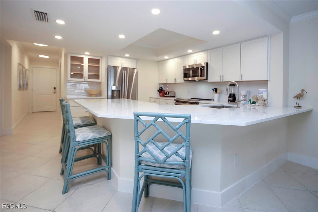 Imagine waking up to the sound of waves and uninterrupted Gulf views in this thoughtfully renovated Sanibel Island beachfront condo. Designed for relaxed coastal living, this three-bedroom, two-bath condo offers light-filled interiors and seamless indoor-outdoor flow to a screened lanai overlooking the water. Just steps away, a pristine sandy beach invites swimming, shelling, and sunset strolls. The stylish kitchen has been fully updated with quartz countertops, premium appliances, and clean, modern finishes. The owner’s suite is a peaceful retreat with lanai access and a spa-inspired bathroom, while two additional rooms easily adapt for guests or a home office. Added conveniences include washer and dryer, private storage, a heated community pool, and tennis and pickleball courts. Beautiful Sanibel Island—celebrated for its natural beauty, outdoor recreation, and laid-back charm This condo delivers excellent rental income and an exceptional Gulf-front lifestyle.