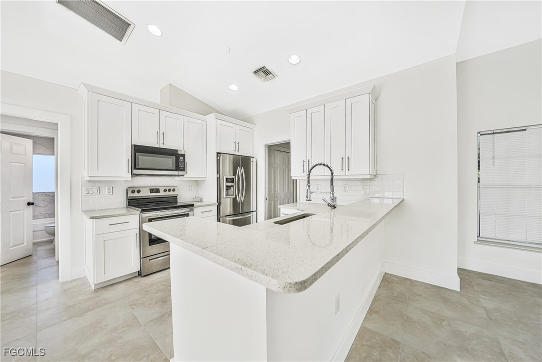 Welcome to this beautifully maintained 3 Bed 2 Bath 2 Car garage single family home located in the heart of Southwest Cape Coral, one of the area’s most desirable neighborhoods. This property offers the perfect blend of comfort, functionality, and the Florida lifestyle. Step inside to discover a bright, open floor plan with spacious living areas, ideal for both everyday life and entertaining. Upgrades include tile throughout, fresh paint, garage floor coating, stainless appliances, solid surface counters, remodeled bathrooms and much more!!! The kitchen flows seamlessly into the main living space, offering ample cabinetry and counter space for cooking and gathering. Generously sized bedrooms provide comfort and privacy, while the primary suite serves as a relaxing retreat at the end of the day. Enjoy the Florida sunshine in the outdoor space, perfect for morning coffee, weekend barbecues, or future customization to suit your lifestyle. Situated on a quiet residential street, this home offers peace and privacy while remaining conveniently close to shopping, dining, schools, and major roadways. Whether you’re looking for a full-time residence, seasonal getaway, or investment opportunity this is a fantastic opportunity to own a home in a growing and vibrant community. Schedule your private showing today and experience all that Southwest Cape Coral has to offer!