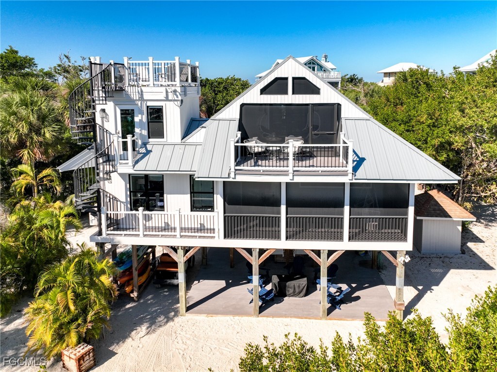 Fully Remodeled North Captiva Island Harbor View Haven with Dock, Club Amenities & Timeless Island Charm! There’s something special about arriving by water, tying up at your own dock, and knowing you’re home. 341 Spanish Gold Lane is a fully renovated waterfront retreat where coastal charm meets modern peace of mind - designed for effortless island living and unforgettable days on the water. Set along a tranquil natural canal, this home with 4 sleeping rooms and 2 baths has been thoughtfully transformed from top to bottom. Nearly every room captures calming views across the canal and harbor toward Pine Island Sound, creating a constant connection to the water. Recent upgrades include impact-rated windows, a new metal roof, new exterior decks and railings, a whole-house RO system, and a beautifully remodeled interior that’s professionally decorated & move-in ready. The open-concept living level is anchored by a custom-designed kitchen - a true gathering place. A full wall of windows frames the water beyond the expansive screened porch, while elegant cabinetry, generous storage, and a breakfast bar make entertaining effortless. Whether it is casual mornings or sunset dinners, this space was designed for relaxation. Upstairs, the primary suite feels like a private sanctuary, complete with a walk-in closet, a spa-style bath with a custom-tile shower, and both a screened/covered porch and a sunny waterside deck - perfect for spotting manatees gliding by. Two additional guest rooms include a refined harbor-view sleeping room and a custom-built bunk room that sleeps five, ideal for hosting family and friends. Just off the screened dining porch, the charming “lighthouse room” has its own entrance and can be used as a 4th sleeping space, an office, or an artist’s studio. Climb one more level, and you’ll find the ultimate sunrise-to-sunset deck, where stargazing comes naturally, and the sound of the sea fills the night air. Outside, the home continues to impress. Your private dock provides a protected harbor for your vessel. At the same time, nearby outdoor amenities create a true island playground - an outdoor bar with swing seats & a cozy fire table lounge, kayak storage, beach gear storage, enclosed outdoor shower, and more. Everything you need for life on the water is already here. As a member of the Safety Harbor Club, this property includes full access to a community pool, tennis & pickleball courts, waterfront restaurant, beach access, and additional dockage for guest boats—bringing resort-style convenience right to your doorstep. This is the kind of home you don’t just visit… You arrive at. A rare, Gulf-access island retreat where thoughtful upgrades, harbor view living, and relaxed luxury come together seamlessly. At 341 Spanish Gold Lane, you don’t chase the island lifestyle - you sail straight into it. If you have been looking for a fully remodeled waterfront home with views and dockage at a lower price point, this special home is a must see!
