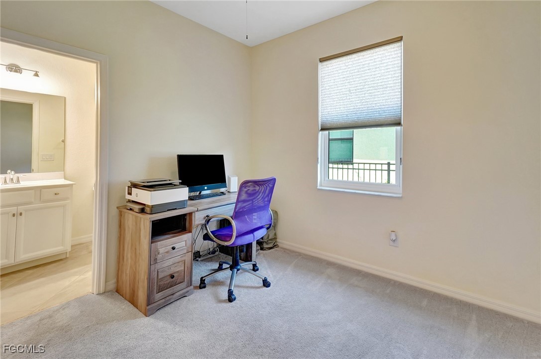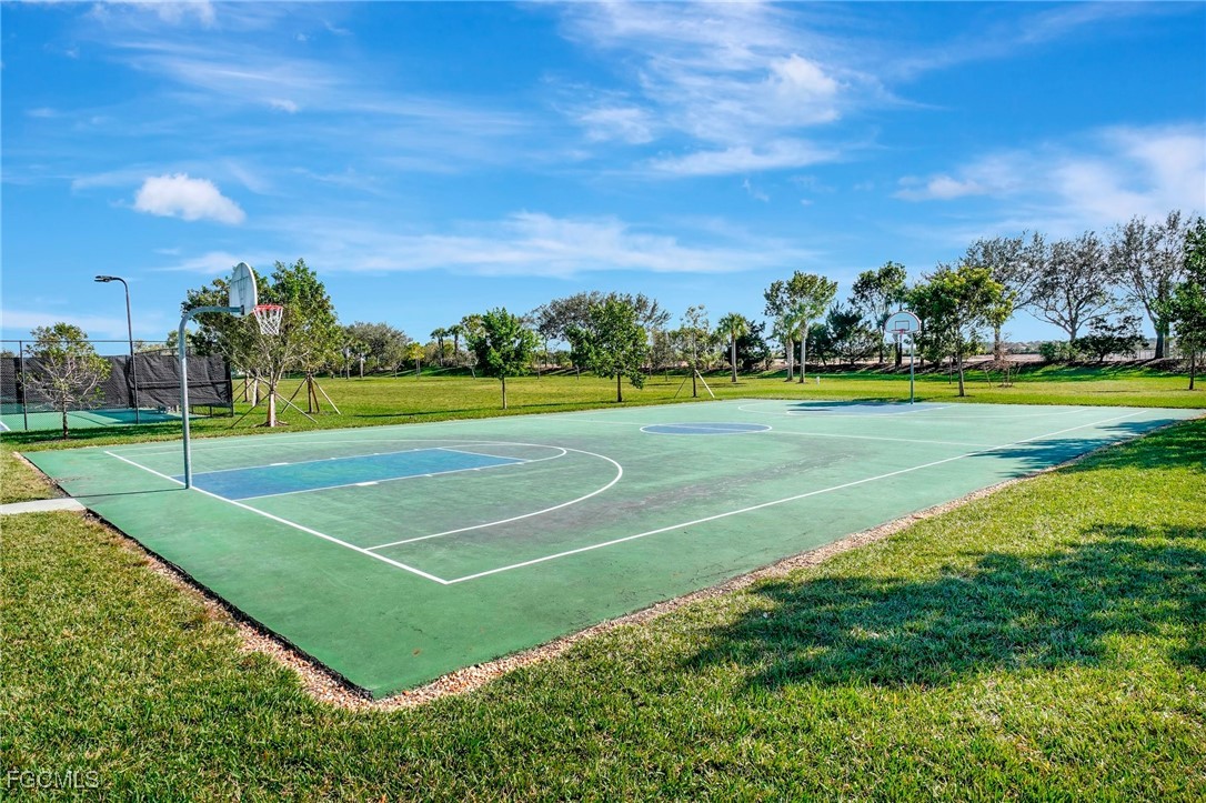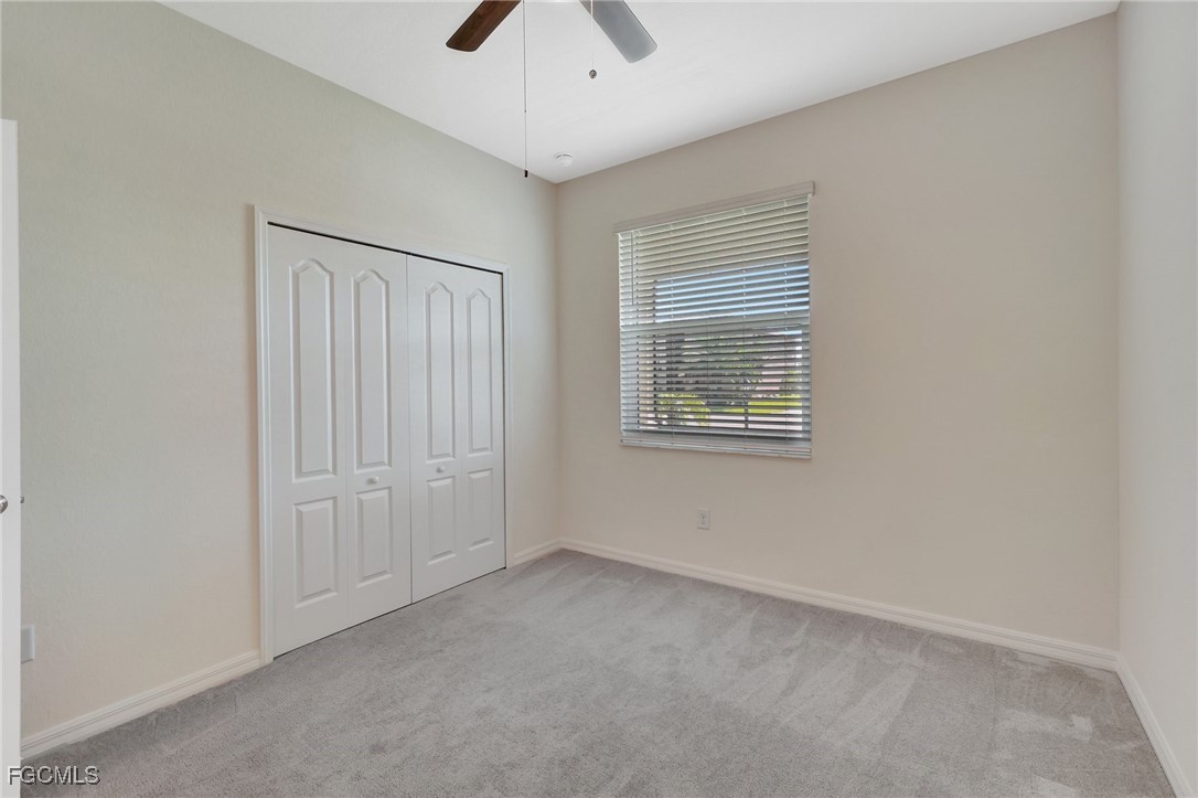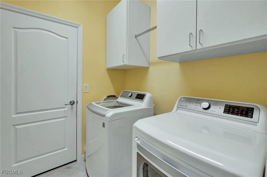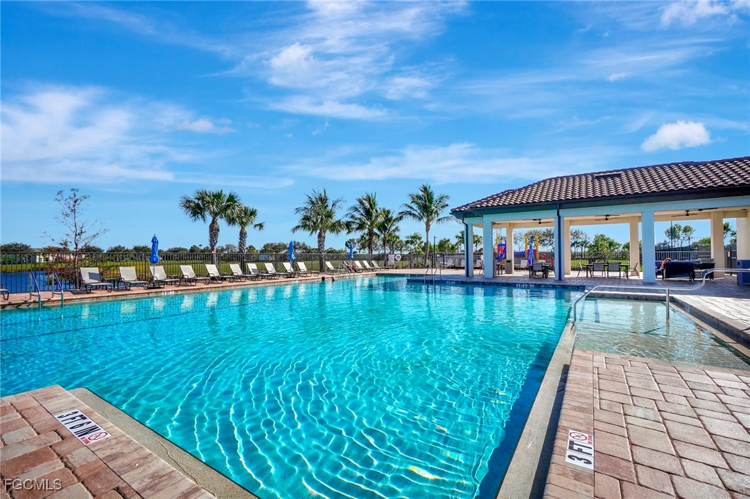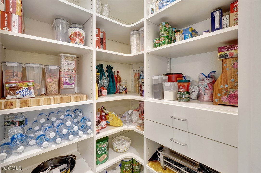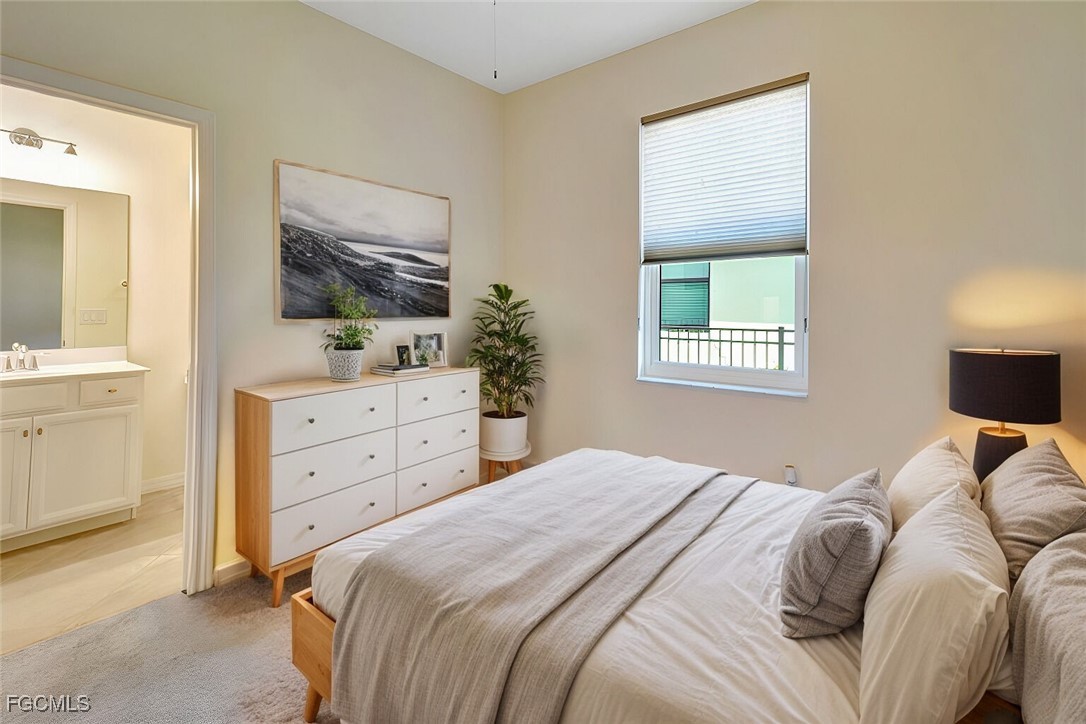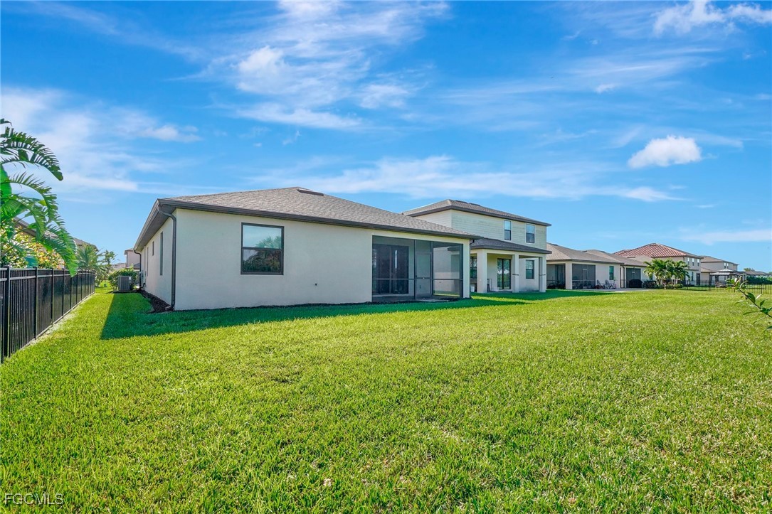 This stunning 3-bedroom, 3-full bathroom home offers not only a primary suite but also a guest suite with en suite bathroom-perfect for visitors, an older child, or an aging parent. Most importantly this home features IMPACT RESISTANT doors and windows for peace of mind and safety during any storm that may come its way. The leaded glass front door welcomes you into a bright and inviting space, perfect for both relaxation and entertaining. This home features a luxurious primary suite designed for ultimate comfort and privacy. The primary suite boasts two walk-in closets with custom built-ins in one, NEW luxury vinyl flooring installed in 2022, and an en suite bathroom with a newly redone shower in 2022 and double vanity with plenty of counter space. The kitchen has been UPGRADED with beautiful quartz countertops, an extended island, NEW range and refrigerator (2021), a reverse osmosis water system at the sink, and custom built-ins in the pantry for both style and functionality. A NEW washer and dryer were installed in the laundry room in 2021. The garage offers overhead storage and several large cabinets for added convenience. The screened front porch provides a serene spot to enjoy your morning coffee as does the screened back lanai overlooking a large, private backyard with ample space to put in a pool, making it an ideal space for outdoor activities and future enhancements. This beautifully UPGRADED home is PERFECT for those seeking a blend of luxury and practicality. Located in the gated community of Portico, homeowners enjoy many amenities including a beautiful pool, fitness center, tennis/pickleball courts, basketball court, and playground. Portico is just minutes away from everything you need including restaurants, grocery stores, shopping, and entertainment. Being outside the city of Fort Myers limits, means you only pay Lee County taxes which saves quite a bit on property tax! There is SO much to love about this house and community! Come see for yourself and make this house your new HOME!