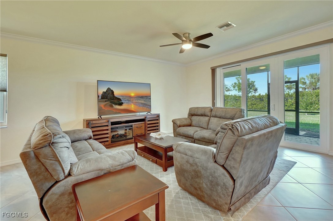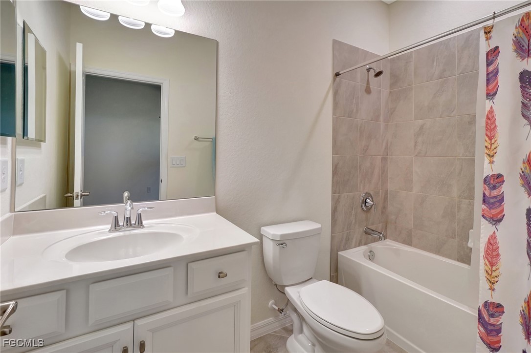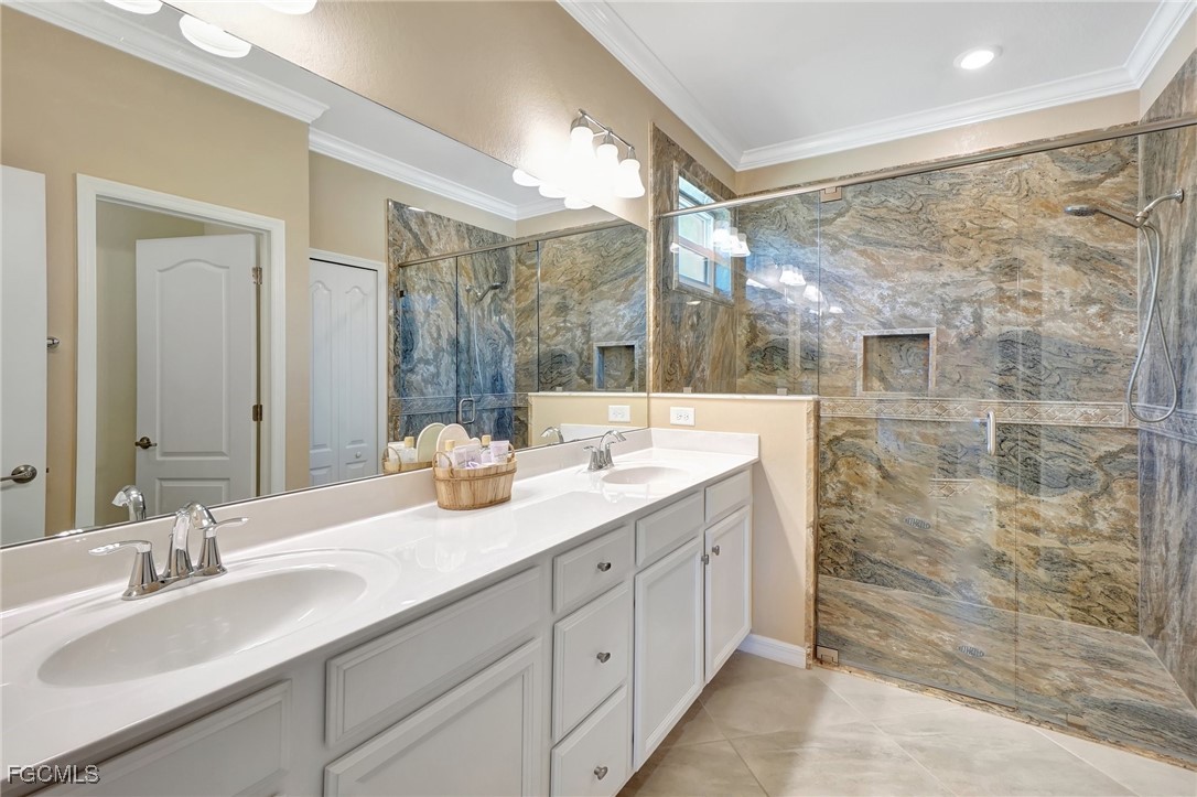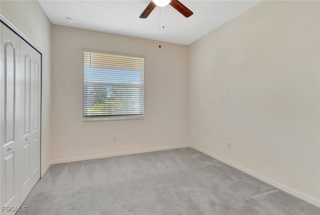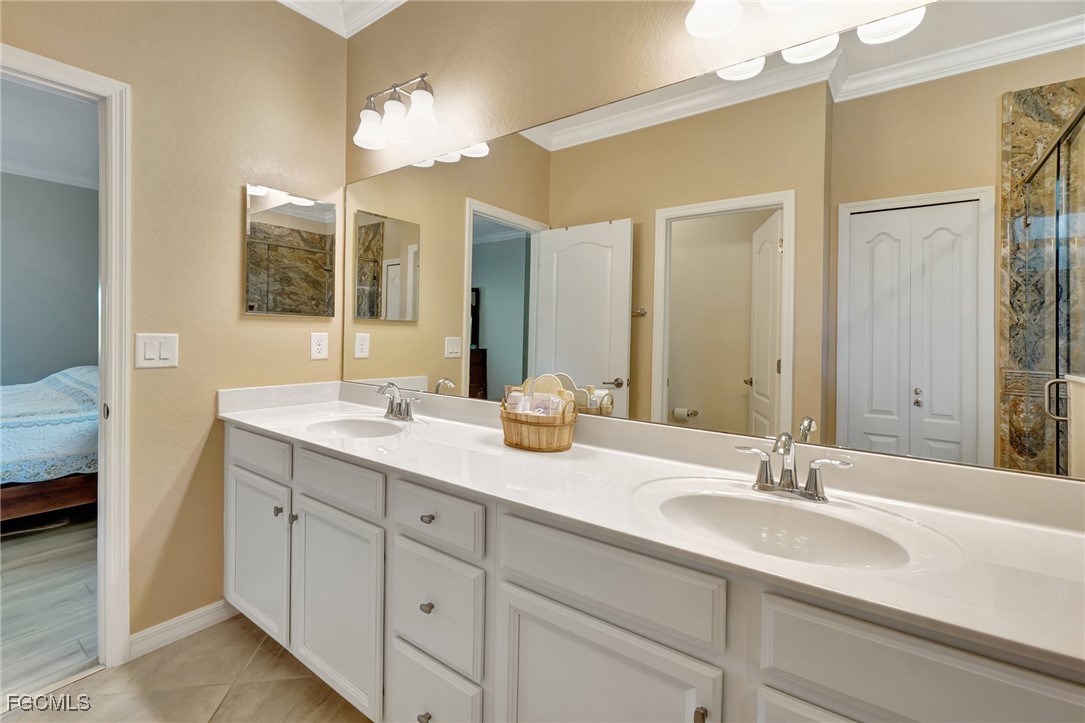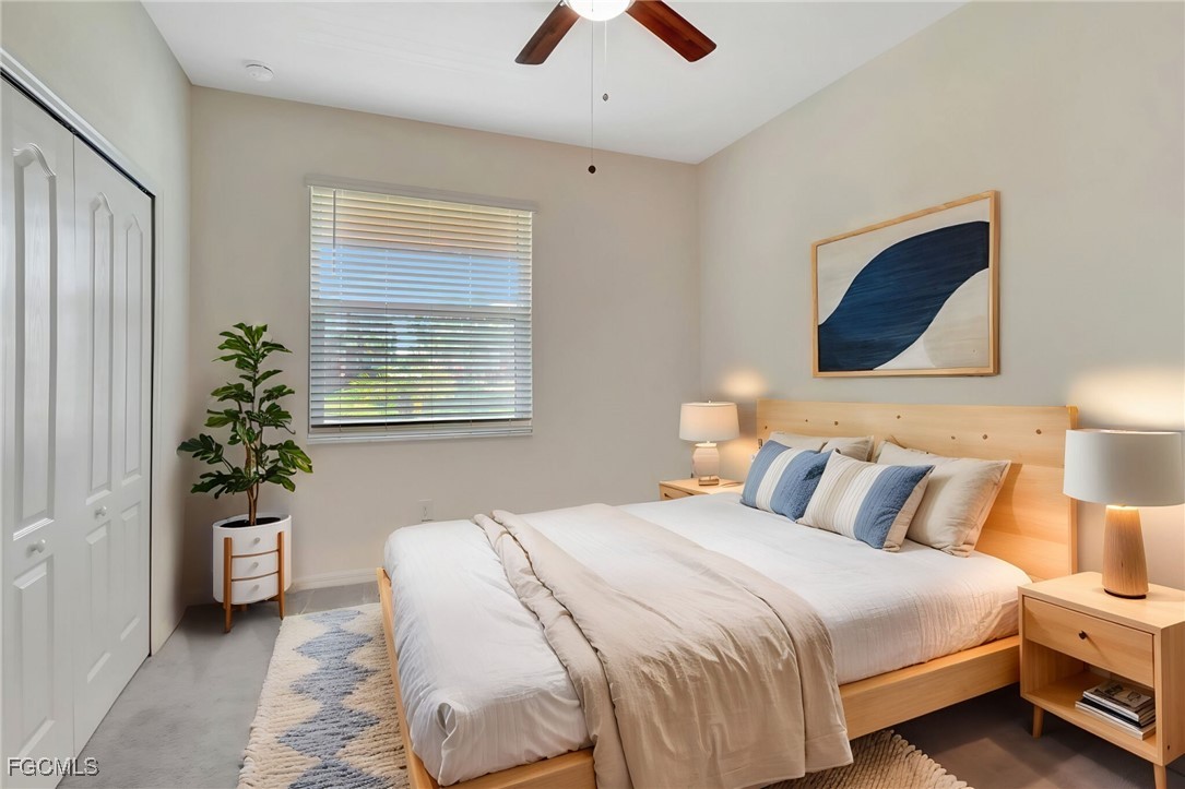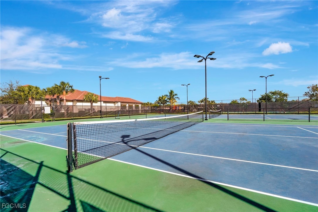 This stunning 3-bedroom, 3-full bathroom home offers not only a primary suite but also a guest suite with en suite bathroom-perfect for visitors, an older child, or an aging parent. Most importantly this home features IMPACT RESISTANT doors and windows for peace of mind and safety during any storm that may come its way. The leaded glass front door welcomes you into a bright and inviting space, perfect for both relaxation and entertaining. This home features a luxurious primary suite designed for ultimate comfort and privacy. The primary suite boasts two walk-in closets with custom built-ins in one, NEW luxury vinyl flooring installed in 2022, and an en suite bathroom with a newly redone shower in 2022 and double vanity with plenty of counter space. The kitchen has been UPGRADED with beautiful quartz countertops, an extended island, NEW range and refrigerator (2021), a reverse osmosis water system at the sink, and custom built-ins in the pantry for both style and functionality. A NEW washer and dryer were installed in the laundry room in 2021. The garage offers overhead storage and several large cabinets for added convenience. The screened front porch provides a serene spot to enjoy your morning coffee as does the screened back lanai overlooking a large, private backyard with ample space to put in a pool, making it an ideal space for outdoor activities and future enhancements. This beautifully UPGRADED home is PERFECT for those seeking a blend of luxury and practicality. Located in the gated community of Portico, homeowners enjoy many amenities including a beautiful pool, fitness center, tennis/pickleball courts, basketball court, and playground. Portico is just minutes away from everything you need including restaurants, grocery stores, shopping, and entertainment. Being outside the city of Fort Myers limits, means you only pay Lee County taxes which saves quite a bit on property tax! There is SO much to love about this house and community! Come see for yourself and make this house your new HOME!
