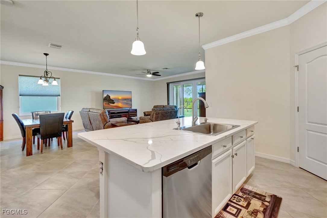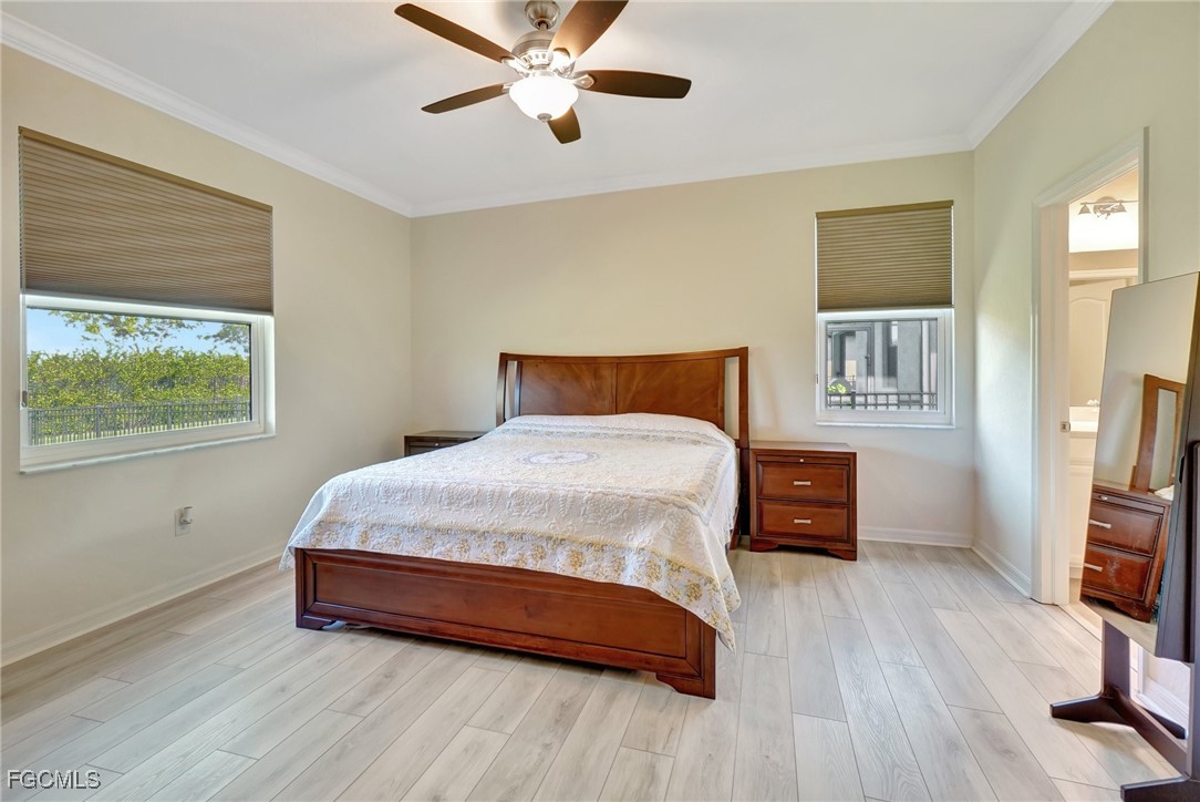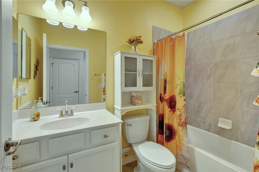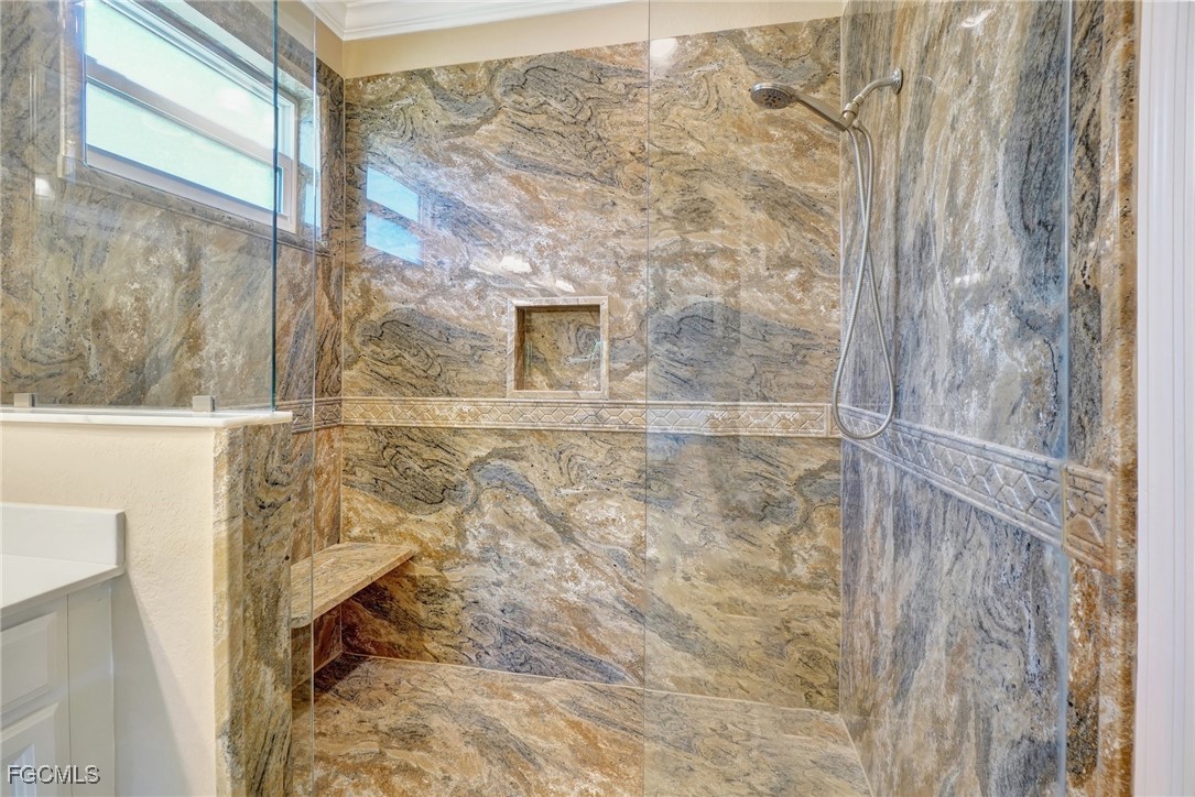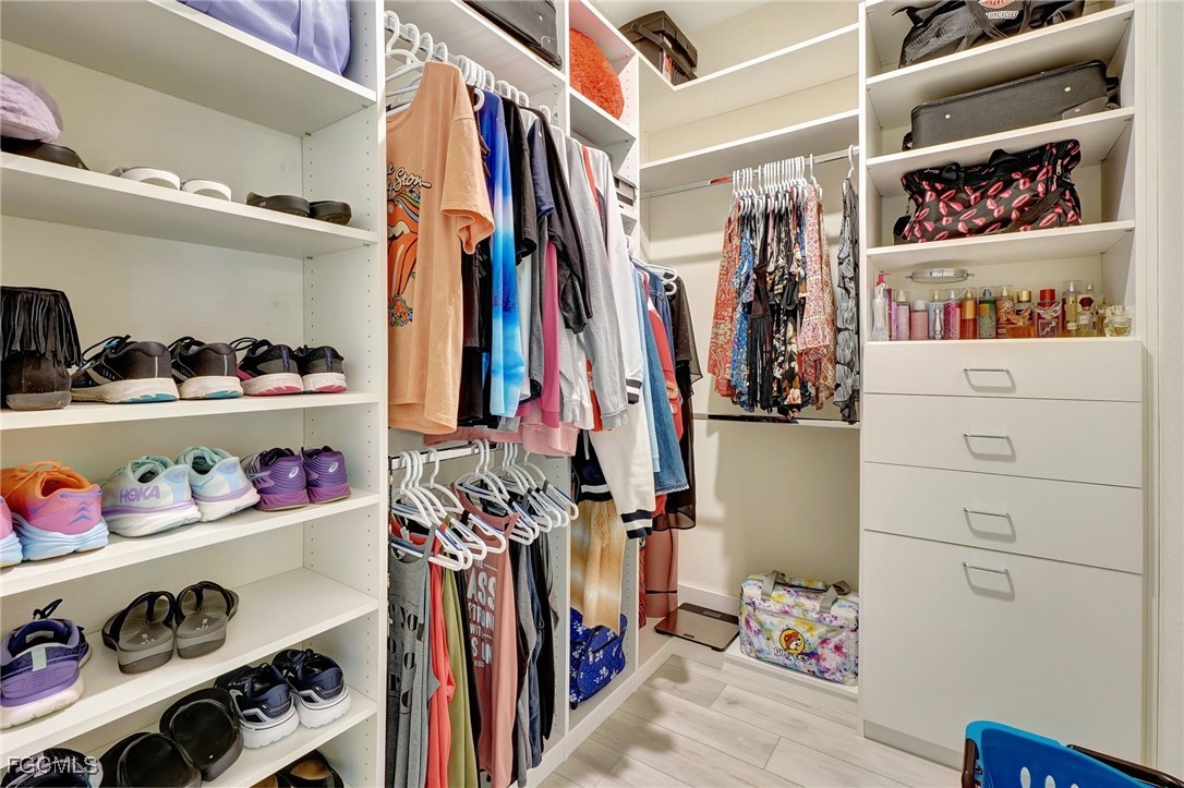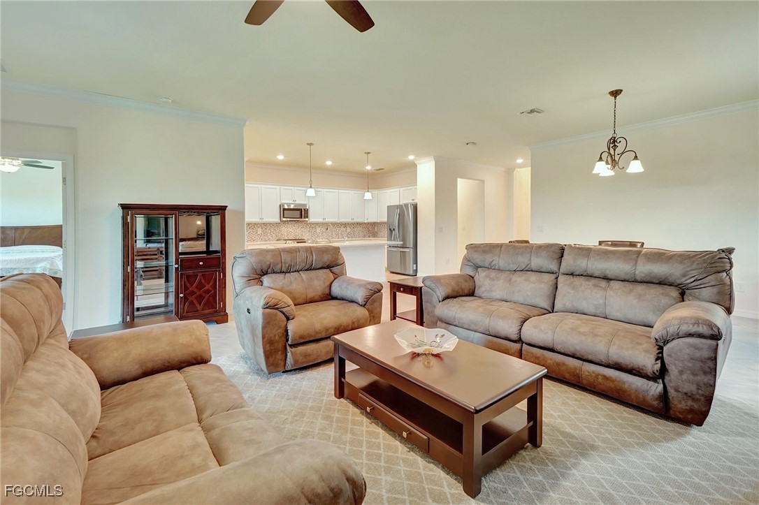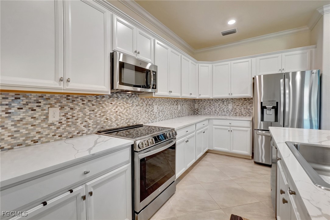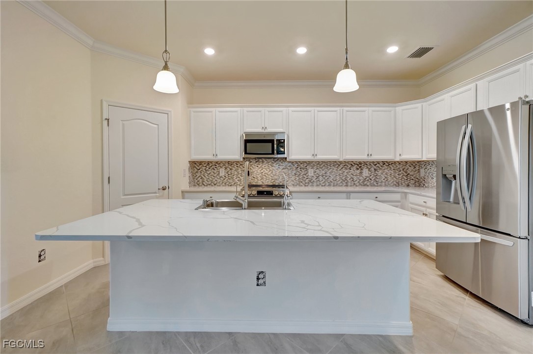 This stunning 3-bedroom, 3-full bathroom home offers not only a primary suite but also a guest suite with en suite bathroom-perfect for visitors, an older child, or an aging parent. Most importantly this home features IMPACT RESISTANT doors and windows for peace of mind and safety during any storm that may come its way. The leaded glass front door welcomes you into a bright and inviting space, perfect for both relaxation and entertaining. This home features a luxurious primary suite designed for ultimate comfort and privacy. The primary suite boasts two walk-in closets with custom built-ins in one, NEW luxury vinyl flooring installed in 2022, and an en suite bathroom with a newly redone shower in 2022 and double vanity with plenty of counter space. The kitchen has been UPGRADED with beautiful quartz countertops, an extended island, NEW range and refrigerator (2021), a reverse osmosis water system at the sink, and custom built-ins in the pantry for both style and functionality. A NEW washer and dryer were installed in the laundry room in 2021. The garage offers overhead storage and several large cabinets for added convenience. The screened front porch provides a serene spot to enjoy your morning coffee as does the screened back lanai overlooking a large, private backyard with ample space to put in a pool, making it an ideal space for outdoor activities and future enhancements. This beautifully UPGRADED home is PERFECT for those seeking a blend of luxury and practicality. Located in the gated community of Portico, homeowners enjoy many amenities including a beautiful pool, fitness center, tennis/pickleball courts, basketball court, and playground. Portico is just minutes away from everything you need including restaurants, grocery stores, shopping, and entertainment. Being outside the city of Fort Myers limits, means you only pay Lee County taxes which saves quite a bit on property tax! There is SO much to love about this house and community! Come see for yourself and make this house your new HOME!