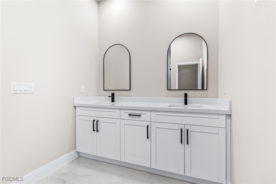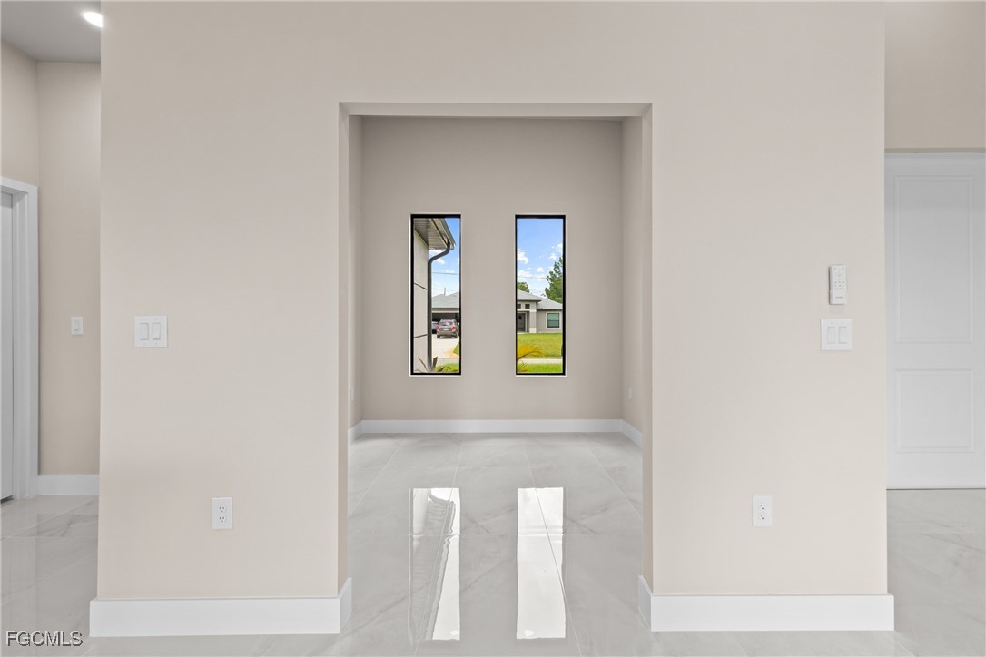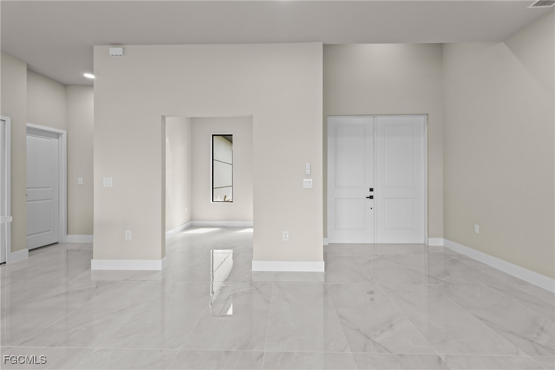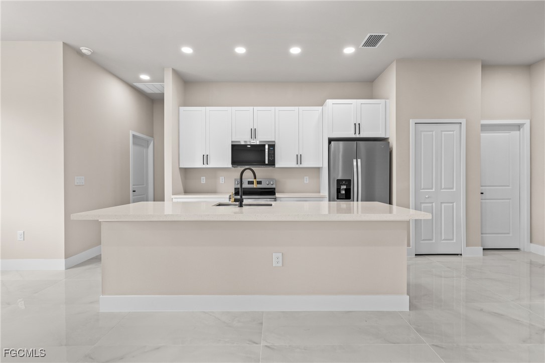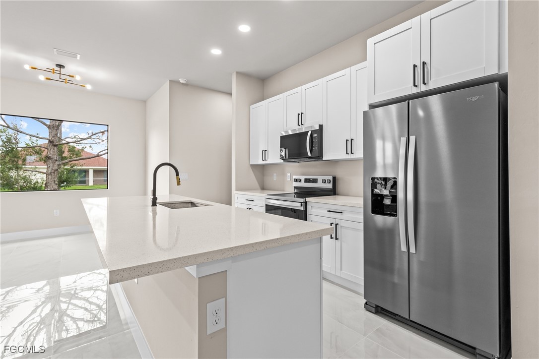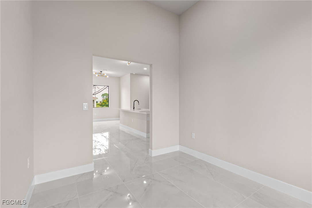 As you step inside, you'll notice the elegant touches that define this property. The kitchen is a true focal point, featuring exquisite quartz countertops that provide both, beauty and durability. The sleek stainless-steel appliances not only enhance the kitchen's aesthetics but also offer modern conveniences for cooking and entertaining. The interior design incorporates a touch of black and gold accents throughout, adding warmth and character to the living spaces. These wooden elements create a harmonious balance with the contemporary finishes, giving the home a unique and inviting atmosphere. Additionally, ceiling fans have been thoughtfully installed to enhance comfort and energy efficiency. The layout is functional and spacious, with three well-appointed bedrooms. The den adds versatility, serving as a home office or guest room. The master bathroom features a shower plus his and her closet and sinks. Plus, we cannot miss the addition made to the back of the home that can be used as a storage for your lawn and patio stuff. The home location in the SW of Lehigh Acres provides convenient access to local amenities, schools, and parks, making it a wonderful place to call home.