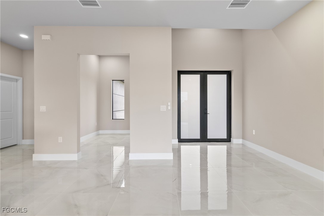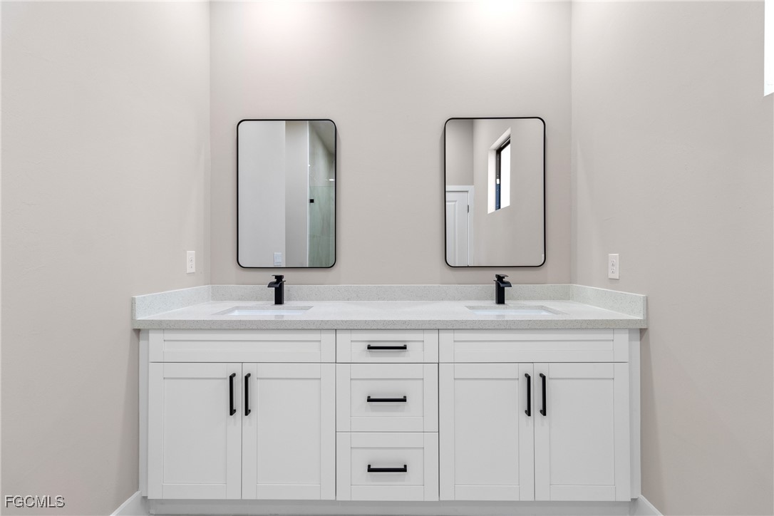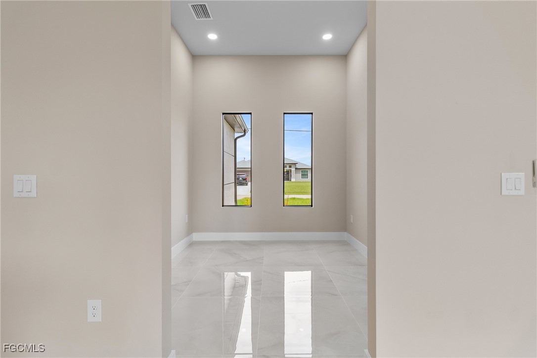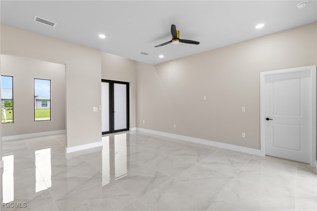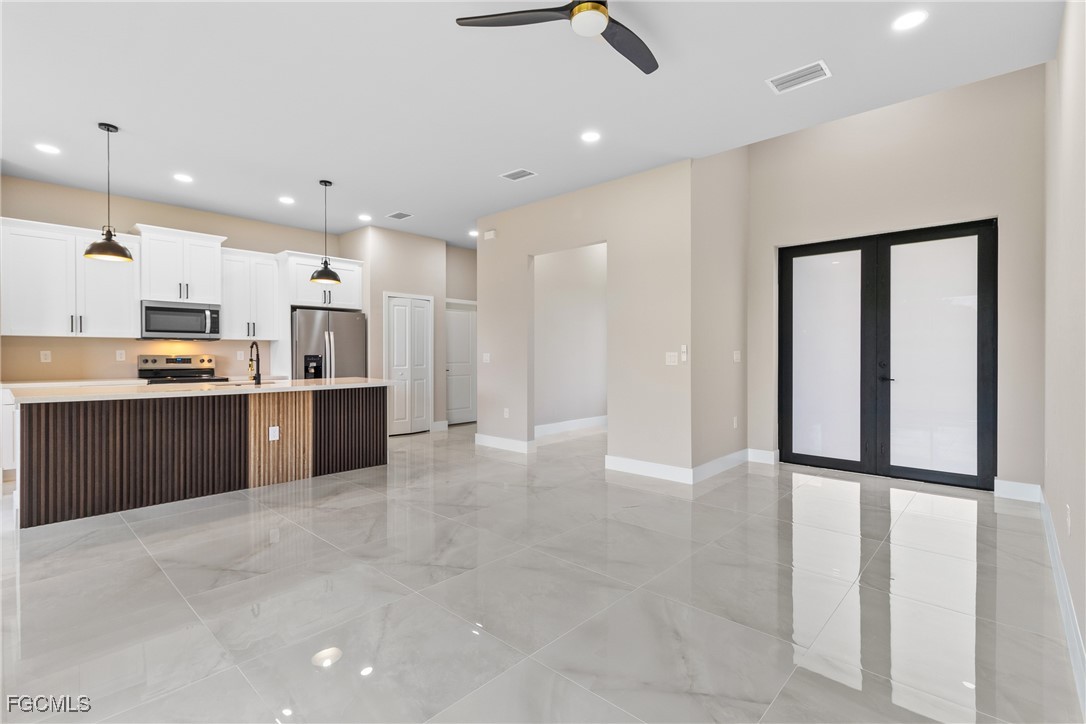 warmth and character to the living spaces. These wooden elements create a harmonious balance with the contemporary finishes, giving the home a unique and inviting atmosphere. Additionally, ceiling fans have been thoughtfully installed to enhance comfort and energy efficiency. The layout is functional and spacious, with three well-appointed bedrooms. The den adds versatility, serving as a home office or guest room. The master bathroom features a shower plus his and her closet and sinks. Plus, we cannot miss the addition made to the back of the home that can be used as a storage for your lawn and patio stuff. The home location in the SW of Lehigh Acres provides convenient access to local amenities, schools, and parks, making it a wonderful place to call home.