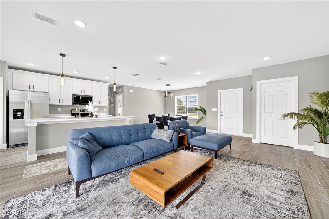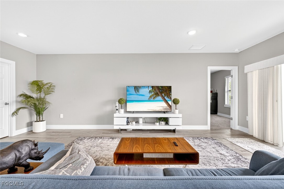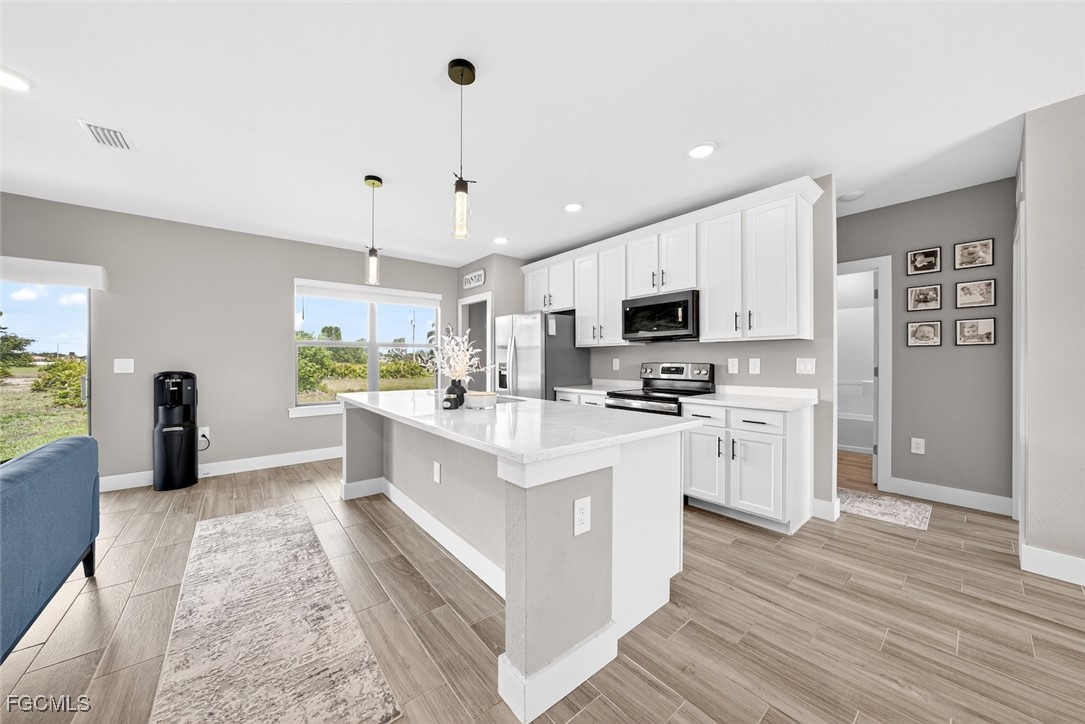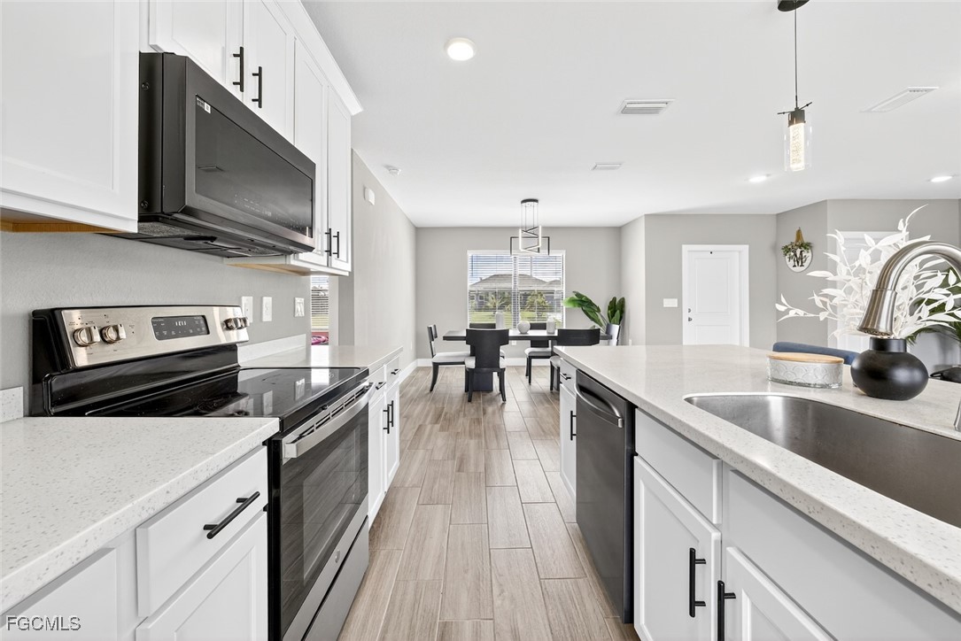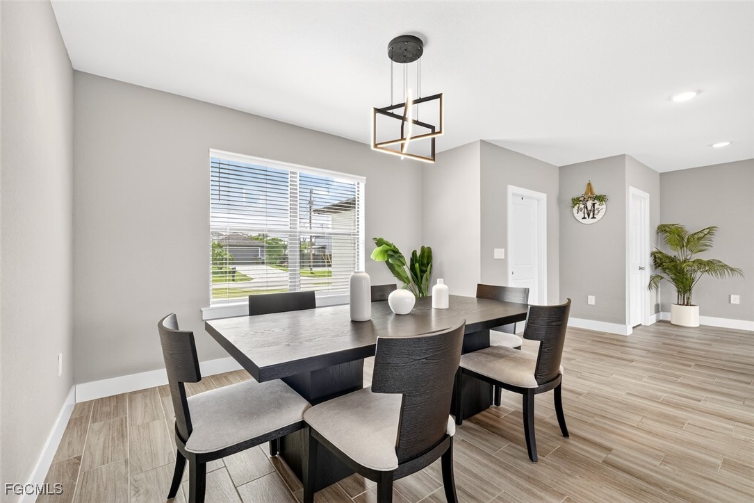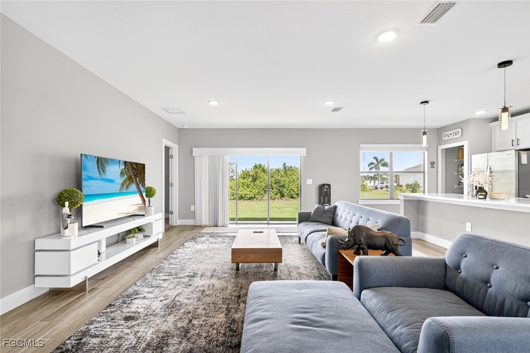 This beautiful, better-than-new 3-bedroom, 2-bath home offers the perfect blend of modern elegance and everyday comfort. The spacious open-concept layout showcases a sleek kitchen with pendant lighting, contemporary cabinetry, and generous counter space—ideal for both entertaining and daily living. Designed with a desirable split-bedroom floor plan, the home provides added privacy, highlighted by a generous primary suite featuring dual vanities, a large walk-in shower, and an oversized walk-in closet. Every detail has been meticulously maintained, making this home truly move-in ready. Step outside to a private backyard with ample space to add a pool or create your own tranquil outdoor retreat. Additional features include a beautifully paved driveway, a two-car garage, and energy-efficient construction. Located in a highly desirable neighborhood close to top-rated schools, dining, and shopping, this home is ideally situated just 4 miles from the Burnt Store Boat Ramp and only 1 mile from Coral Oaks Golf Course—perfect for boating enthusiasts and avid golfers alike.