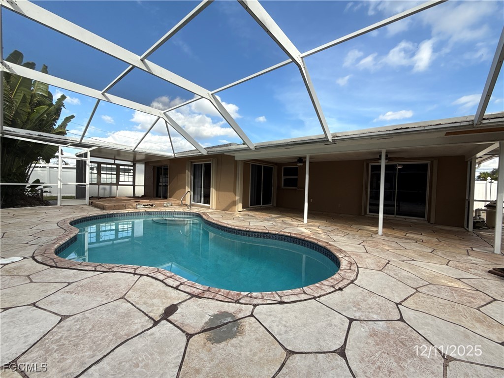 Check out this 3 bedroom, 2 bathroom POOL home located in Cape Coral, FL. This home offers approximately 1,312 sq ft of living space with a split bedroom floor plan, an attached 2-car garage, and a in-ground pool. The property sits on an 0.23 acre lot with a fenced backyard. Interior features include a living room, kitchen with dining area, no carpet throughout the home. Primary bedroom and one other bedroom have slider doors to the pool area. The living room area also features slider doors to the pool area. 2021 ROOF, 2021 AC, and 2023 Fence. NO FLOOD ZONE & NO HOA. The pool area includes a small in-ground pond as well. Don't miss this opportunity schedule your tour today!