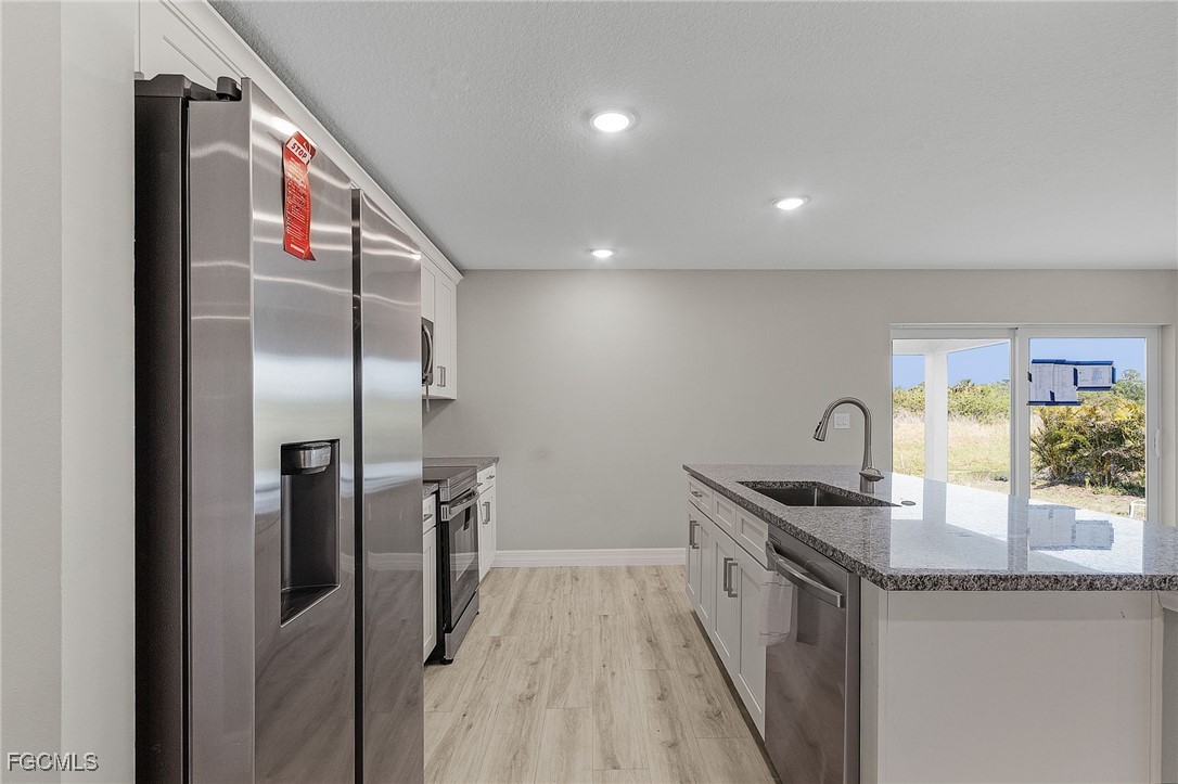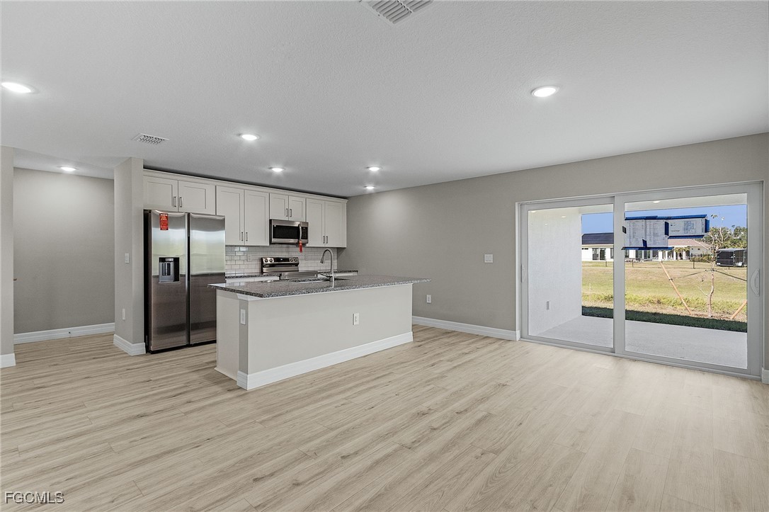 Inquire about our Builder Incentives available! This is the home you have been waiting for...Move-in ready Brand-New construction 4-bedroom 2-bathroom home located in the thriving community of Lehigh Acres! Standout features include waterproof and scratch resistant Mohawk Ballard flooring throughout (NO CARPET), Samsung stainless-steel appliance suite plus washer and dryer, and New Caledonia granite countertops throughout. The modern open floor plan is centered around the great room and kitchen with entertaining island, panty and subway tile backsplash. The owner's retreat showcases His & Hers walk-in closets and en-suite bathroom with floor to ceiling tile shower complete with glass enclosure. Guest Bedroom are all generously sized and share a centrally located guest bathroom. The covered back lanai is a perfect extension of the homes living space perfect for grilling or unwinding with family and friends. With proximity to I75, shopping, and dining this is the perfect place to call home. No need to wait as this home is ready for immediate occupancy!