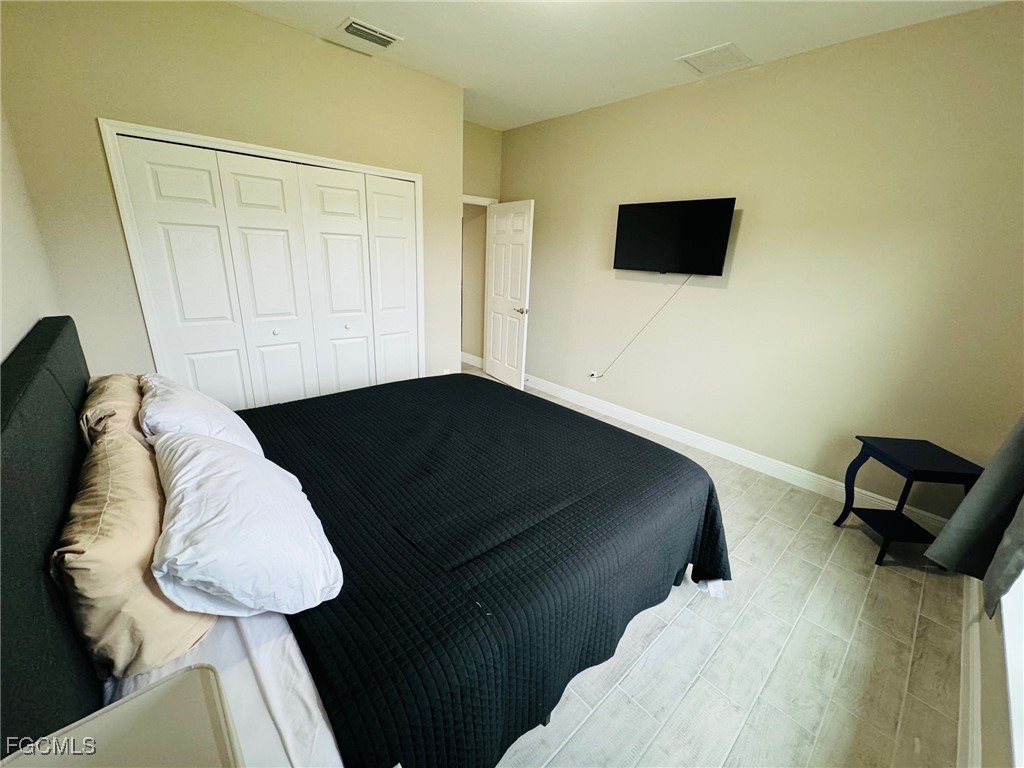 This beautiful nearly brand new home is priced to sell and in an ideal location of Cape Coral. This home is 1,688 square feet under air and features a screened in lanai excellent for outdoor meals and entertaining. The home was completed in 2023 featuring all modern design aspects including stainless steal appliances that are less than 2 years old. The home flooring is a beautiful modern tile and the kitchen is fully equipped for immediate use for group meals. This was not a typical builder spec evidenced by the paver driveway, screened in lanai, and additional touches to make it a turnkey home. The home is also a great investment opportunity and has been rented for $2,650 per month for the past year (documents available for serious buyers). This home will sell quickly considering the price. Seller does not need to sell so do not waste time with low offers. Home can be sold furnished or unfurnished, it is negotiable. (The home is currently constructed as a 3 bedroom + Den but seller can add a closet to the current Den if buyer would like it converted into a bedroom).