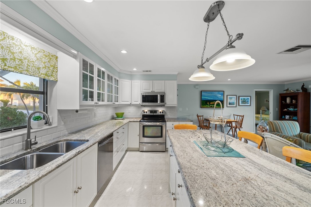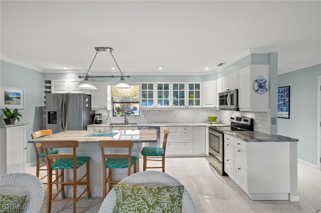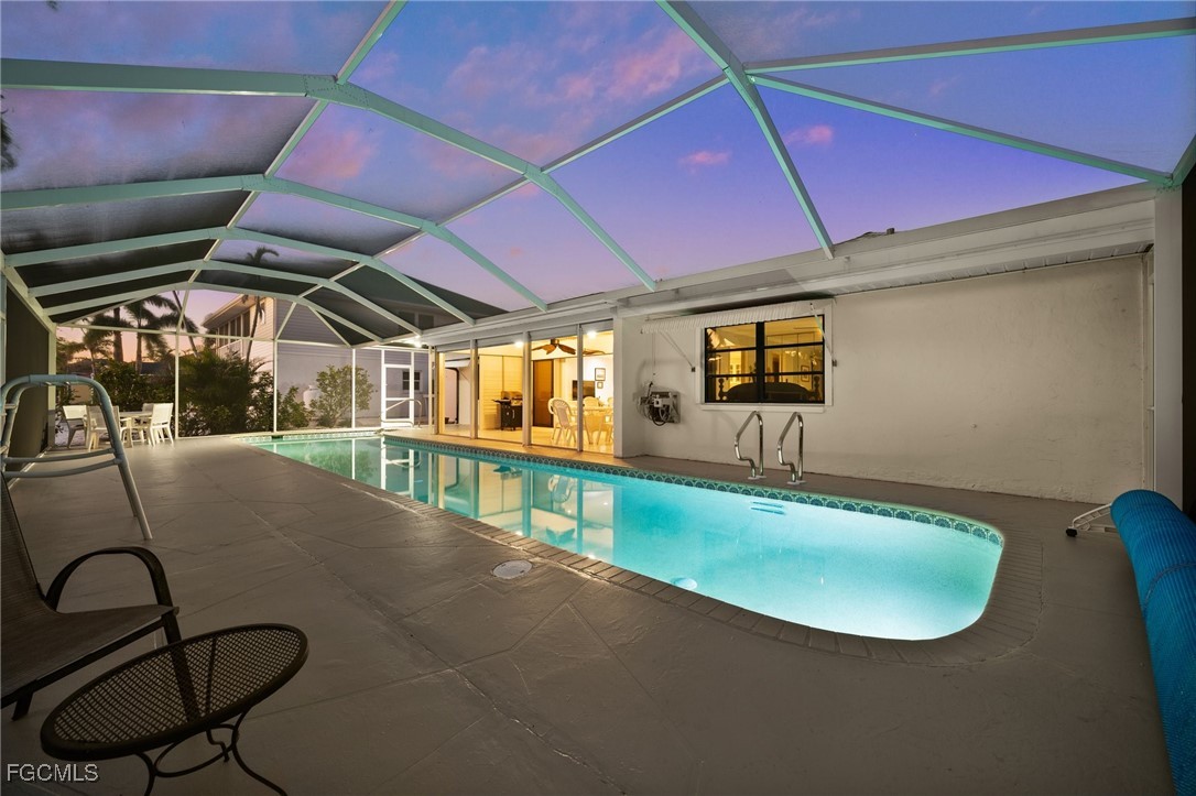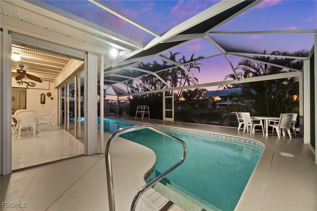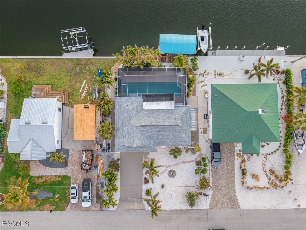 Live the island life you’ve always dreamed of in this cozy, coastal retreat, just minutes from deep, direct Gulf access. Whether you’re looking for a full-time residence, a vacation rental, or a smart investment, this home offers it all. With a thoughtful open-concept layout, the home feels spacious yet inviting, while the split floor plan provides privacy between the two master suites. Pocket sliders off the great room open directly to the under-truss lanai, offering seamless indoor-outdoor living .The kitchen is a chef’s dream, with crisp white shaker-style cabinetry, stainless steel appliances, and a chic glass tile backsplash. The island, with its granite countertops, is ideal for meal prep, casual dining, or simply sipping your morning coffee. Step outside to a sparkling heated pool, and relax in your own private oasis. The newer Marine Wood Deck with a new 8K Boat Lift 2025 and canopy adds a special touch for those who love to spend time on the water. Whether you're kayaking, fishing, or boating to local restaurants, everything you need to enjoy island life is just minutes away. New Roof (2023), outdoor storage shed and New AC give peace of mind, while the serene surroundings offer the perfect backdrop for making lasting memories. Come see for yourself why this cottage is the perfect place to live the ultimate island life. Schedule your showing today! 2010 Seahunt Boat is also for sale.
