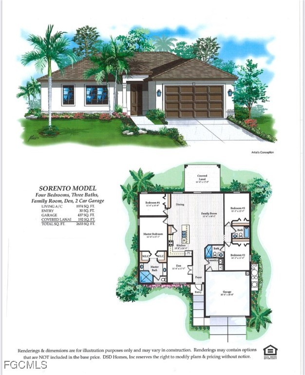 Brand new 4Bed/3Bath + DEN, 2 CAR Garage. A beautiful open layout with: QUARTZ countertops, Upgraded tile throughout, FRAMELESS glass shower & Dual Vanity in Master bathroom, Epoxy Garage Floor, Under-Truss SCREENED lanai, Window Blinds (including slider), Tile Shower walls with tub combo in guest bathroom (no plastic inserts), Tile Shower in 3rd bathroom & Higher Baseboards throughout. FULL Appliances Package includes: Stainless Steele Side x Side Refrigerator, Flat top stove, Microwave, Dishwasher and full size white Washer & Dryer. Water Softener. Home also comes with a 2-10 warranty. Pictures are of the same model but different home.