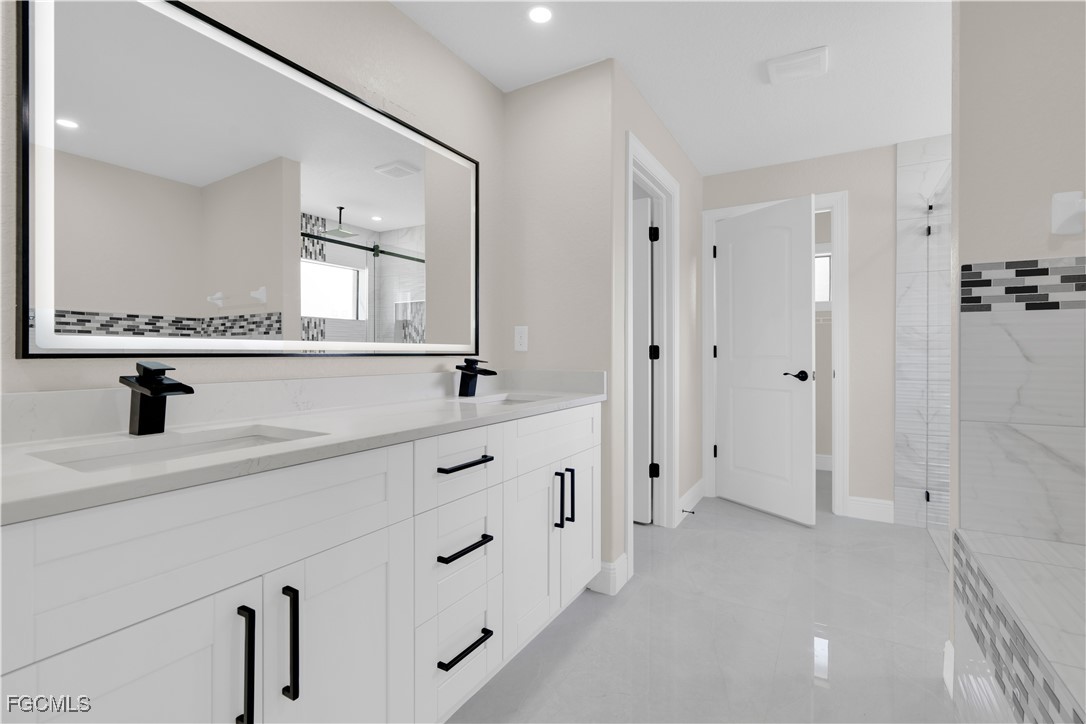 Location location! Brand new corner custom home 4 Bed 2 Bath. Great neighborhood of newer homes adjacent to Buckingham about 4 blocks to Harns Marsh Elem & Middle Schools and near local High School. Upscale stunning features everywhere! Porcelain tile floors throughout including lanai. Beautiful Master Suite & Bath with dual sinks and HUGE Walk-in Closet. Quartz in the kitchen & baths with 42"soft-close cabinets. Stainless steel kitchen appliances. Tray ceilings (Living/dining/master). Crown moldings & baseboards. 8' entry doors. High ceilings!. Front Interior entry welcomes guests & provides privacy. Front porch/lanai have non-skid porcelain tile floors. HUGE Lanai has "picture window" screen and an extra outdoor kitchen to entertain family and friends. Master w/large rain shower. Room to add your HUGE pool. Oversized garage w/epoxy coated floor 22' long for that pickup. WIFI garage door. Sprinkler system. In-house Laundry. Convenient to restaurants, stores, schools, & I-75. Easy ride to Ft Myers. NO FLOOD INSURANCE REQUIRED! 1 yr warranty included.