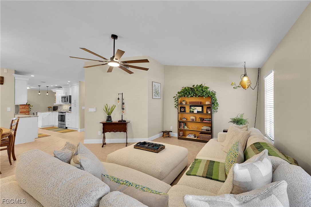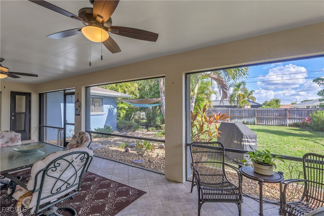 Whether you are looking for a lifestyle upgrade or a "reel" investment opportunity, this 1,812 sq. ft. Cape Coral gem delivers. Featuring a popular split floor plan with 3 bedrooms and 2 bathrooms, two-car garage with AC to keep your toys cool, this home is designed for both privacy and seamless entertaining. Home Highlights: Chef’s Hub: A central kitchen featuring stainless steel appliances, granite countertops, and a breakfast bar. Dual Living Spaces: Includes both a sun-drenched formal living room and an expansive family room with a secondary dining area. Inside laundry room with full size Samsung washer and dryer plus laundry sink. Outdoor Oasis: Step outside to a fully fenced backyard featuring a stunning, low-maintenance stocked koi pond (fish included!), and large screened lanai and electric hook up for a future spa—the perfect backdrop for relaxation. Home is well maintained: New roof (2022), New AC (2023) w/10 year warranty and bi-annual maintenance and cleaning plus new duct work. Prime Location: Enjoy the best of the Cape Coral lifestyle with easy access to local parks, amenities, and iconic waterways.