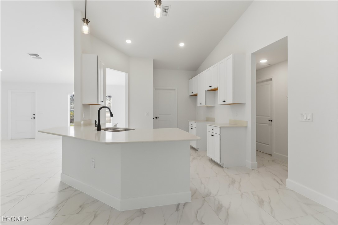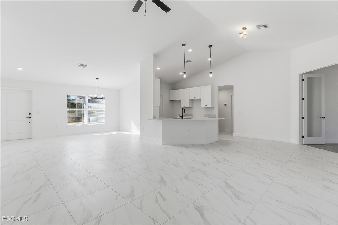 Brand New Construction 4beds + Den /3 Baths / Fully Fenced / Priced to Sell ! This beautiful new home features 4 bedrooms , a den , and 3 bathrooms with a spacious split floor plan. The kitchen includes quartz countertops, white shaker cabinets, and stainless-steel appliances, plus a washer and dryer. Enjoy title floors throughout, with carpet in the bedrooms and den. The master suite offers his-and-hers walk-in closets, dual sinks, and a frameless glass shower. Outside, enjoy a screened lanai, epoxy garage floor, fully fenced yard, and beautiful landscaping that adds charm and curb appeal. Seller is helping with closing costs! Don't miss this great opportunity-priced to sell! These pictures are of a similar model.